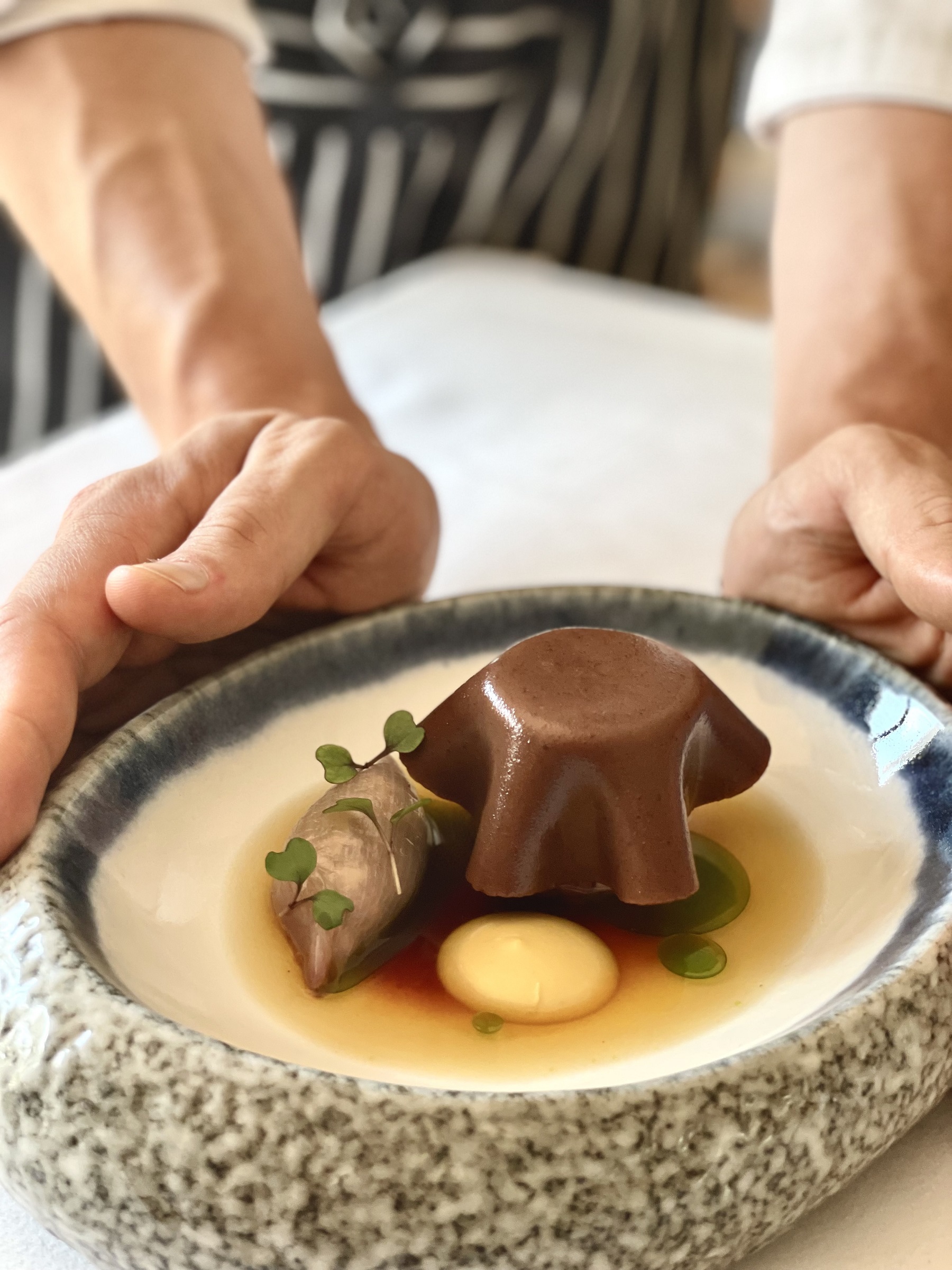 Με λίγα λόγια, πρόκειται για μια πολυδιάστατη εμπειρία: εκτός από τη γευστική απόλαυση σε κάνει να αισθάνεσαι κομμάτι μιας (όχι και τόσο μακρινής) κοινωνικής και γαστρονομικής πραγματικότητας. Πιάτα που ξεχωρίζουν είναι οι κουλούμπρες με φαγκρί, αγκινάρες, σταφύλι, ασκινό και χαβιάρι, η νεροκολοκύθα με αμάρανθο, σκορπίνα, απάκι και γλυκοπατάτα, το γιαπράκι με παντζάρι, κολοχτύπα και αυγολέμονο, ο καβουρμάς με γλυκάδια αρνιού, το μοσχάρι ταρτάρ με αυγό, η επονομαζόμενη «μακριά μυρωδιά» με κύμινο, λαχανικά, λευκή σοκολάτα και γιαούρτι και η αλιά, παρασκευασμένη από κουκουμάρια, μοσχάρι, γάρο Wagyu A5, μανίτες και φασκόμηλο.
