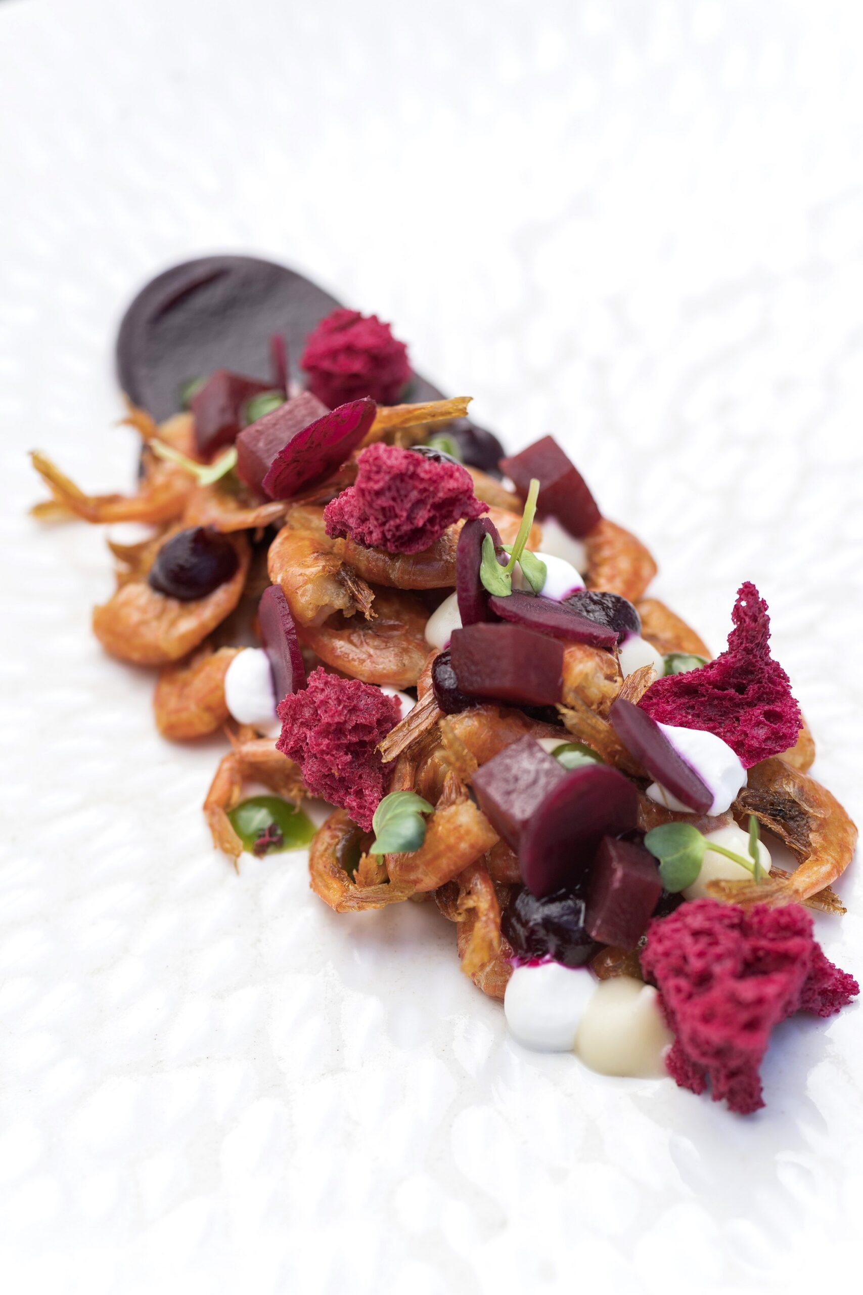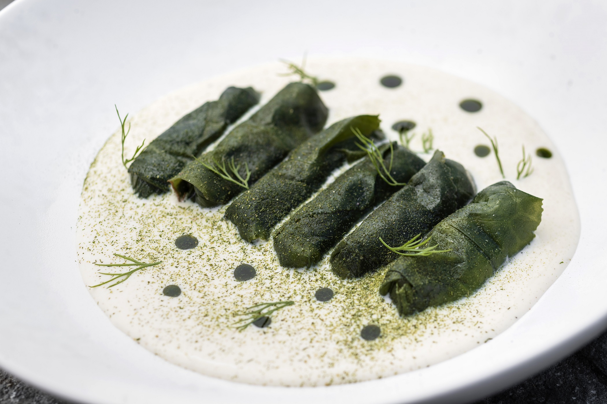 Χαρακτηριστικά πιάτα, τα εικονικά χοχλάκια (ή βοτσαλάκια) από ταραμά με περικαφτή (ψωμί ψημένο) και γαύρο μαρινάτο, τα ντολμαδάκια με φύλλο από κυκλάμινο και γέμιση γαρίδα και σφυρίδα σε σάλτσα αυγολέμονο από γαριδάκι Λινδιακό και λάδι άνηθου, συνοδεία πούδρας και πουρέ φινόκιο –ένα απολύτως ξεχωριστό πιάτο με κρουστό φύλλο και ζουμερή, όλο φρεσκάδα γέμιση– Λινδιακό σουπιόρυζο με βότανα, κύμινο και «πέπλο» από σουπιά, σφυρίδα σοτέ αυγολέμονο με κρέμα σκόρδου, αυγά ξιφία παστά σε κερί μέλισσας (σαν αυγοτάραχο) και μόπλευρα (σπαράγγια) με σάλτσα από αυγά ξιφία και ταραμά από αυγά ξιφία.