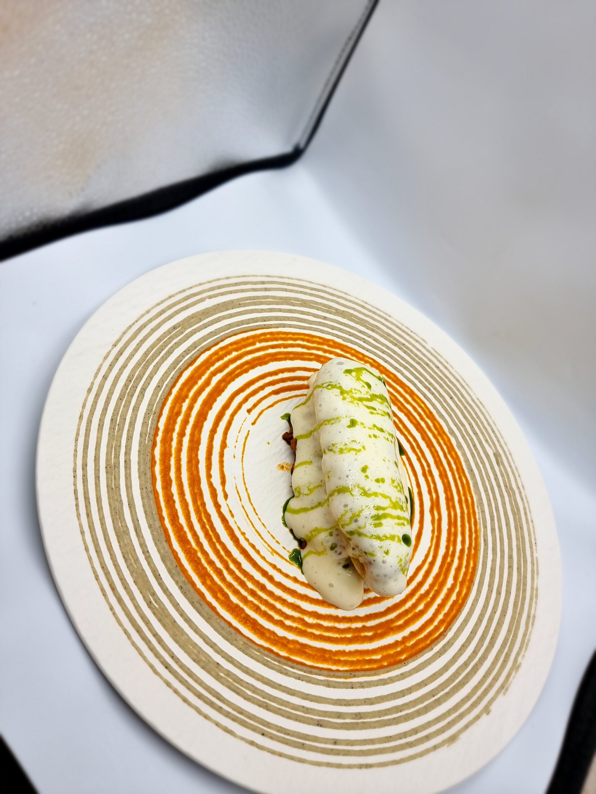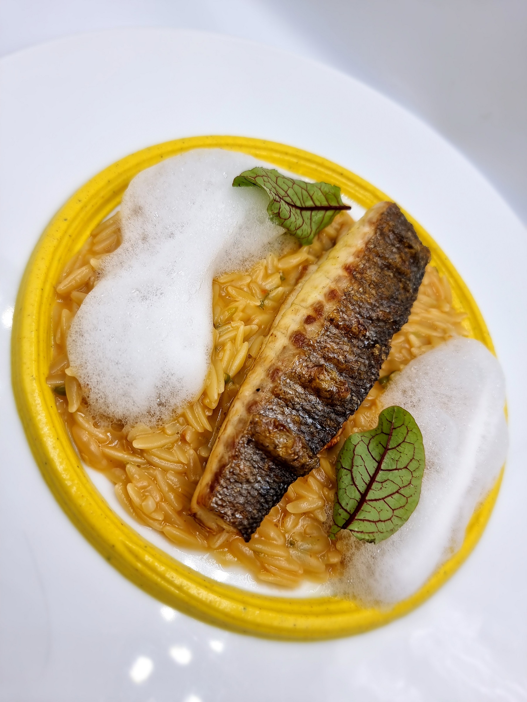 Δοκιμάστε πάντως και κουλουρία (χειροποίητο «μάτσι», δηλαδή τοπικό χυλοπιτάκι που παραδοσιακά βράζεται σε ζωμό από κοτόπουλο, εδώ όμως έχει βράσει μέσα σε ζωμό κωλοχτύπας al Americain με ταπιόκα), όπως και λακάνη: ένα ροδίτικο έδεσμα με αρνί, με το κρέας να τυλίγεται σε μπόλια και να συνοδεύεται με ρεβίθια Λάρισας, γιαούρτι και κύμινο. Σημαντική, τέλος, η παρουσία του pastry chef Λάζαρου Χατζησάββα. Η πορτοκαλόπιτα με σορμπέ γιαούρτι, τριμμένο πορτοκάλι, κανόλι από φύλλο κρούστας γεμιστό με αφρό γιαουρτιού, σφουγγάρι γιαούρτι, χιόνι γιαούρτι και σος από χυμό πορτοκάλι αρωματισμένο με σαφράν είναι ένα αιθέριο επιδόρπιο.
