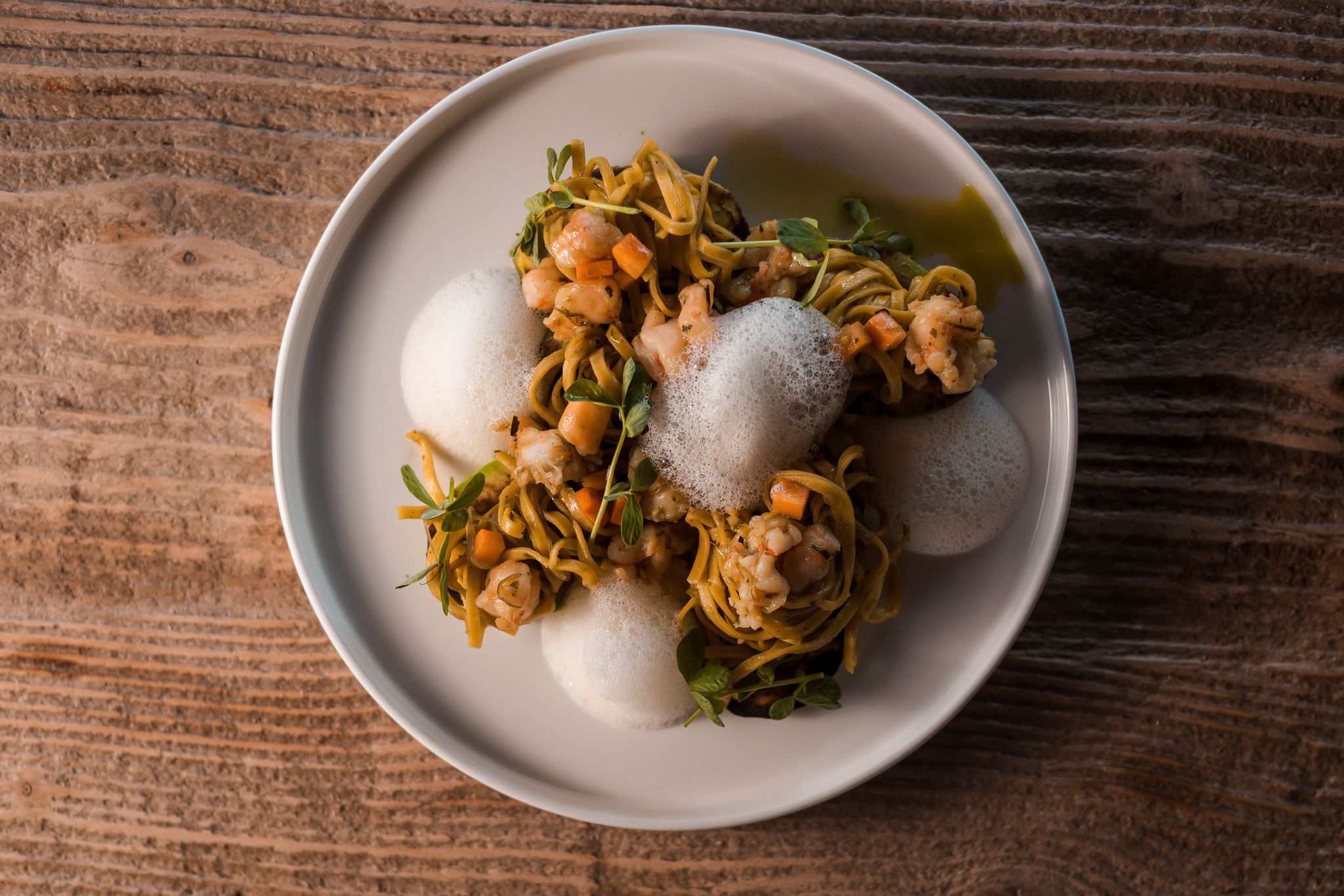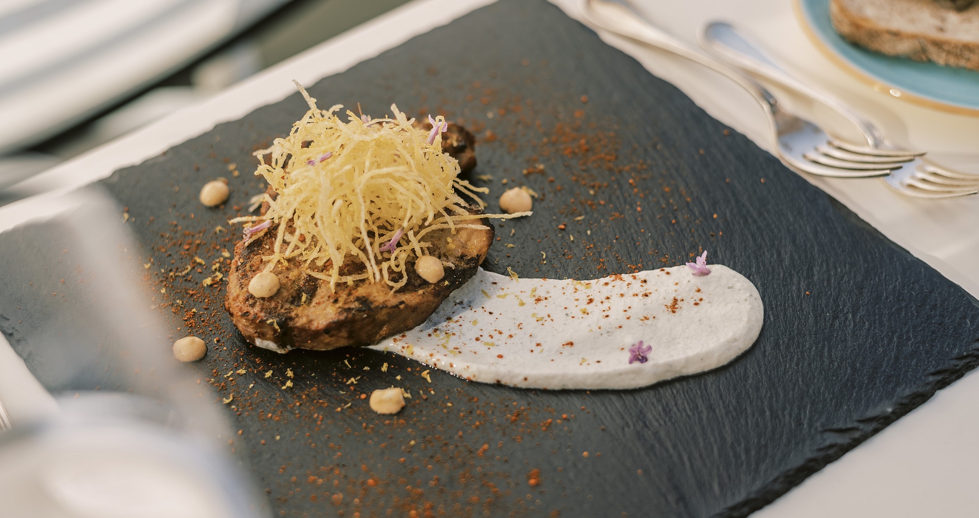 Δοκιμάστε χταπόδι Σχάρας με BBQ φινόκιο, λαχανικά τουρσί και νεροκάρδαμο, κολοκυθοανθούς με ανθότυρο, espuma, κατσικίσιο γάλα και λαδοτύρι Μήλου, σουπιά μαγειρεμένη στο μελάνι της με πέστο κολοκυθόσπορου και κρέμα άρκευθου, φαγκρί οσομπούκο με πέστο πράσινης ελιάς, ζελέ λεμόνι και ελληνικά αρωματικά. Επιπλέον, υπάρχουν και vegan επιλογές, όπως κι ένα ικανό section για τους λάτρεις του sushi. Signature πιάτο, βέβαια, θεωρείται το αρνί χεράκι στον ξυλόφουρνο με ρετσίνα, πευκόμελο και πούδρα μπαχαρικών. Από τα επιδόρπια, τέλος, διαλέξτε crème bruelle μελεκούνι.