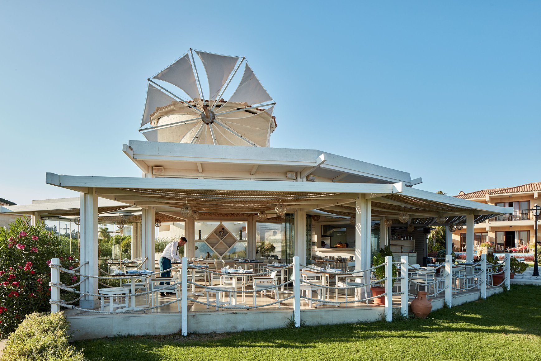 Όμορφο εστιατόριο στον κήπο του ξενοδοχείου «Atlantica Imperial», με ρομαντική διακόσμηση και απεριόριστη θέα στο Αιγαίο και στο βουνό Τσαμπίκα από τις μεγάλες τζαμαρίες. Το μενού εκφράζει τη νέα ελληνική κουζίνα και προτείνει πιάτα ευφάνταστα, εκτελεσμένα με σύγχρονες τεχνικές (executive chef ο Ηλίας Κακούρης).