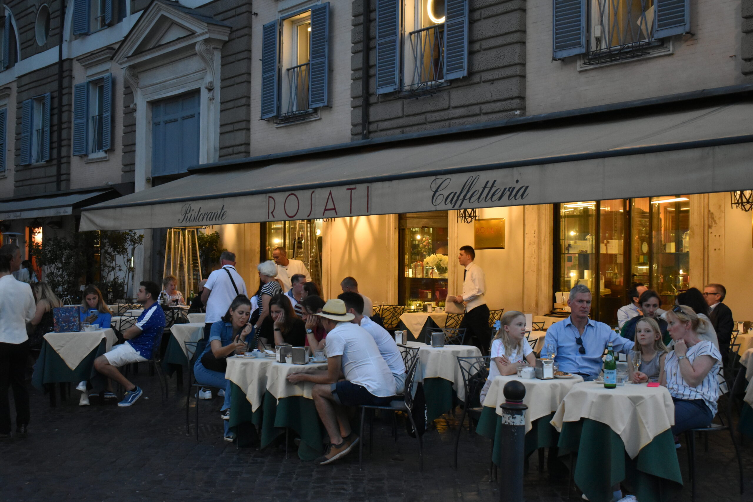 Τα ίδια αυτά εξωτερικά τραπέζια που και σήμερα απολαμβάνουν απρόσκοπτη θέα στην πλατεία, καταλαμβάνονται πλέον συνήθως από τουρίστες, εσείς όμως μπορείτε να ονειροπολήσετε ότι πίνετε τον καφέ σας ανάμεσα στον Pier Paolo Pasolini, τον Alberto Moravia, την Elsa Morante και τους υπόλοιπους διανοούμενους θαμώνες του Rosati.