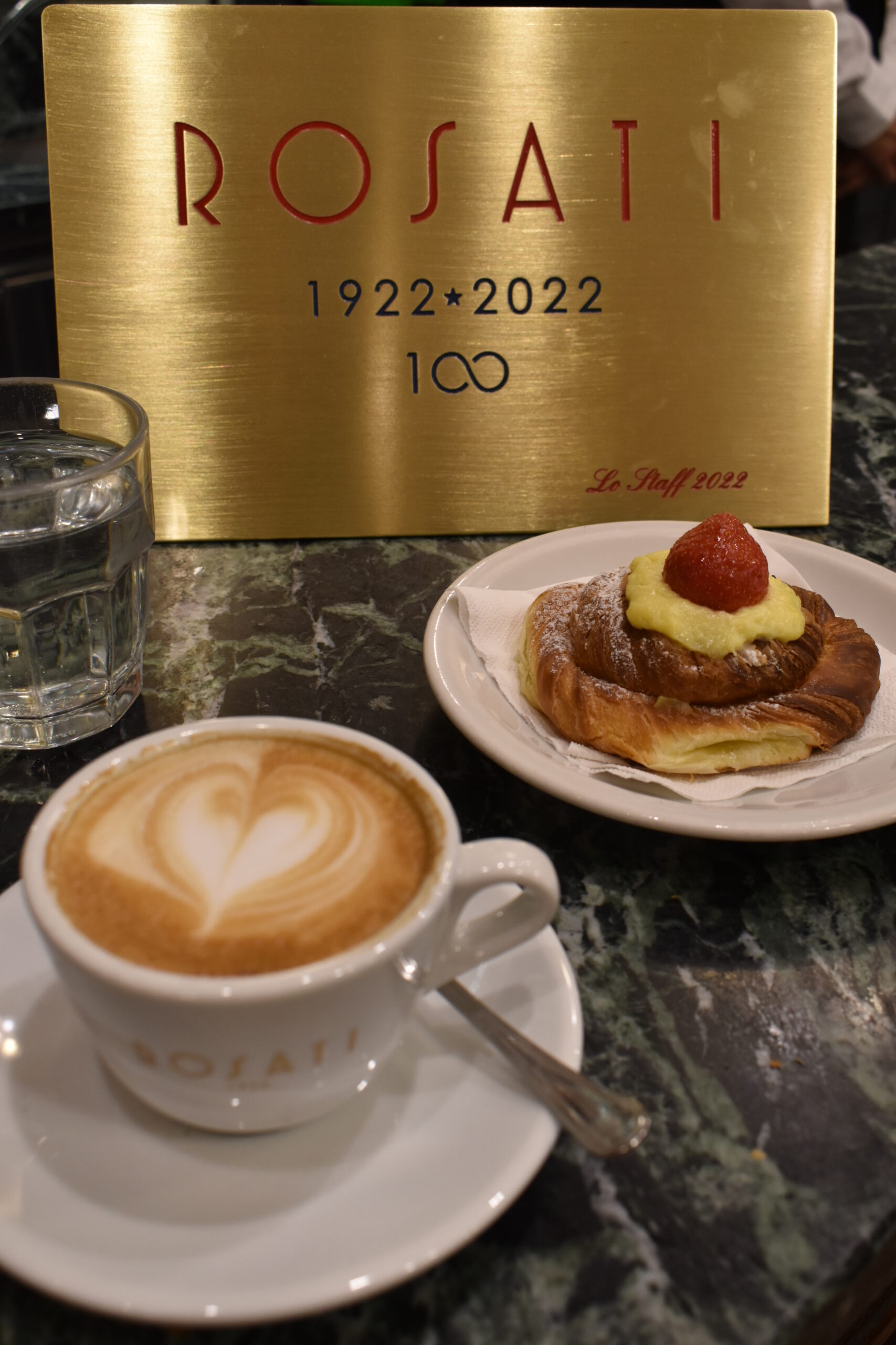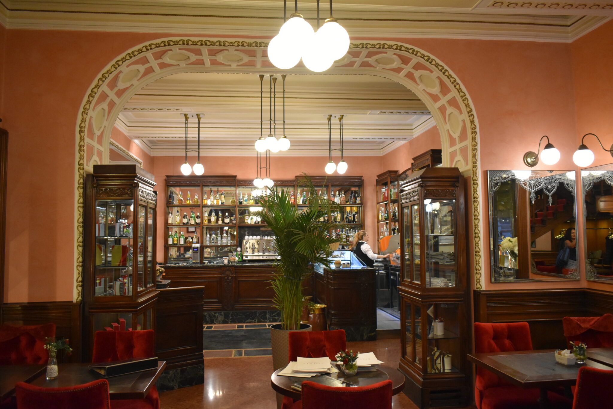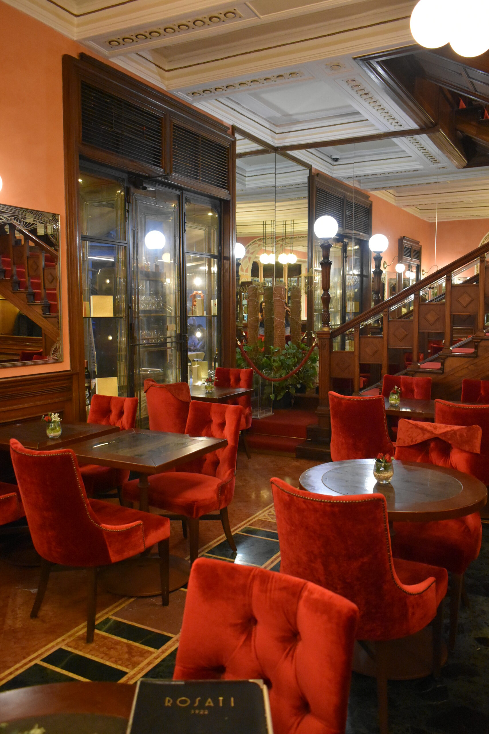 Στη ζεστή και κομψή σάλα που βρίσκεται πέρα από το μπαρ και χαρακτηρίζεται από art nouveau λεπτομέρειες, κυριαρχεί το σκούρο ξύλο στη σκάλα και τα σκαλιστά έπιπλα και το πλούσιο κόκκινο βελούδο στα καθίσματα. Σίγουρα ένα αιώνα πριν, όταν τα αδέρφια Enrico και Marco Rosati μεταμόρφωναν το παλιό γαλακτοπωλείο που υπήρχε στη θέση αυτή, δεν φαντάζονταν ότι η ρετρό γοητεία που απέπνεε το καφέ τους θα διατηρούνταν απαράλλαχτη μέχρι τις μέρες μας.