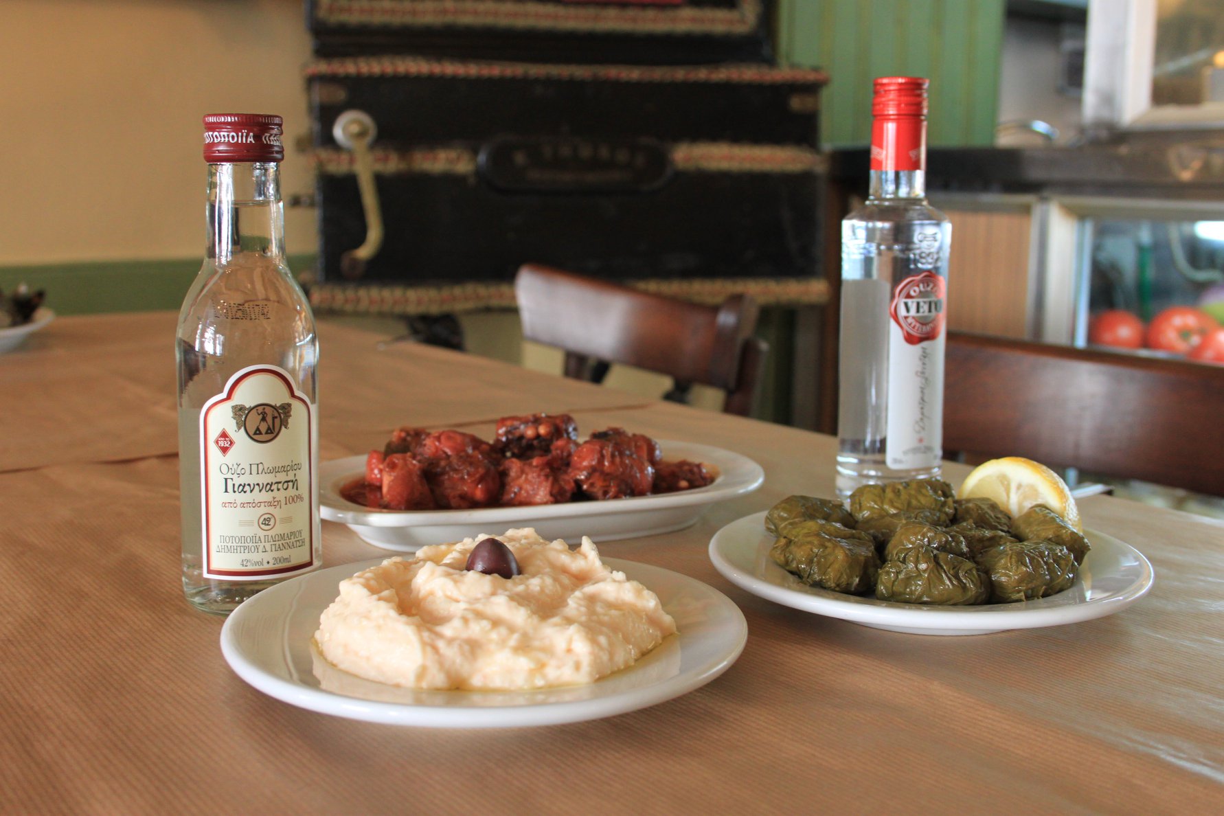 Αλλά και στο Γαλάτσι, το «Λέσβιον», αυτό το χαριτωμένο ουζερί, έχει τους πιστούς του θαμώνες. Τυριά από τον Μεσότοπο και την Άγρα, παραδοσιακή λακέρδα, σαρδέλες Καλλονής, μικρά ψάρια στο τηγάνι και φυσικά χταπόδι στα κάρβουνα, ανήκουν στις άχαστες επιλογές από το σύντομο, περιεκτικό μενού. Τα πάντα μαγειρεύονται και περιχύνονται με λάδια από την Μυτιλήνη, ενώ επιλέγουμε ανάμεσα σε αρκετές ετικέτες ούζων και τσίπουρων, εκτός από τις φορές που προτιμούμε το ντόπιο χύμα κρασάκι τους, το Μοσχάτο Αλεξανδρείας.