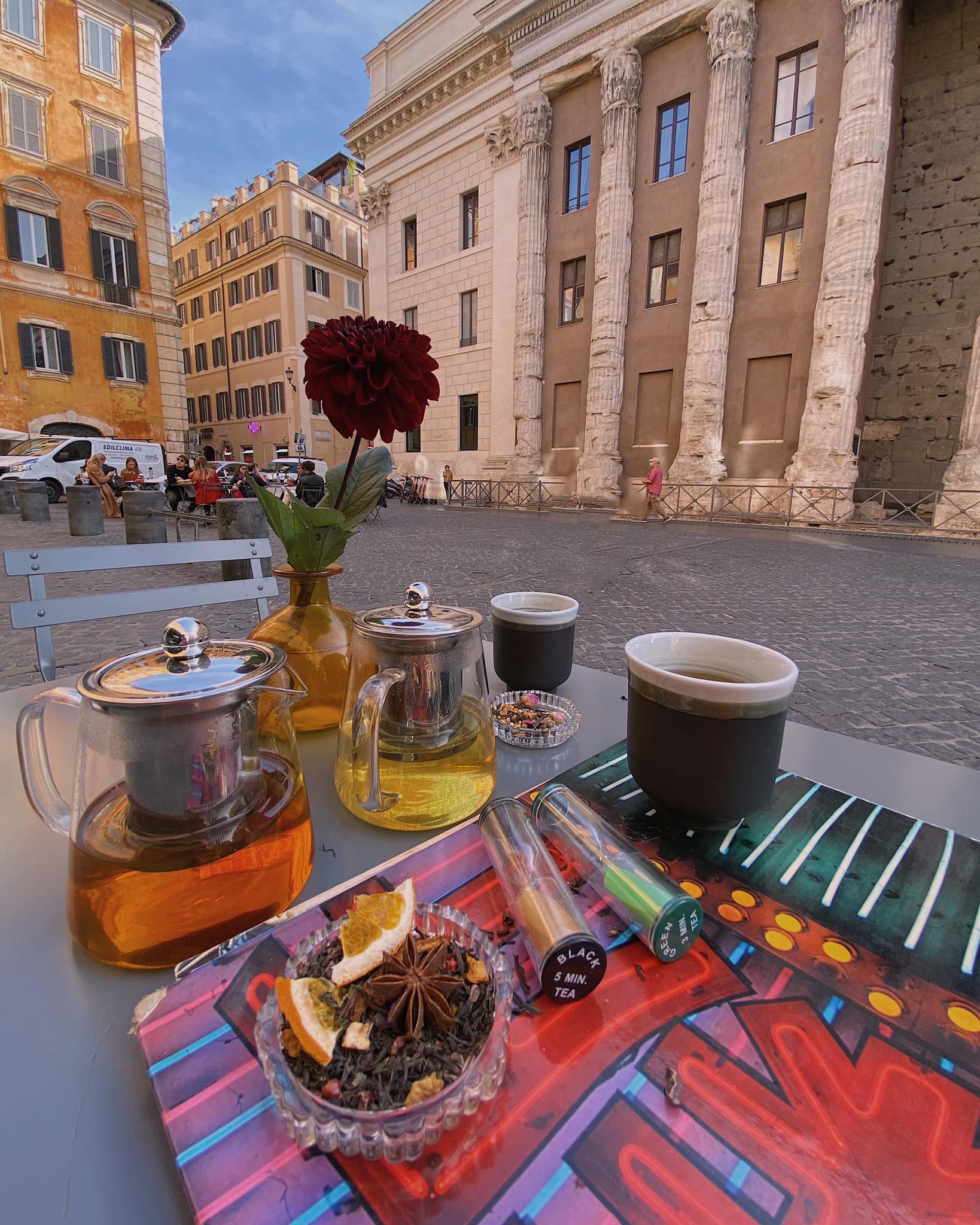 Τίποτα όμως δε συγκρίνεται με το επιβλητικό σκηνικό της μικρής πλατείας που το καλοκαίρι θα απολαύσετε ιδανικά με ένα cocktail Basil, φτιαγμένο με βότκα, φράουλες, τσίλι και φυσικά βασιλικό.