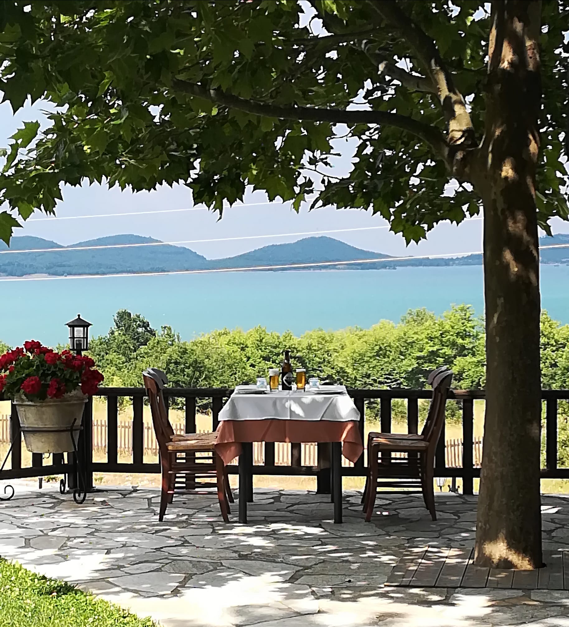 Όμορφο πέτρινο σπίτι σχεδόν πάνω στην όχθη της λίμνης με συναρπαστική θέα που αλλάζει ανάλογα με την ώρα και τις εποχές. Άνετος χώρος, χωρίς στριμωγμένα τραπεζοκαθίσματα, ωραίο τζάκι και λιτή διακόσμηση. Από το φθινόπωρο και μετά πιάτα με μανιτάρια από τα οποία ξεχωρίζει η πολύ γευστική μανιταρόσουπα. Καλά ντόπια κρεατικά. Το μενού περιλαμβάνει πιάτα όπως αγριογούρουνο με χυλοπίτες, γίδα βραστή, κόκορα κρασάτο, αρνάκι γάστρας, κλπ. ,