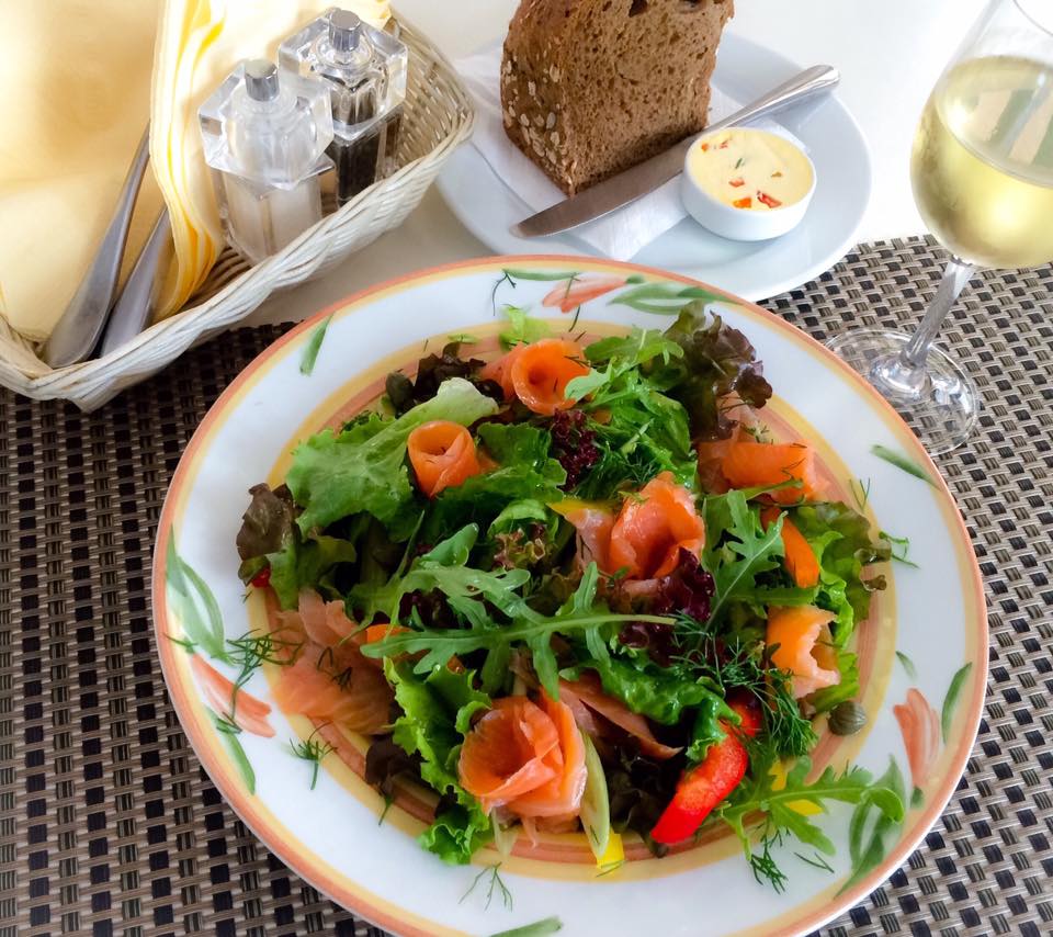 Αρκετά μεγάλος κατάλογος με προσεγμένα πιάτα από τη σύγχρονη ελληνική και μεσογειακή κουζίνα (προσφέρει και σεβίτσε και καρπάτσο) και ενδιαφέροντα γλυκά. Πάνω στο λιμάνι με θέα στο Κάστρο, και γρήγορο και ευγενικό σέρβις.