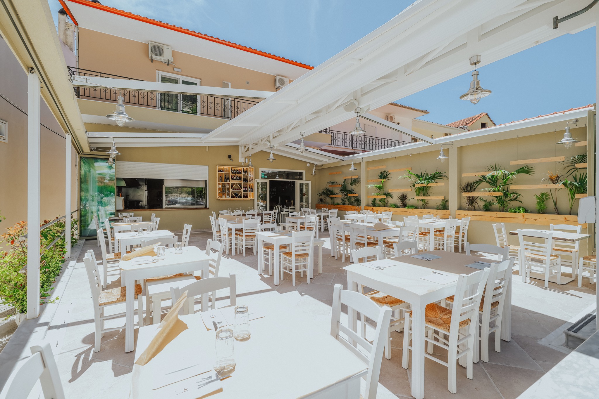 Βonus στον επισκέπτη, καθώς θα απολαμβάνει το φαγητό του και το ποτό του, η εκθαμβωτική θέα στο Ιόνιο και στο νησάκι της Παναγίας σχεδόν από παντού.