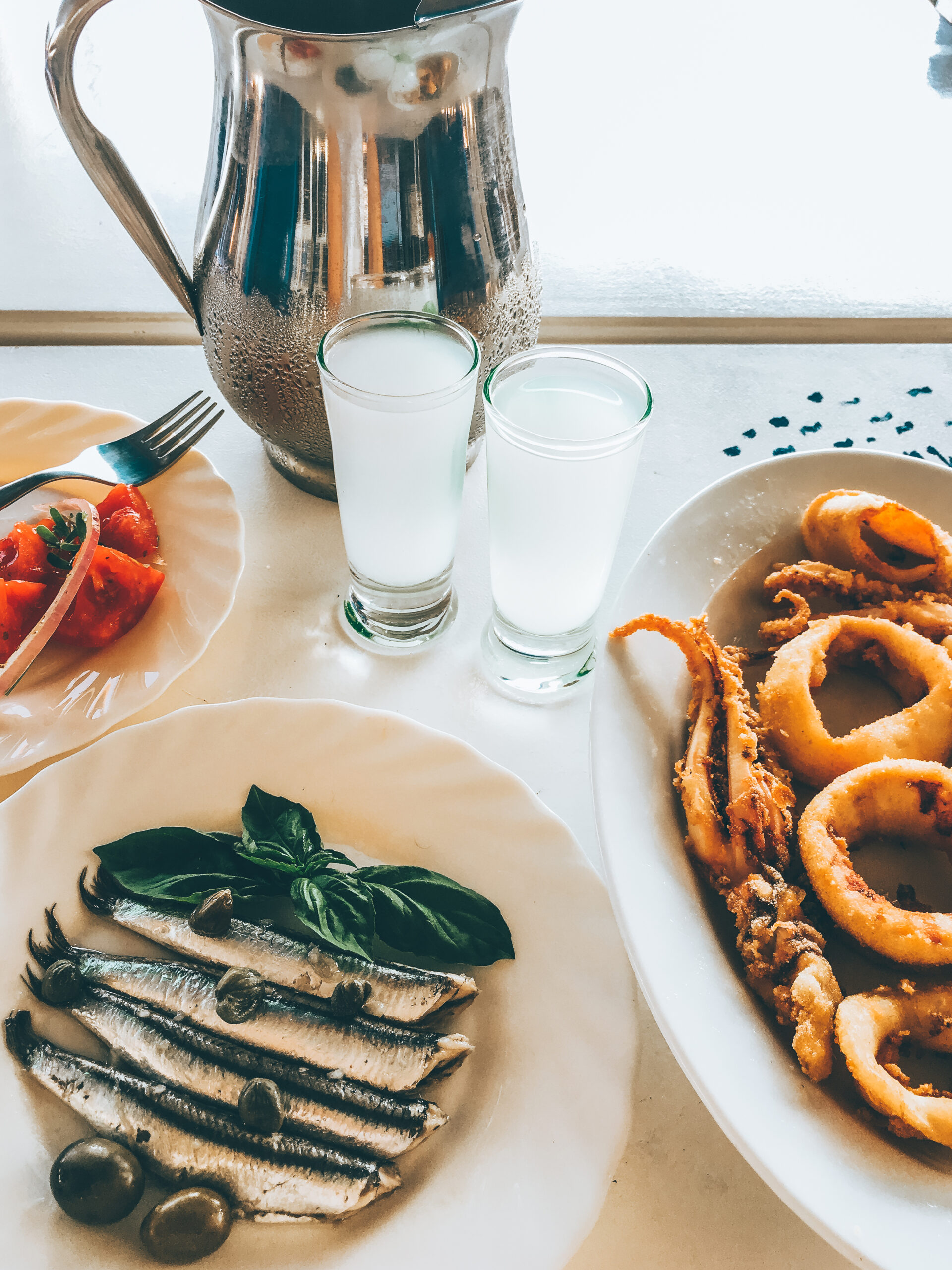 Το νησί φημίζεται τόσο για την παραγωγή ούζου όσο και για τα ψάρια και τα θαλασσινά και στα ουζερί της Λέσβου θα βρείτε τους καλύτερους μεζέδες. Παστά μικρά ψαράκια, θαλασσινά στο τηγάνι, οστρακοειδή και μεγάλα ψάρια είναι σε αφθονία και οι επαγγελματίες μεταχειρίζονται τις πρώτες ύλες με τον καλύτερο τρόπο. Δεν τα παραμαγειρεύουν, δεν τα πλακώνουν με σάλτσες και μπαχαρικά, τα ψήνουν ή τα τηγανίζουν ελαφρώς, ακριβώς όσο πρέπει για να αναδειχτεί η γεύση και το άρωμά τους, να μυρίζουν θάλασσα και να ταιριάζουν απόλυτα με το ντόπιο ούζο.