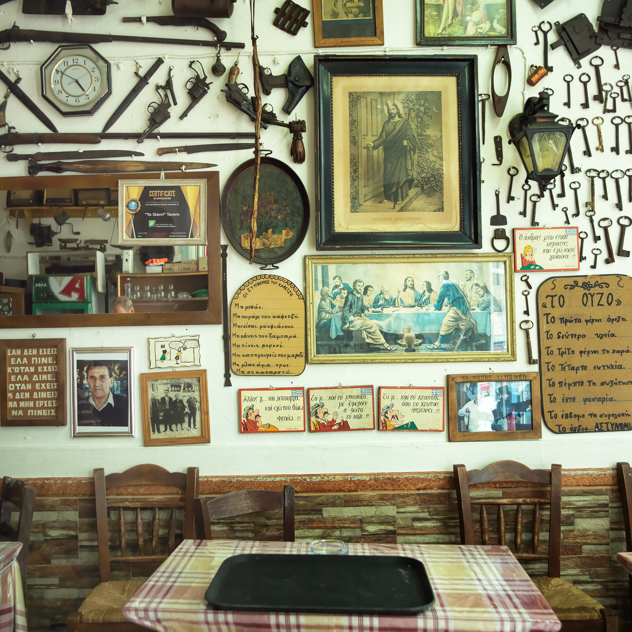 Σήμα κατατεθέν του ορεινού χωριού της Αγιάσου, θα το βρείτε στο ψηλότερο σημείο του χωριού. Γεμάτο επιγραφές στην τοπική διάλεκτο, παραδοσιακά εργαλεία και αντικείμενα στους τοίχους, διαθέτει και εξωτερικό χώρο κάτω από τη σκιά ενός μεγάλου πλάτανου. Στον κατάλογο θα βρείτε τα κλασικά ενός ουζερί όπως κεφτεδάκια, λουκάνικο, μικρά ψαράκια και τηγανητά θαλασσινά. Αν πετύχετε ομελέτα με αβρωνιές (άγρια, λεπτά σπαράγγια) να τη δοκιμάσετε οπωσδήποτε όπως και τα μανιτάρια και τα χόρτα, τα μαζεύουν οι ίδιοι από το βουνό και τα κάνουν πεντανόστιμα. Μας άρεσαν πολύ και τα καλαθάκια από τραχανά γεμιστά με ντόπια φέτα, ντομάτα και μυρωδικά.