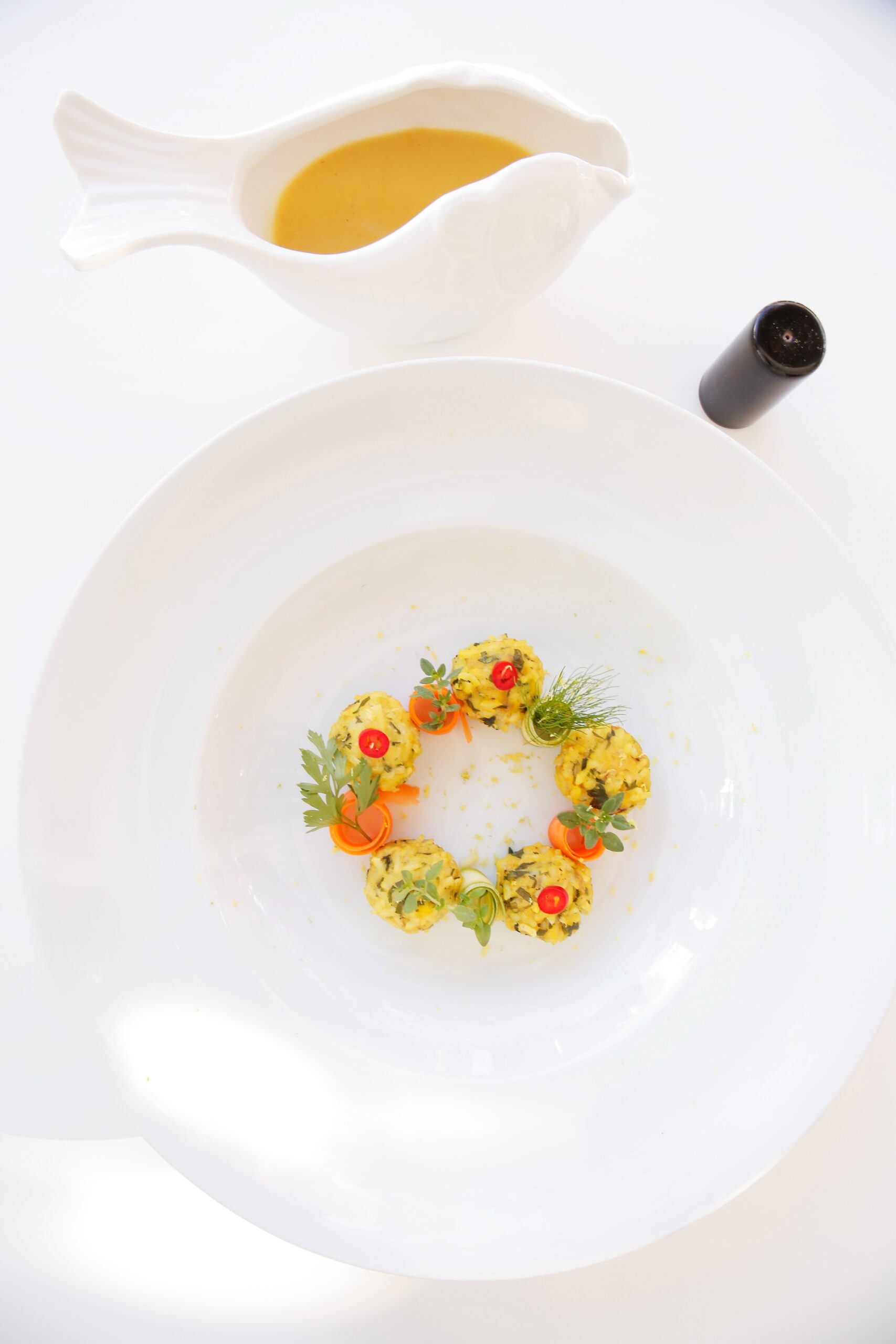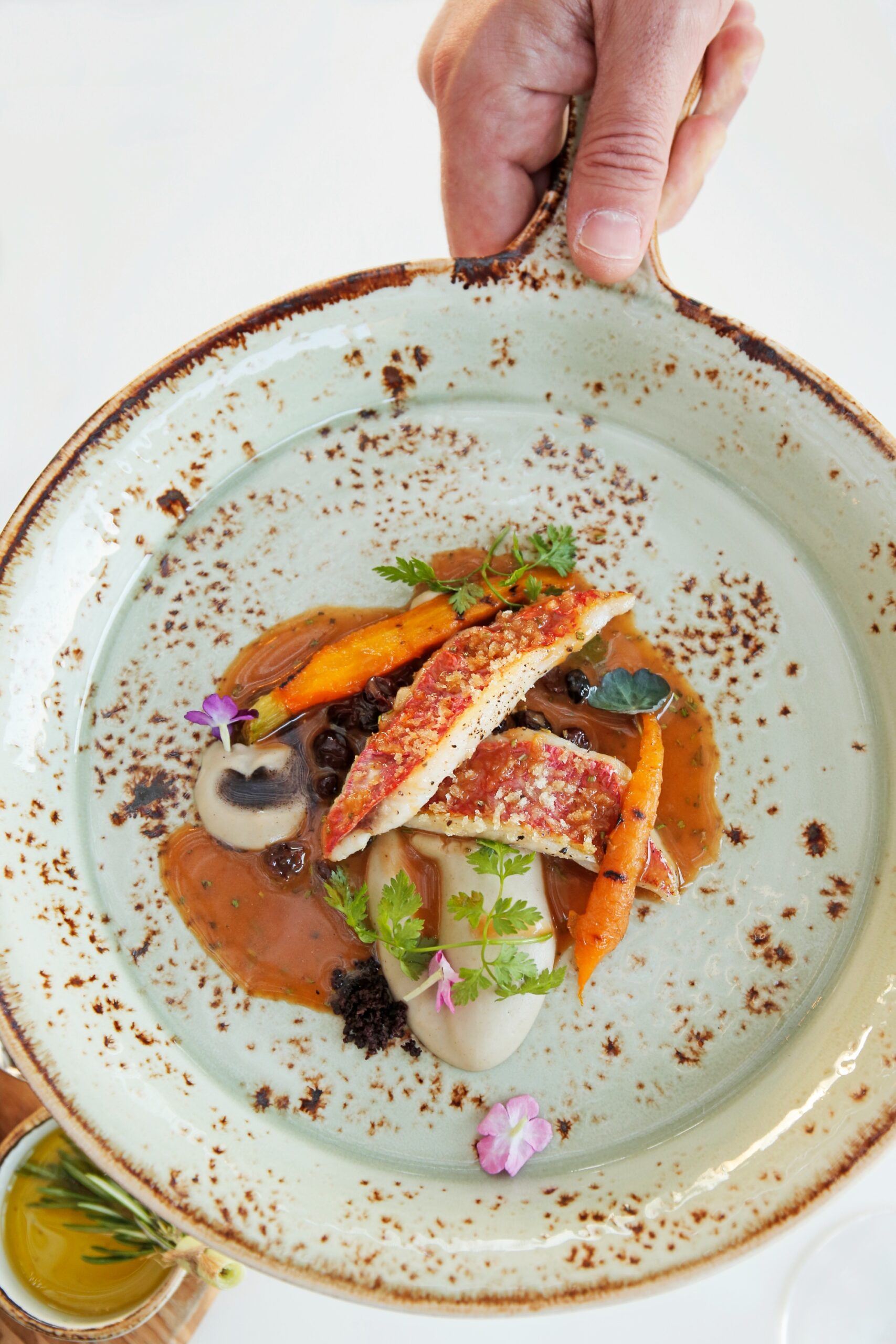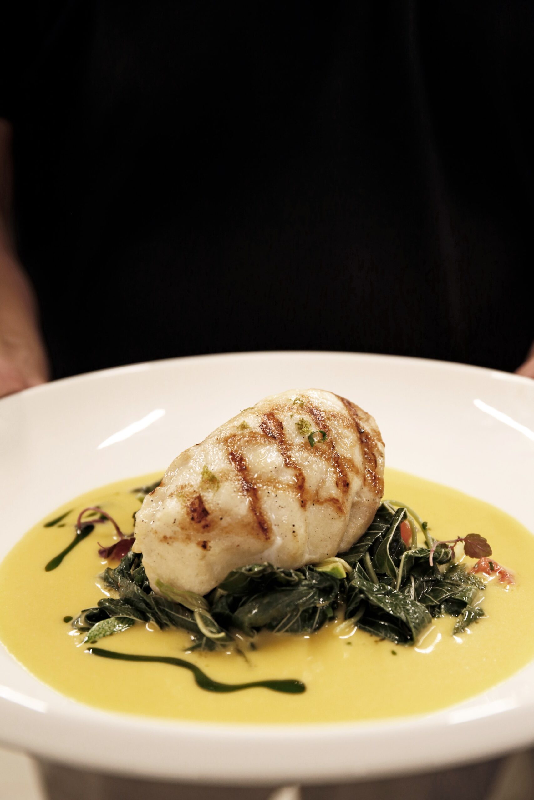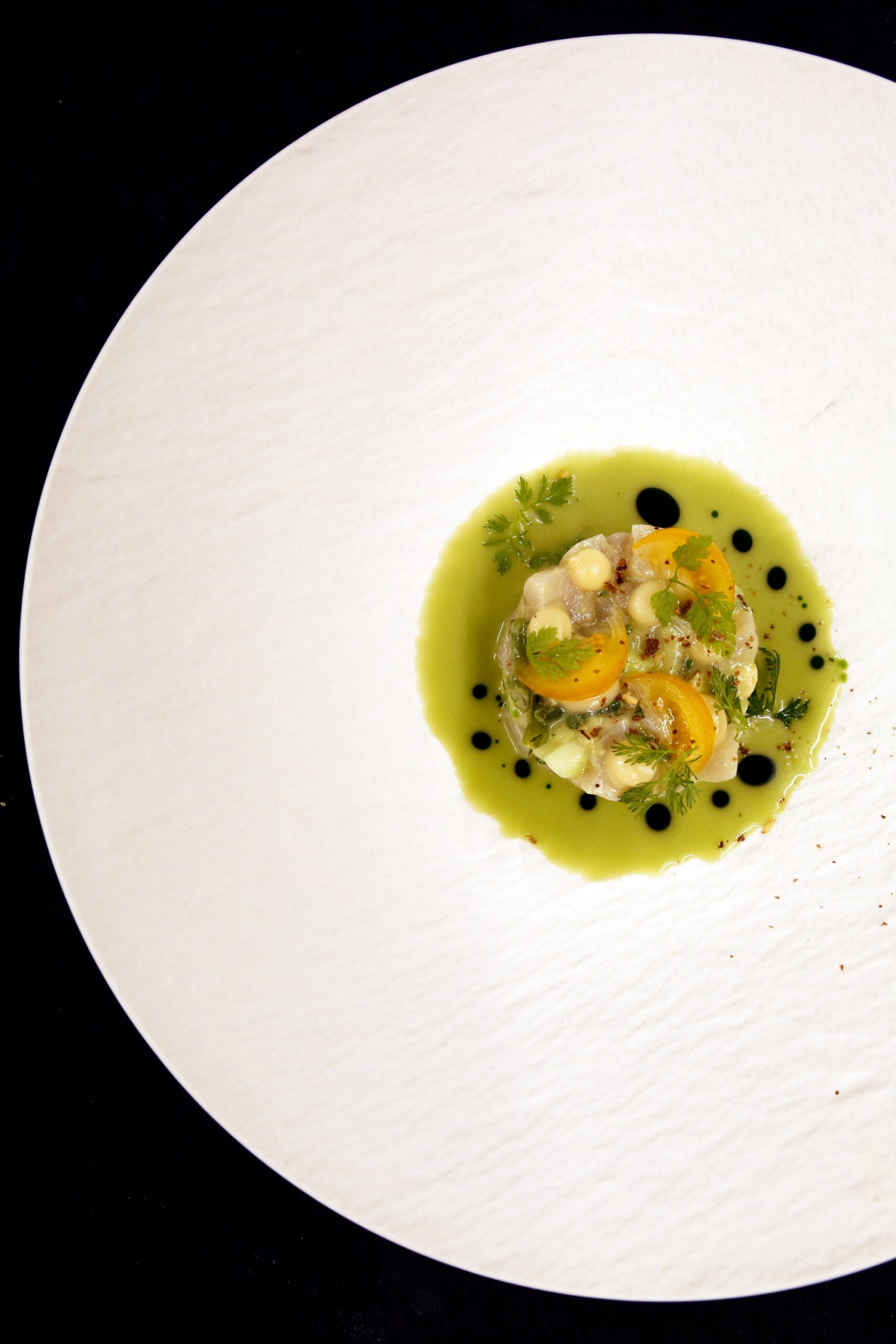 Σε διεθνή γραμμή τα πιάτα “Σούπα βελουτέ αστακού αρωματισμένη με τζίντζερ, σχινόπρασο, κρεμμύδι και συνοδεία από ψητό καλαμπόκι, το πιάτο “Κανελόνι χειροποίητο γεμιστό με καβούρι, γαρίδα, σπανάκι και μπεσαμέλ γαρίδας με μπισκ -σος αρωματισμένη με Moschato d’Asti και τα μοντέρνα ωμά: καρπάτσο λαυράκι με αχινό, μους από ταραμά, κενέλ ντομάτας και ελαιόλαδο με γιούζου, ταρτάρ τόνου με καρπούζι, σος απο δυόσμο, και τσιπς από ρύζι. Ελληνικής έμπνευσης η “Σφυρίδα αυγολέμονο φρικασέ με αλμύρες και κολοκυθάκια” και ενδιαφέρον μεσογειακής έμπνευσης πιάτο ο “Μπακαλιάρος κονφί με πέρλες από κουρκούτι, λευκό ταραμά, ψητό παντζάρι και μους παντζαριού και σος πορτοκαλιού.