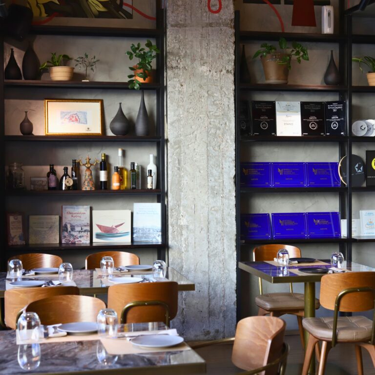 Από την κακαβιά, που σερβίρεται με ψάρι ή και χωρίς μόνο ο ζωμός δηλαδή, με τη μισή τιμή και που μας θύμισε τα μαγέρικα και το «ολίγη από γιουβέτσι» μέχρι τις εξαιρετικές σούβλες με κοκορέτσι, χοιρινό και κοτόπουλο, υπάρχει χώρος για το «φτωχικό» και δυσεύρετο πιάτο «κάστανα στιφάδο» και το ντελικάτο τεχνικό πιάτο «μοσχάρι ταρτάρ σε πατάτα mochi κάππαρη, καπνιστό ελαιόλαδο και καλοκαιρινή τρούφα». Λαχανοντολμάδες με θαλασσινά, κολιός πεταλούδα, μοσχοχτάποδο σχάρας με τσορίθο και μελάνι σουπιάς συν αρκετές κοπές -κόντρα μπριζόλα ελληνική μοσχίδας, «σπαλομπριζόλα old dairy cow, αράχνη black angus strip loin black angus, συνυπάρχουν δημοκρατικά». Και μπριαμάκι θα βρείτε. Το κρασί έχει μεγάλο ειδικό βάρος εδώ, με μια τεράστια wine list. Γύρω στις 400 ετικέτες από τον ελληνικό και τον διεθνή αμπελώνα, μεγάλη στοργή για τους μικρούς Έλληνες παραγωγούς και περίπου 50 κρασιά με το ποτήρι.