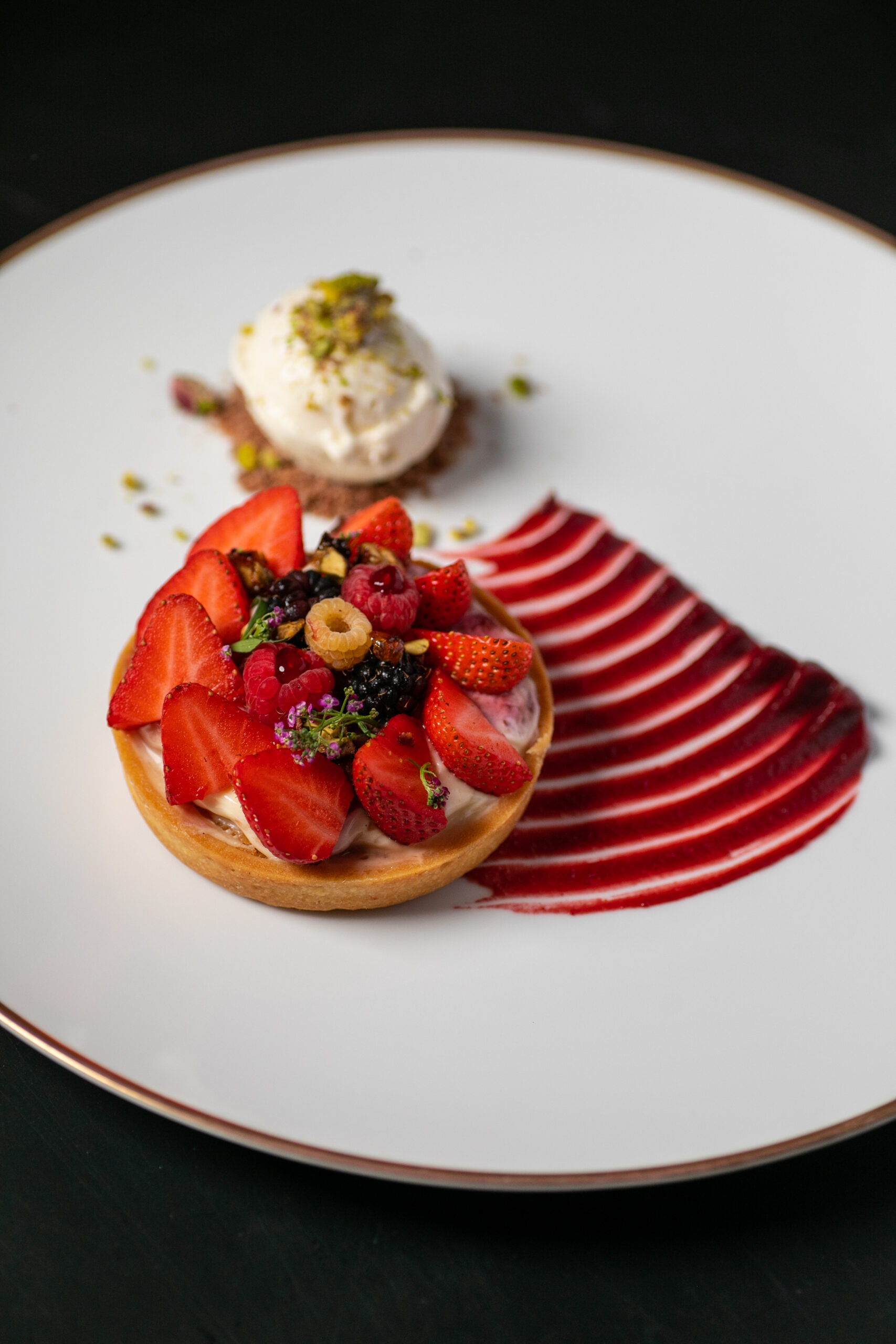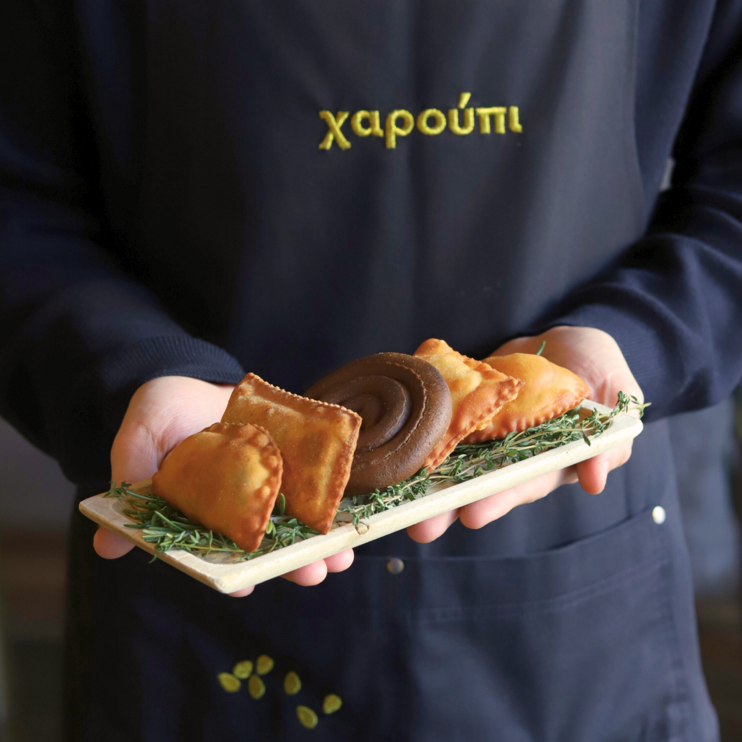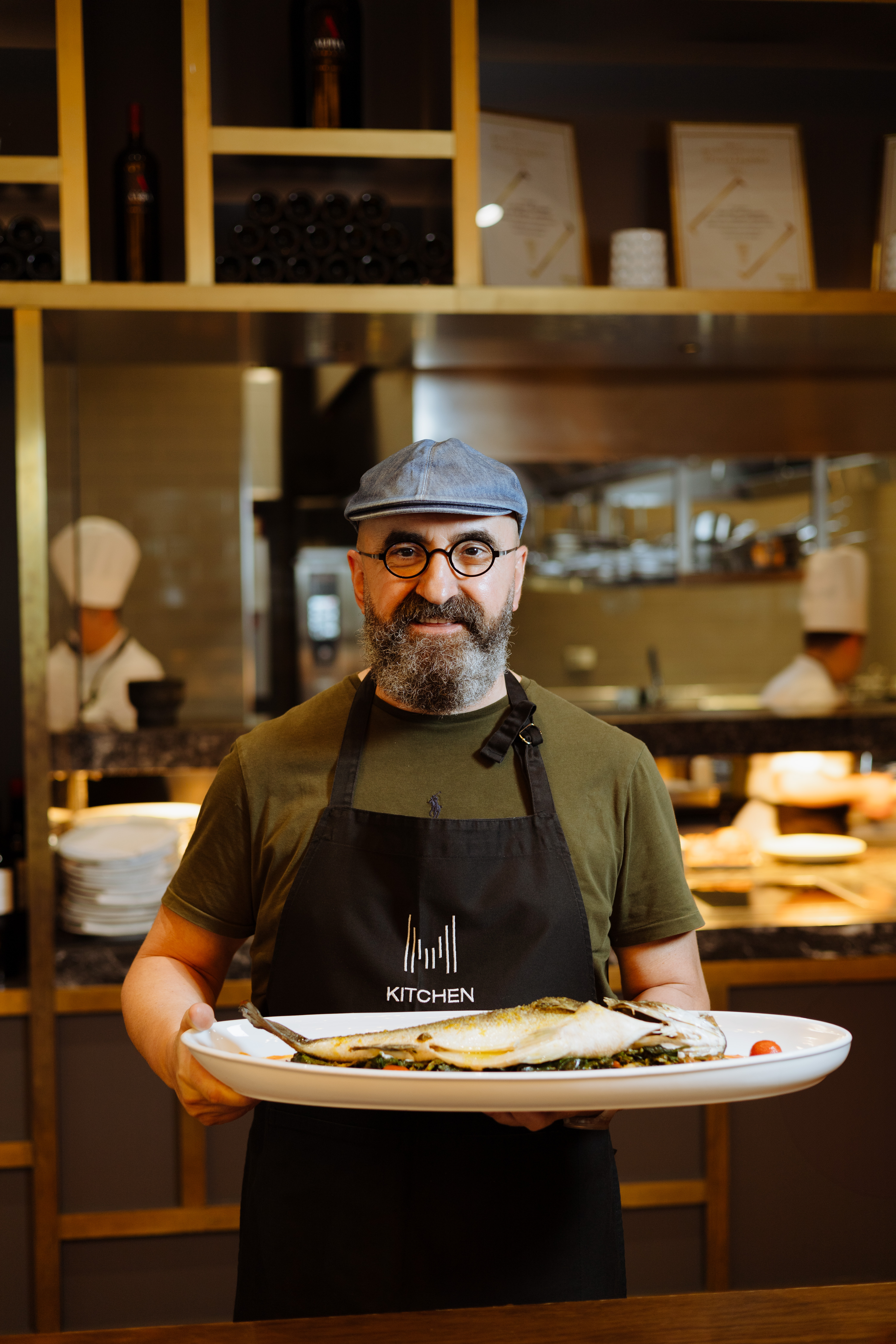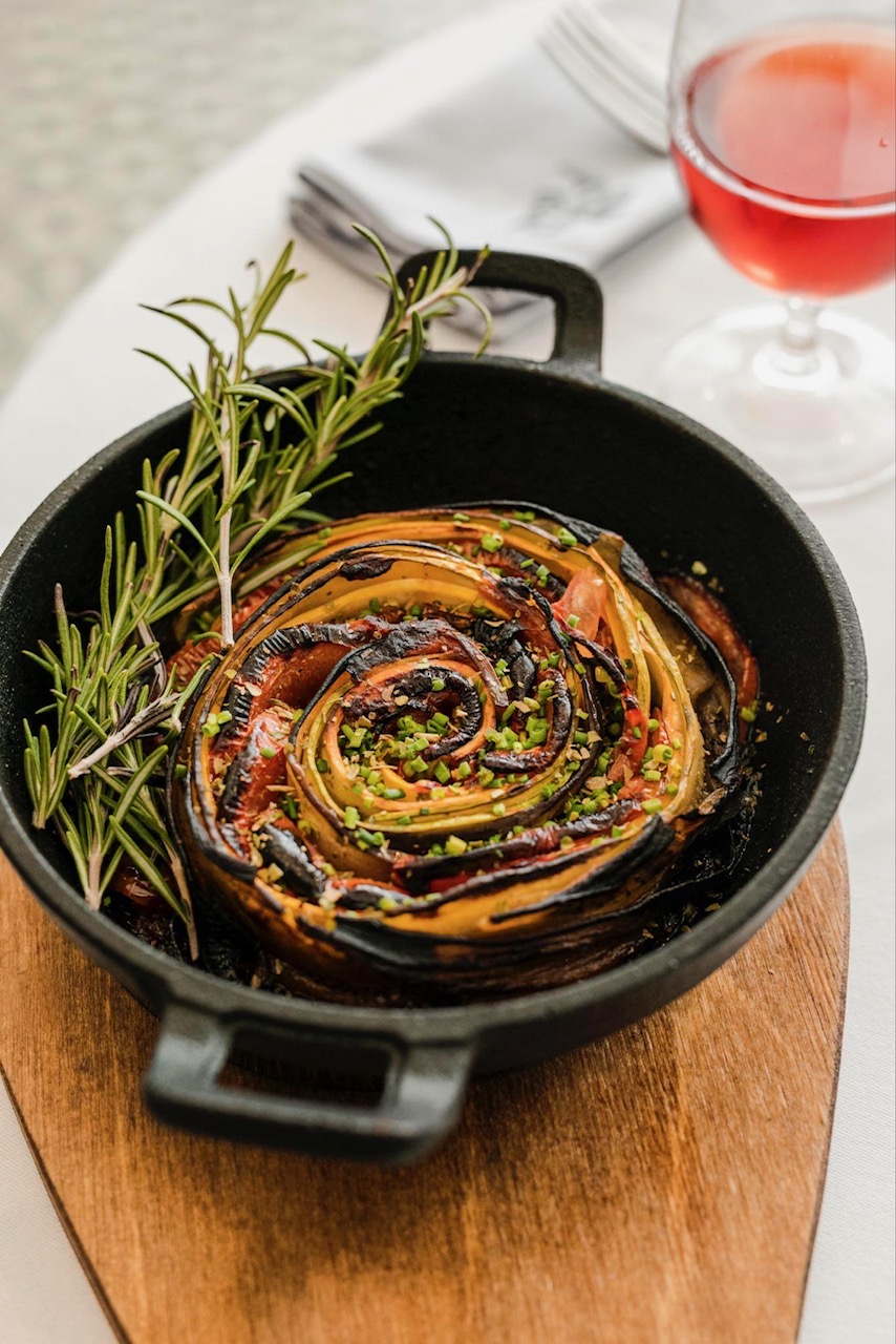 Ο «λαχανοντολμάς θαλασσινών» τυλίγεται σε λάχανο σαβόι και η γέμιση φτιάχνεται με καβούρι, γαρίδα και ρύζι, γαρνίρεται με αυγά βασιλικής ρέγγας και συνοδεύεται από μια ιωδιούχα σως από αχινό με απόσταγμα από μυρώνια και τσίλι, πραγματική γευστική πατέντα. Πιάτο έξυπνο και πεντανόστιμο, ο «μουσακάς με λεπτό φιλέτο από rib eye black angus (στη θέση του κιμά), μπεσαμέλ à la minute καψαλισμένη με το φλόγιστρο, στρώσεις από καψαλισμένα λαχανικά (πατάτα, μελιτζάνα) και σάλτσα από τους χυμούς του κρέατος αρωματισμένη με θερμά μπαχαρικά. Θα πάρετε οπωσδήποτε «κατσικομακαρονάδα» (το κατσίκι είναι pulled), με σάλτσα σαν ντεμι γκλας από τους χυμούς του αρνιού και κρασί vinsanto συν «αλλαντικό» από μπαλοτίνα αρνιού σαν απάκι για έξτρα νοστιμιά και παγωτό από ξηρό ανθότυρο στη θέση του τριμμένου τυριού. Μεγαλοπρεπές το «ζεστό κιουνεφέ» με κρέμα γιαούρτι -λευκή σοκολάτα, τζελ από φρούτα του δάσους με κραμπλ από φυστίκια Αιγίνης και χειροποίητο παγωτό κανέλας πασπαλισμένα με άκρη ζάχαρη και κανέλα.