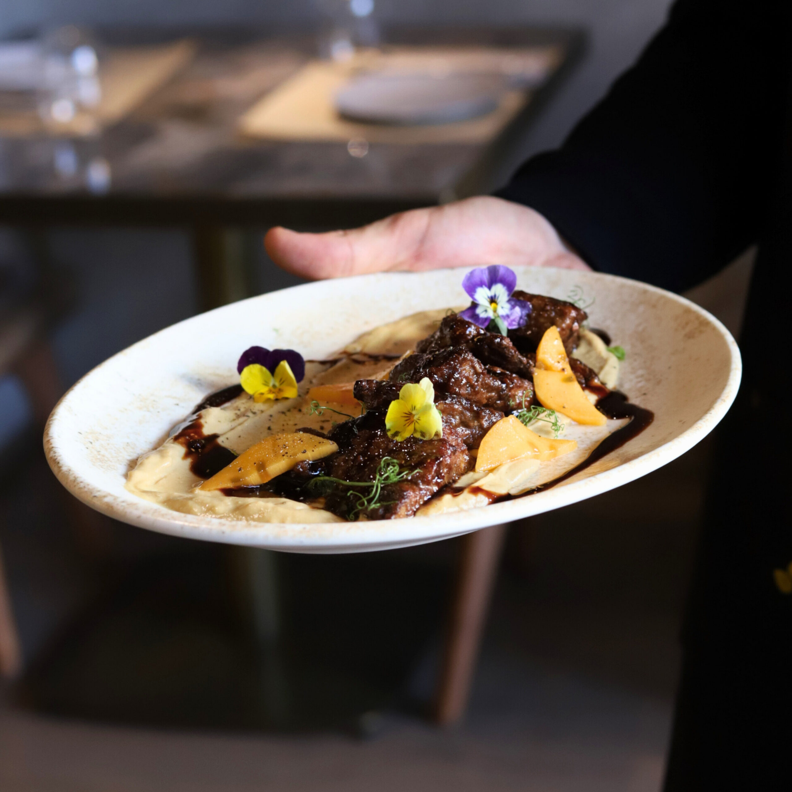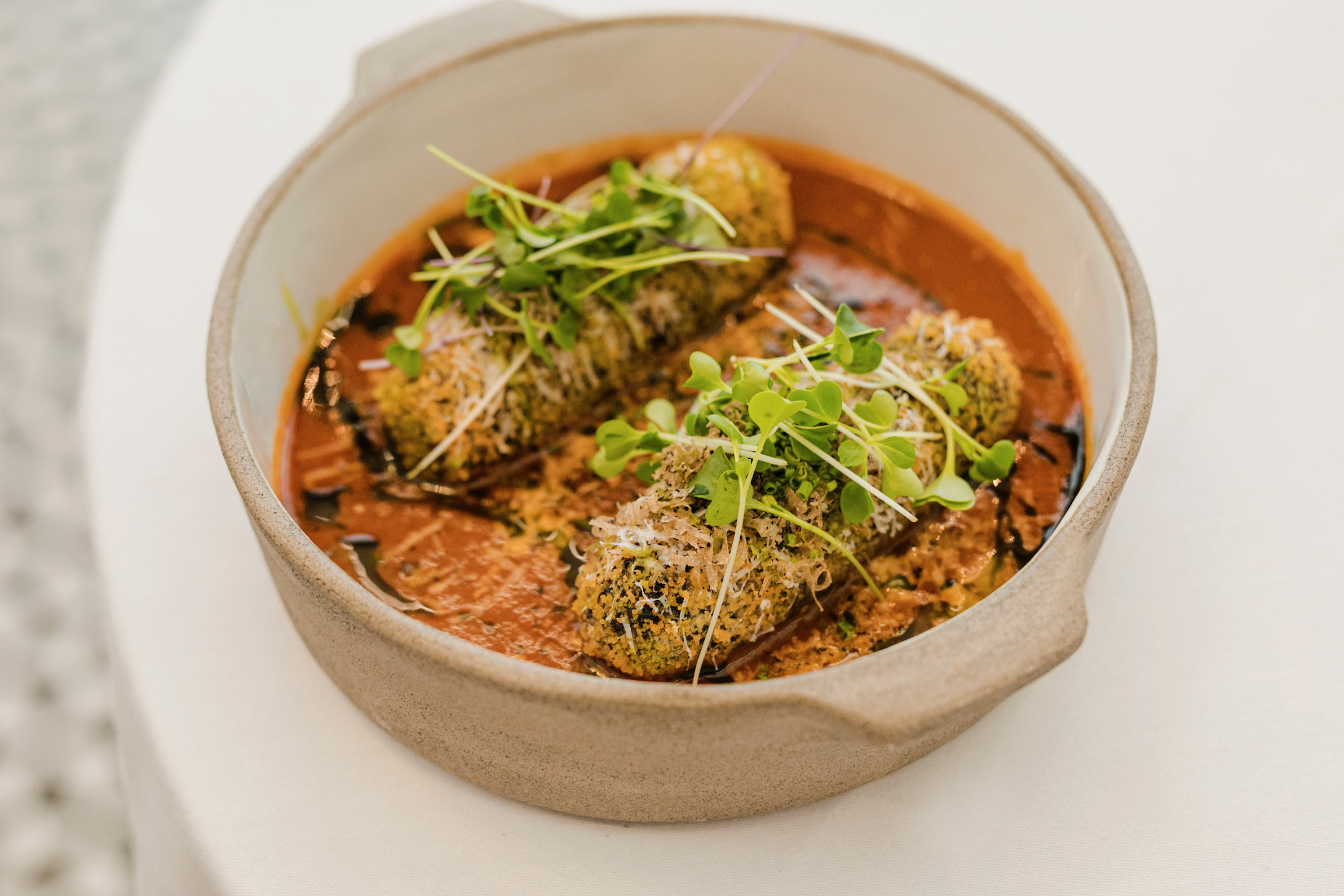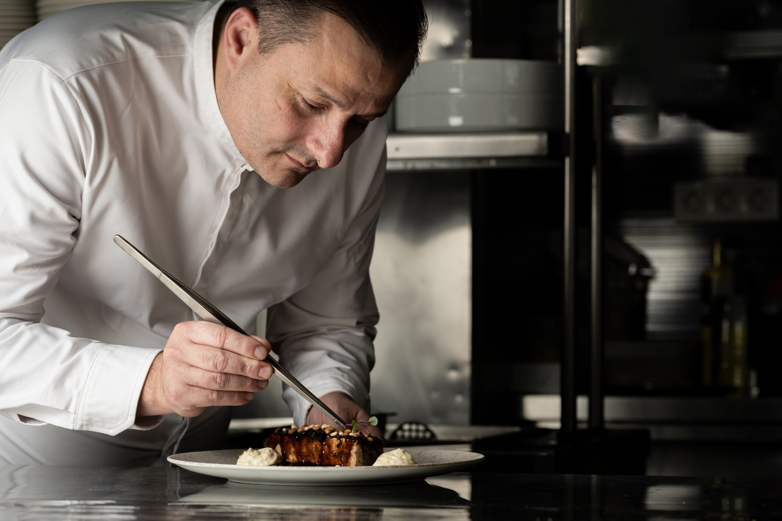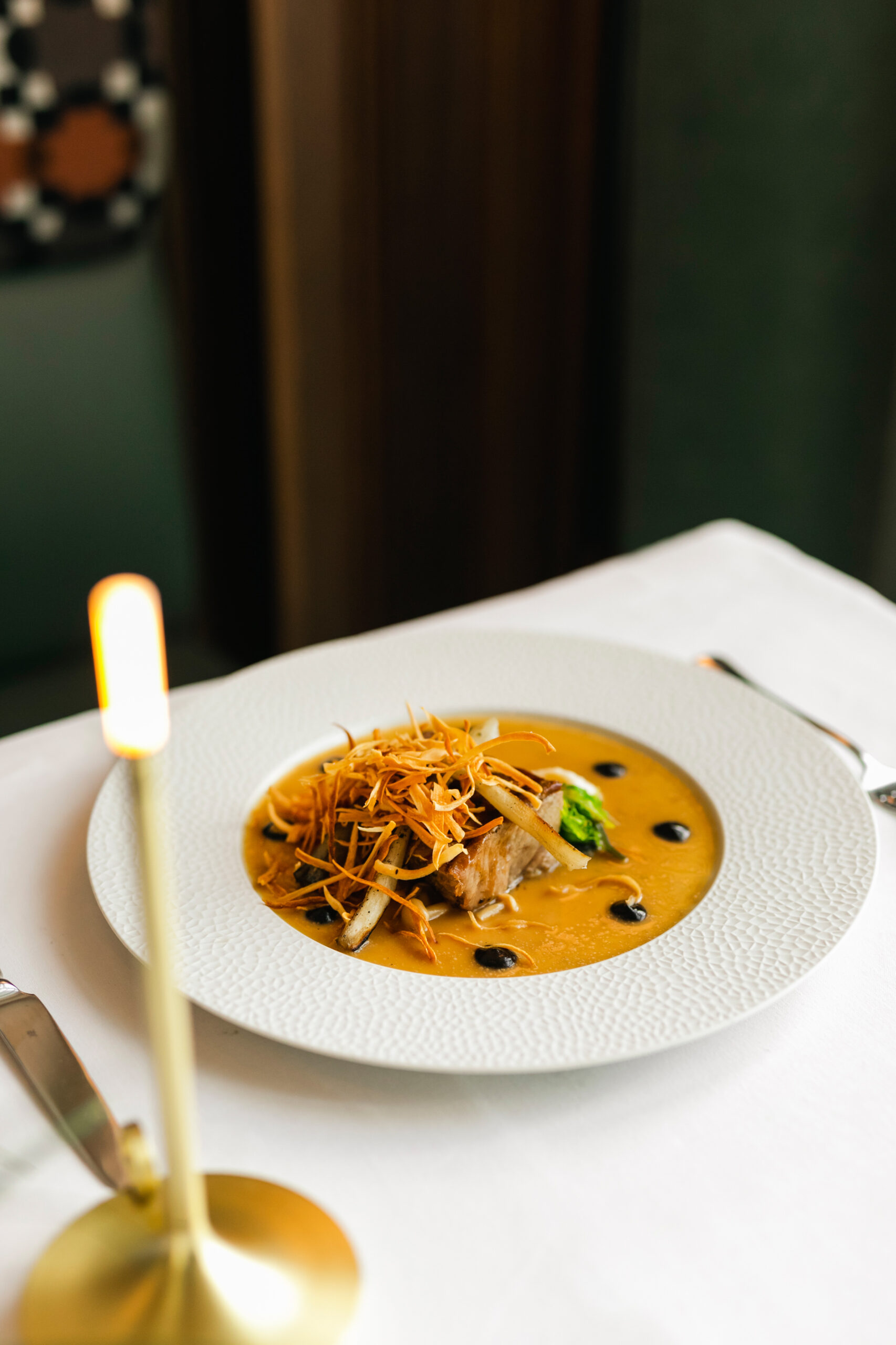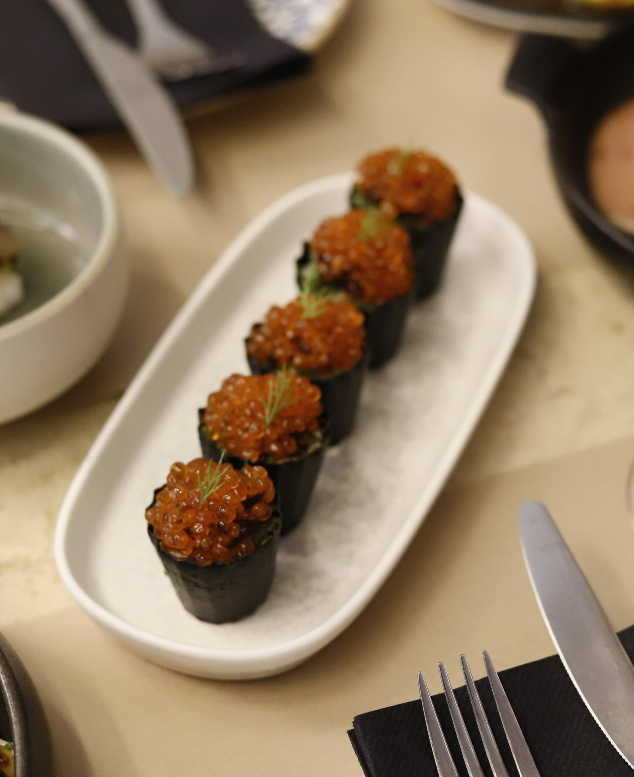 Kομψότατο στη λιτότητά του bar restaurant, από τον πολυβραβευμένο Βασίλη Μουρατίδη, executive chef σεφ του πολυτελούς ξενοδοχείου «Danai Beach Resort» στη Σιθωνία και εκφραστή μιας συνταρακτικής fine dining γαστρονομίας και τον συνεργάτης του, τον ταλαντούχο σεφ Σοφοκλή Μαραγκουδάκη. Για το δικό τους εστιατόριο, οι σεφ επιλέγουν μια fine comfort μεσογειακή κουζίνα με επιρροές από Ιταλία, Γαλλία και Ελλάδα, μεγάλη προσοχή στις πρώτες ύλες από τοπικούς παραγωγούς της Θεσσαλονίκης και της Χαλκιδικής και μικρό κατάλογο που διευρύνεται με πιάτα ημέρας. Πιάτο εξαίσιο, οι παπαρδέλες με μπουτάκια πάπιας ραγού, κατσικίσιο τυρί και βούτυρο λευκής τρούφας. Το ψητό λάχανο, κρουστό και φίνο, με ντελικάτη, αρωματική κρέμα από πορτοκάλι, σάλτσα βουτύρου και τηγανητό kale γαρνίρεται όμορφα με χαβιάρι πέστροφας (σαν brick αλλά λίγο πιο μικρό).
