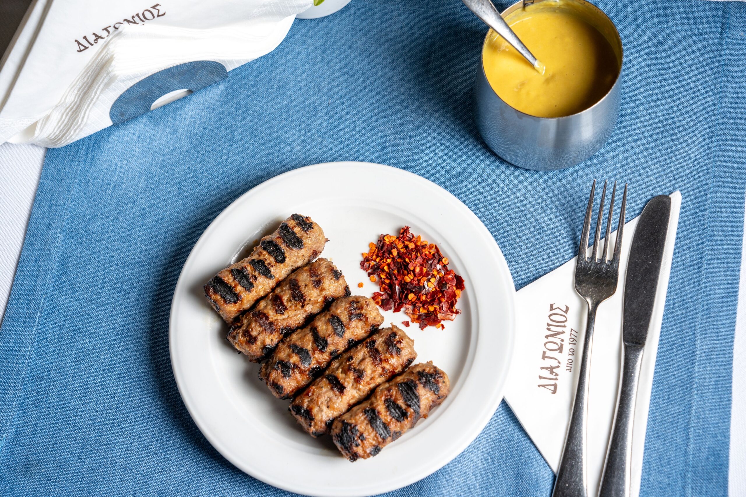 Η αλλαγή ιδιοκτησίας στο ιστορικό μαγαζί που βρίσκεται στην καρδιά ντόπιων και επισκεπτών από το 1977 -πέρασε στους δραστήριους επιχειρηματίες που τρέχουν τα εστιατόρια «Γλυκάνισος», «Marea Sea Spirit» και «Iberico»- δεν άλλαξε τίποτα από τα αγαπημένα που φέρουν εδώ και 50 χρόνια τους πιστούς στα τραπέζια του. Ο πεντανόστιμος χοιρινός γύρος και τα ψητά σουτζουκάκια (στην πραγματικότητα είναι μπιφτεκάκια αλλά στη Θεσσαλονίκη τα λένε σουτζουκάκια) στη βρίσκονται πάντα στη διάθεση μας. Χειροποίητος ο γύρος, ήπια καρυκευμένος, ελαφροψημένος, λίγο τραγανός απ’ έξω. Έκπληξη για όποιον έρχεται για πρώτη φορά, το μπούκοβο που συνοδεύει τα αφράτα καλοζυμωμένα σουτζουκάκια. Δίπλα στο γύρο και στα σουτζουκάκια, στέκεται ισάξια το συκώτι. Φανταστικά ζουμερό έρχεται γαρνιρισμένο με μουστάρδα σε σκόνη. Το μαγαζί είναι περήφανο για τις αλοιφές του: ρώσικη, μελιτζανοσαλάτα, τζατζίκι και «πάπρικα», τη διάσημη μακεδονίτικη αλοιφή που συνοδεύει τα ψητά κρεατικά φτιαγμένη εδώ από πάστα ντομάτας, μουστάρδα και ρίγανη. Μας αρέσουν τα γλυκά, στο ίδιο μερακλίδικο ύφος με το φαγητό. Πορτοκαλόπιτα σιροπιαστή, σοκολατόπιτα και ένα παντεσπάνι σιροπιασμένο, γαρνιρισμένο με κρέμα σαντιγί, κάτι σαν το τούρκικο εκμέκ, μόνο που έχει σαντιγί αντί για καϊμάκι.