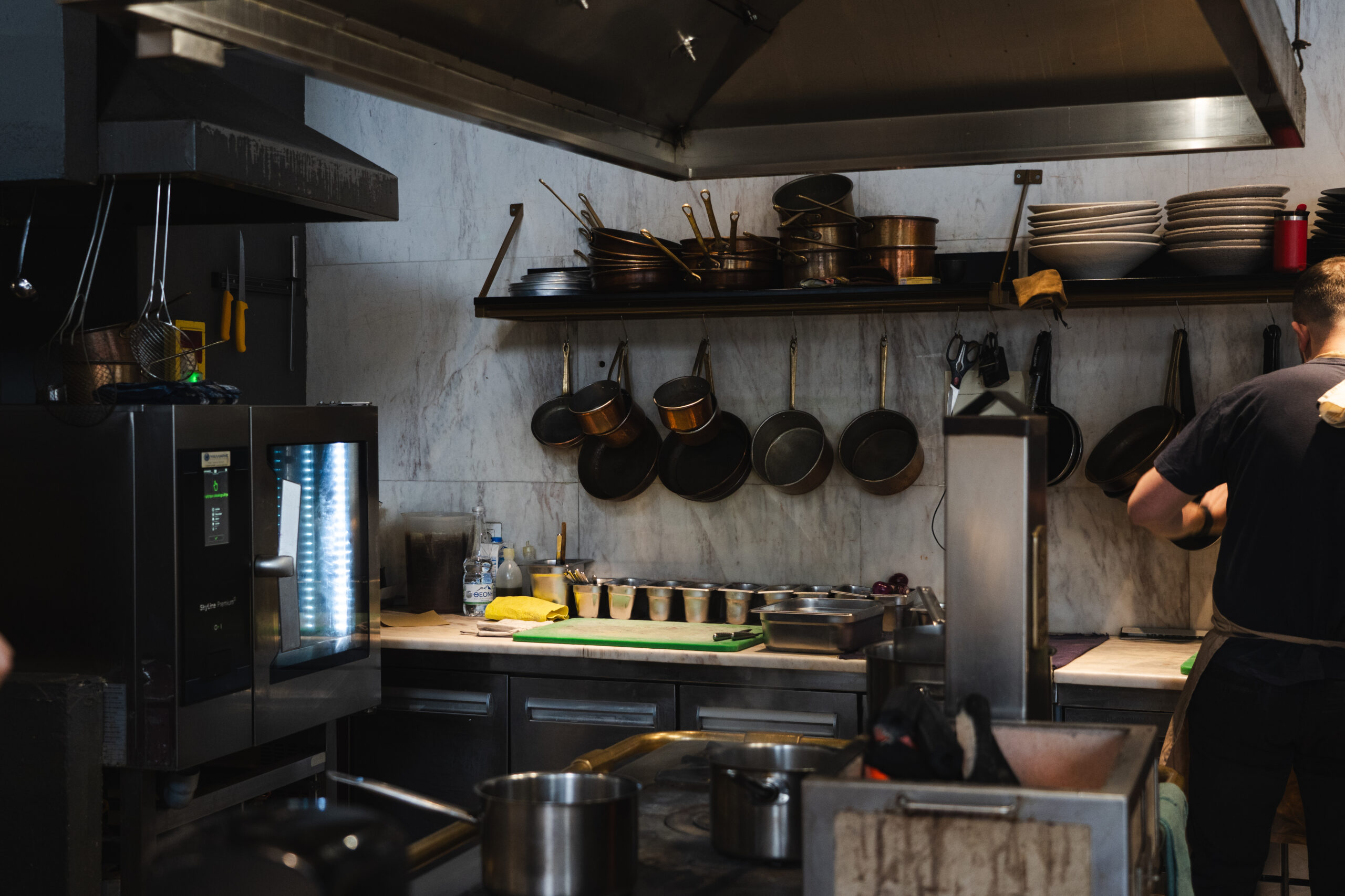 Από την κακαβιά, που σερβίρεται με ψάρι ή και χωρίς μόνο ο ζωμός δηλαδή, με τη μισή τιμή και που μας θύμισε τα μαγέρικα και το «ολίγη από γιουβέτσι» μέχρι τις εξαιρετικές σούβλες με κοκορέτσι, χοιρινό και κοτόπουλο, υπάρχει χώρος για το «φτωχικό» και δυσεύρετο πιάτο «κάστανα στιφάδο» και το ντελικάτο τεχνικό πιάτο «μοσχάρι ταρτάρ σε πατάτα mochi κάππαρη, καπνιστό ελαιόλαδο και καλοκαιρινή τρούφα». Λαχανοντολμάδες με θαλασσινά, κολιός πεταλούδα, μοσχοχτάποδο σχάρας με τσορίθο και μελάνι σουπιάς συν αρκετές κοπές -κόντρα μπριζόλα ελληνική μοσχίδας, «σπαλομπριζόλα old dairy cow, αράχνη black angus strip loin black angus, συνυπάρχουν δημοκρατικά». Και μπριαμάκι θα βρείτε. Το κρασί έχει μεγάλο ειδικό βάρος εδώ, με μια τεράστια wine list. Γύρω στις 400 ετικέτες από τον ελληνικό και τον διεθνή αμπελώνα, μεγάλη στοργή για τους μικρούς Έλληνες παραγωγούς και περίπου 50 κρασιά με το ποτήρι.