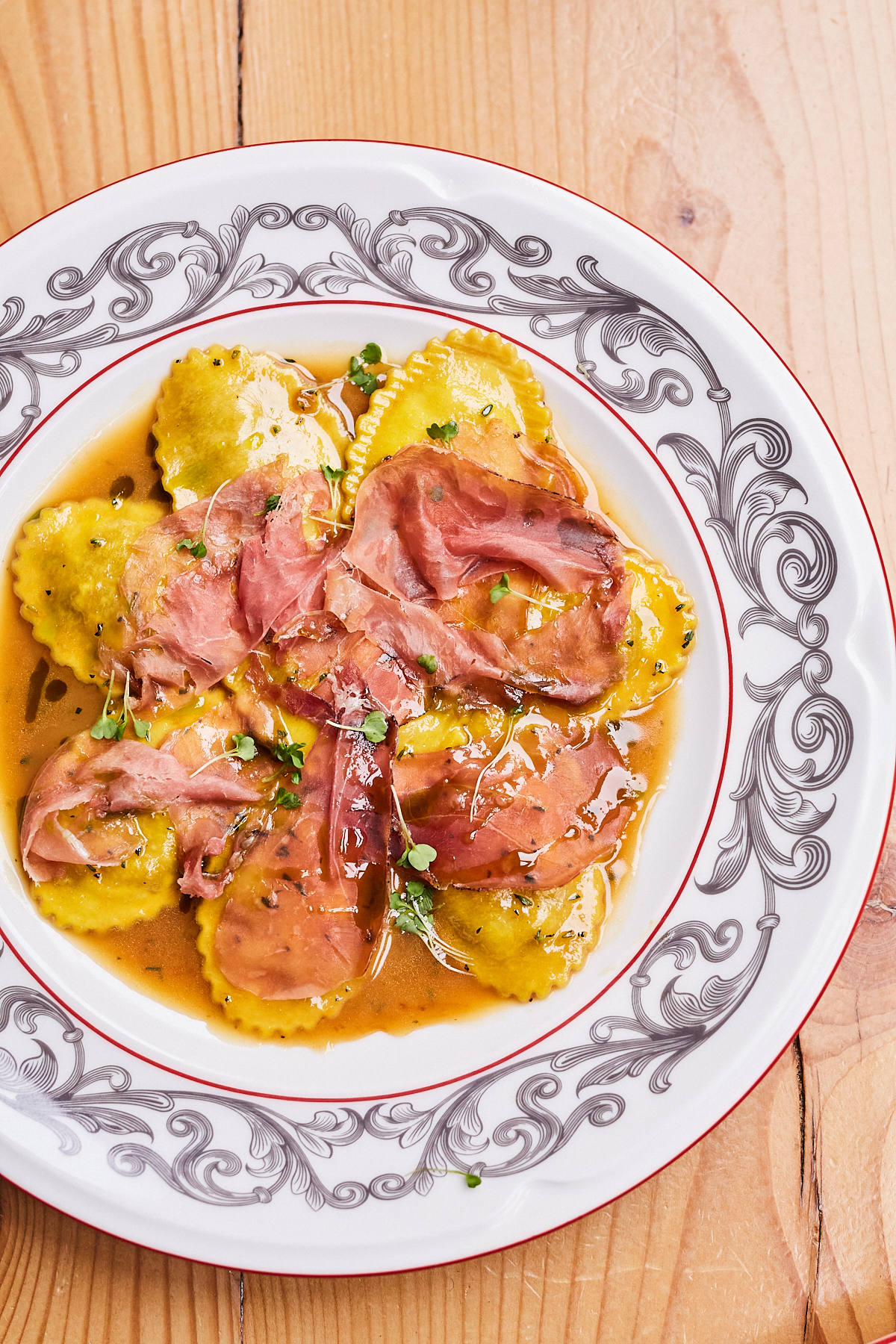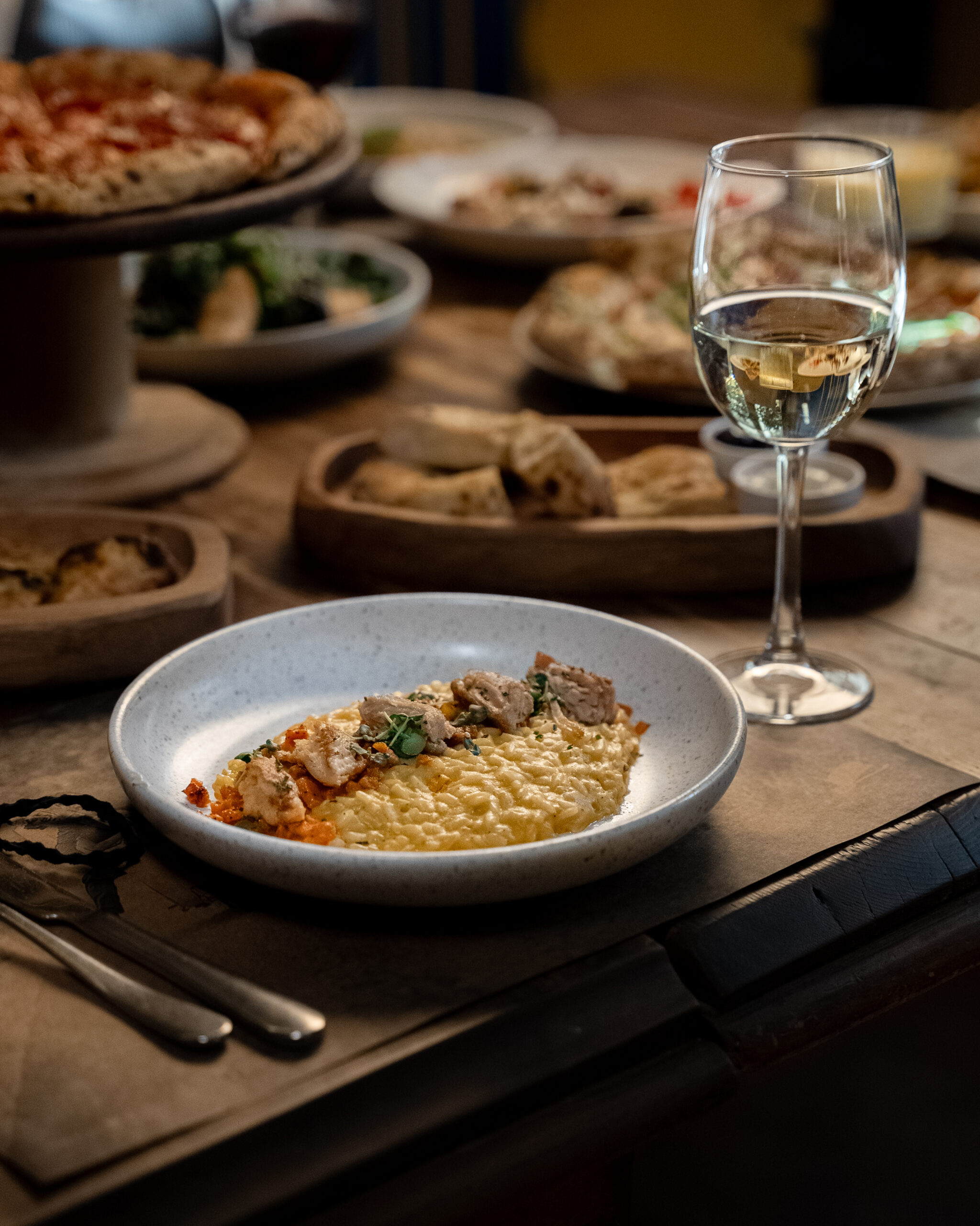 Πλούσιο και γενναιόδωρο γευστικά πιάτο, τα χειροποίητα Ravioli Cacio e Pepe. Γεμίζονται με ricotta, κρέμα από pecorino, φρέσκια μαύρη τρούφα και κρασί marsala. «Πολυτελή» υλικά χρησιμοποιούνται και στα Linguine Frutti di mare με γαρίδες μύδια και αυγοτάραχο. Από τα πιο πετυχημένα ορεκτικά του μαγαζιού είναι τα arancini με θαλασσινά. Αrancini θα πει πορτοκαλάκια στα ιταλικά και είναι γεμιστές κροκέτες από ρύζι παναρισμένες και τηγανισμένες. Παίρνουν το όνομά τους από το σχήμα και το χρυσαφένιο τους χρώμα που θυμίζουν πορτοκάλια. Πριν γίνουν ιταλική σπεσιαλιτέ διεθνούς φήμης, ήταν φαγητό της φτωχικής ιταλικής κουζίνας, φαγητό περισσευμάτων. Φτιάχνονταν με το ριζότο που περίσσεψε και γεμίζονταν με ό,τι υπήρχε στο σπίτι -από ένα κομματάκι λιαστή ντομάτα, λίγο αλλαντικό, λίγο τυρί, κλπ.