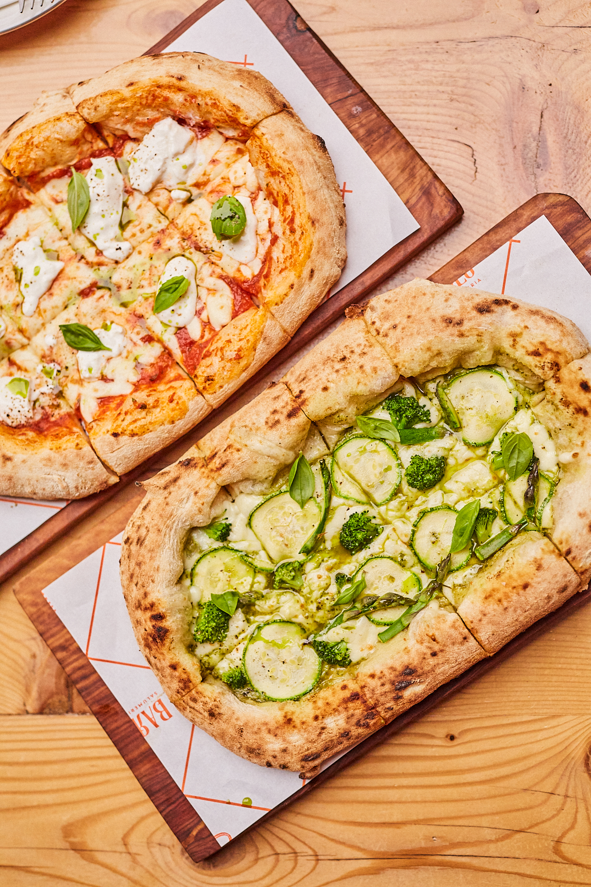 Σήμερα, οι σεφ τα γεμίζουν με τα πιο απίθανα υλικά, απλά ή πολυτελή, και ο κόσμος τα λατρεύει. Εδώ, η γέμιση είναι γαρίδες σε bisque, μοτσαρέλα, μυρωδικά και σχοινόπρασο. Το πανάρισμα και το τηγάνισμα είναι εξαιρετικά και το αποτέλεσμα είναι μια μπουκιά άκρως γευστική και ορεκτική. Ρουστίκ πιάτο με φιλοδοξίες άλωσης του ουρανίσκου, η σιγομαγειρεμένη μοσχαρίσια ουρά με κριθαράκι ολικής άλεσης, ξηρό ανθότυρο και σχοινόπρασο. Κάποια άλλη φορά, θα δοκιμάσουμε τα κρεατικά της ώρας (tagliata από μοσχάρι angus με, σάλτσα bearnaise, New york strip steak με γλάσο σόγιας και πολέντα, pancetta με πουρέ κουνουπίδι, τηγανητό λάχανο και σάλτσα χοίρου). Από τις πίτσες, επιλέξαμε την κλασική Pizza Caprese με φρέσκια μοτσαρέλα bufala, ντοματίνια, πέστο βασιλικού. Μια σούπερ πίτσα με όλα τα υλικά φρέσκα και ζωντανά, καλοψημένη με λεπτή κρούστα που, για κάποιους pizza -maniac, αξίζει να είναι ο κύριος λόγος για να έρθουν στο όμορφο μαγαζί. Φθάνοντας στα επιδόρπια, μπορεί το tiramisu στο ποτήρι να έχει περγαμηνές με ιταλικά χρώματα, εμείς όμως προτιμάμε τη φίνα creme brulee mango με αρώματα βανίλιας που συνοδεύεται με παγωτό mangο.