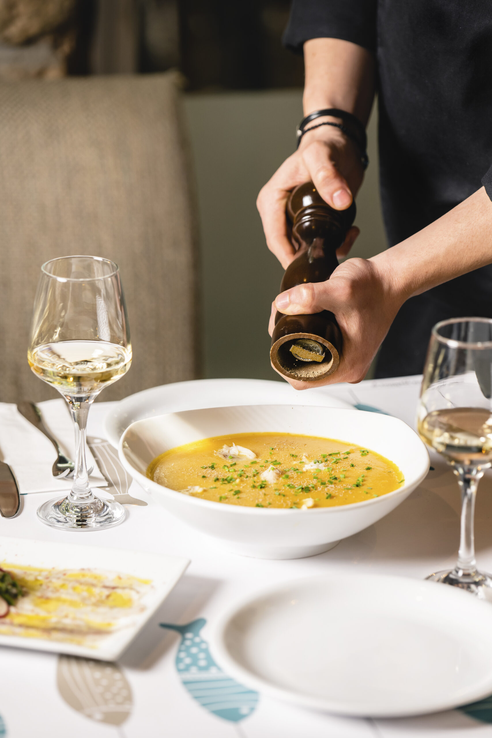 Κοσμοπολίτικο και καλοβαλμένο μαγαζί, ένα από τα λίγα της περιοχής, με ωραίο κόσμο, στέκι για να δεις και να σε δουν, και μια από καλύτερες ιδέες για all day hang out στα βόρεια προάστια, μέσα στο καλοκαίρι. Ανοιχτόκαρδο, πολύχρωμο, με ωραίο δροσερό κήπο (όπου το βράδυ δεν πέφτει καρφίτσα) και ωραίες μουσικές, έχει κάτι για όλους οποιαδήποτε ώρα της ημέρας -πρωινό, brunch, μεσημεριανό, δείπνο. Το περιβάλλον, αεράτο και φρέσκο, υποδέχτηκε το φετινό καλοκαίρι με ολοκαίνουργιο ενδιαφέρον μενού σε consulting του γνωστού, έμπειρου chef Δημήτρη Κοντόπουλου (chef de cuisine o Χρήστος Κάρολος) που δοκιμάσαμε πριν λίγο καιρό σε μια Wine & Dine βραδιά με επιλεγμένα πιάτα σε pairing με τα εκλεκτά κρασιά του οινοποιείου Alpha Estate. Το δείπνο ξεκίνησε με μια ολόφρεσκη σαλάτα με καβούρι, τοματίνια, πεπόνι και oro bianco vinaigrette που συνοδεύτηκε με τη νέα Μαλαγουζιά του Οικοσυστήματος του Κτήματος Άλφα «Λατύπες». Η συγκεκριμένη Μαλαγουζιά κυκλοφορεί σε μικρό αριθμό φιαλών και παλαιώνει για 9 μήνες σε μεγάλα βαρέλια 75hl από γαλλική δρυ και ρόμπολο.