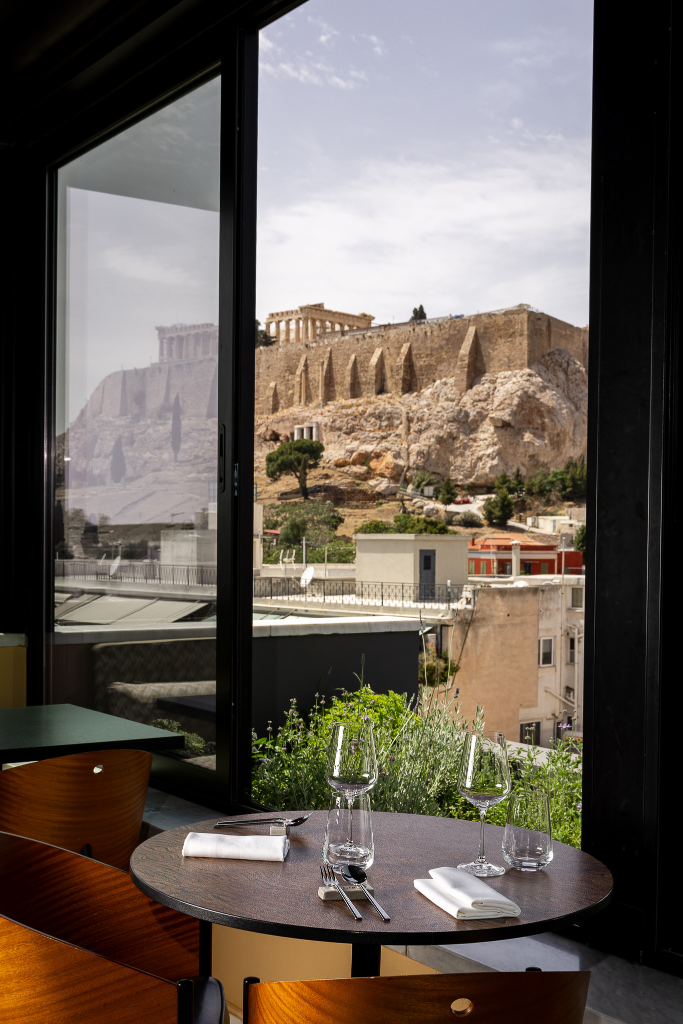 Καθώς το εστιατόριο από τον 7ο όροφο αντικρίζει σε απόσταση αναπνοής τον Παρθενώνα, την Πλάκα και όλο το αθηναϊκό κέντρο, το γεύμα αναδεικνύεται σε μια τελετουργία μύησης του σύγχρονου επισκέπτη στο συνεχές της ελληνικότητας μέσα από τη γευστική «ελευσίνια» διαδρομή. Προσφέρονται δύο μενού γευσιγνωσίας. Το μενού «Μύησις» με 11 στάδια και το μενού «Εποπτεία» με 11 στάδια επίσης, που είναι vegetarian. Επιλέγοντας το μενού «Μύησις», θα ξεκινήσετε με την «Ατραπό» δηλαδή ντοματοκεφτέδες γεμιστούς με φέτα, κρέμα δυόσμου και κράκερ ντομάτας -το ελληνικό καλοκαίρι μεταφρασμένο σε υπέροχη γεύση και θα συνεχίσετε με το «Γη μήτηρ»: σπανακοπιτάκι με ζωντανό το σπανάκι τυλιγμένο σε λεπτή βάφλα από σπανάκι και από πάνω κρέμα φέτας.