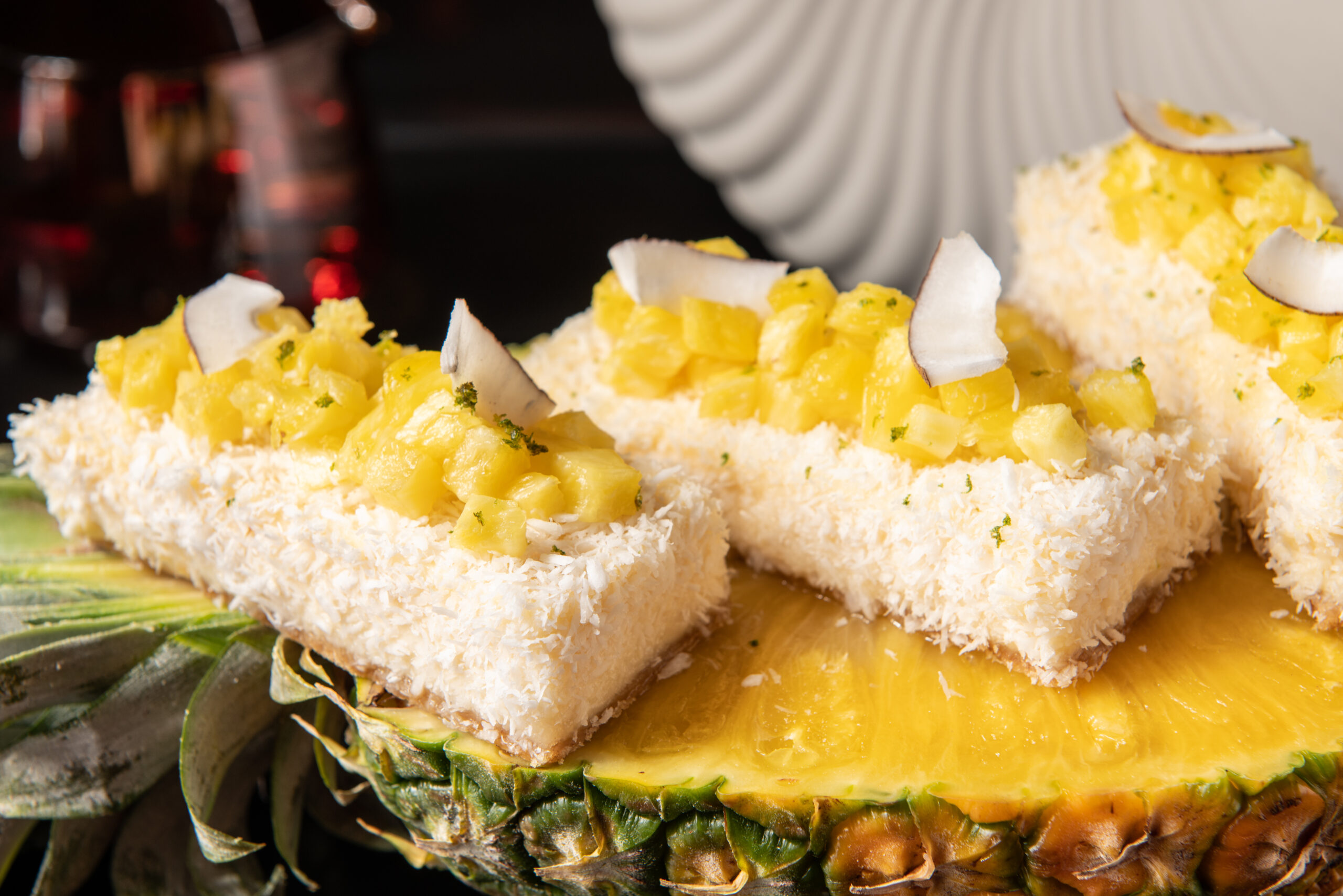 Έτσι, εδώ, η τάρτα Mai Tai φτιάχνεται με μπισκότο βανίλιας, κρέμα μοσχολέμονου, μαρέγκα από πικραμύγδαλο και αρώματα περγαμόντου, το Zombie προφιτερόλ περιέχει αφράτα σουδάκια, γεμιστά με κρέμα αρωματισμένη με παλαιωμένο ρούμι, λευκή σοκολάτα, γλάσο ροδιού, μαρμελάδα γκρέιπφρουτ και ανανά και το cheesecake Piña Colada έχει κρέμα που ψήνεται με καρύδα, τραγανή βάση μπισκότου κι από πάνω στολίζεται με κομματάκια ανανά.