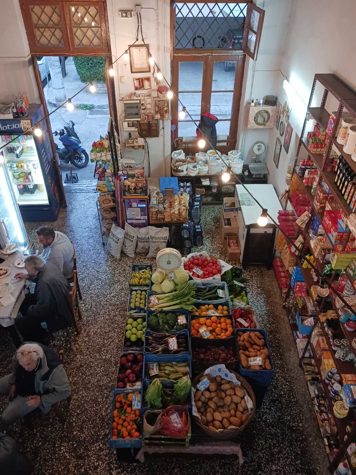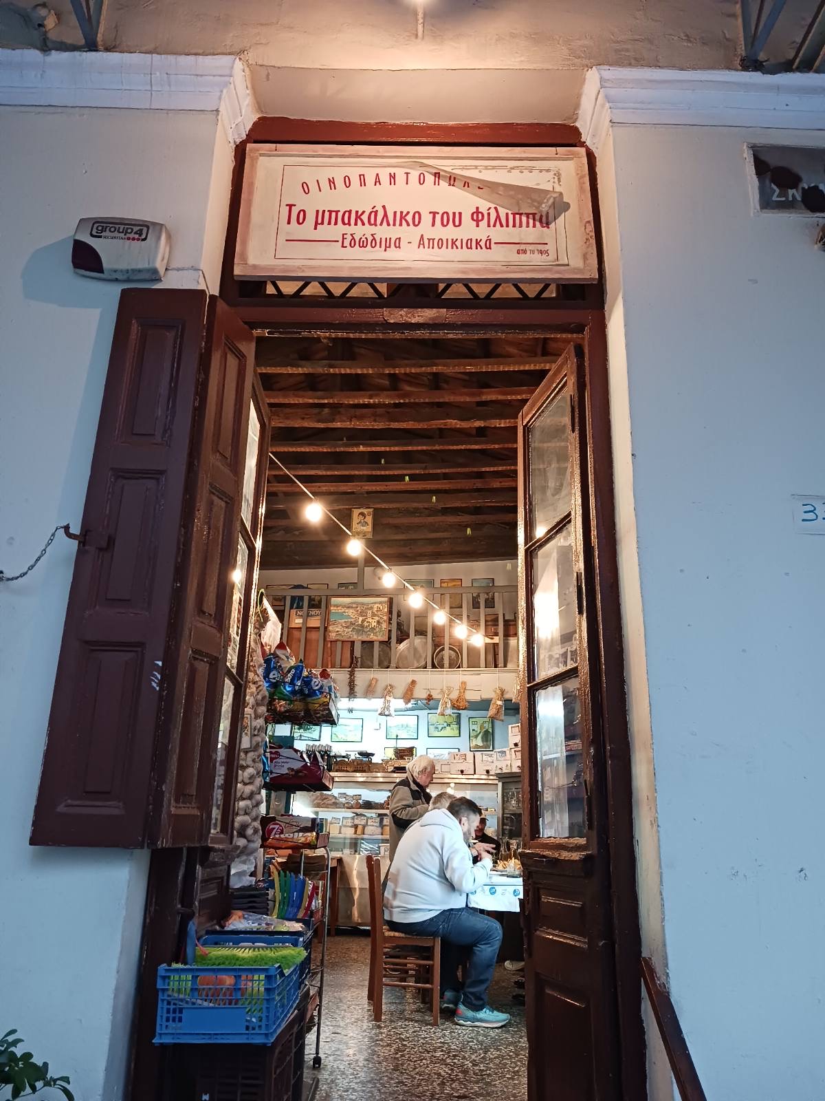 Το μαγαζί το τρέχει ένας πολύ συμπαθητικός άντρας, ο Φίλιππος, που πήρε τη σκυτάλη από τον πατέρα του, όταν εκείνος μετά από ένα σοβαρό πρόβλημα υγείας δεν μπορούσε να συνεχίσει. «Το νιώθω το μπακάλικο σαν φυσικό πρόσωπο. Δεν θα άντεχα να το δω να περνάει σε άλλα χέρια. Εδώ, μέσα μεγάλωσα, είναι όλες μου οι μνήμες». Από μικρός, με τον πατέρα του, είχε την τύχη να γνωρίσει όλους τους προμηθευτές αλλά και πώς να διαλέγει φρέσκα προϊόντα. Έτσι, ο Φίλιππος δίνει όλο το βάρος στην πρώτη ύλη. Το νιώθει πιο πολύ μπακάλικο παρά ταβέρνα. «Φέρνω πατάτες από Τρίπολη, ντομάτες από τη Νάξο, τυριά από την Αμφιλοχία και όλη την Ελλάδα. Για μένα έχει σημασία η άριστη ποιότητα. Πώς να φας ωραία πατάτα τηγανιτή αν δεν είναι καλή η πατάτα. Όσο καλά και να την τηγανίσω, δεν θα έχει την ίδια καλή γεύση με μια εξαιρετική». Στο μαγαζί του βρίσκω τις χαμένες γεύσεις της παιδικής μου ηλικίας. Τους νόστιμους κεφτέδες, τη χοιρινή τηγάνια, τις νόστιμες ομελέτες μαζί με πατάτες τηγανητές και τα τυριά που τα κόβει εκείνη την ώρα.