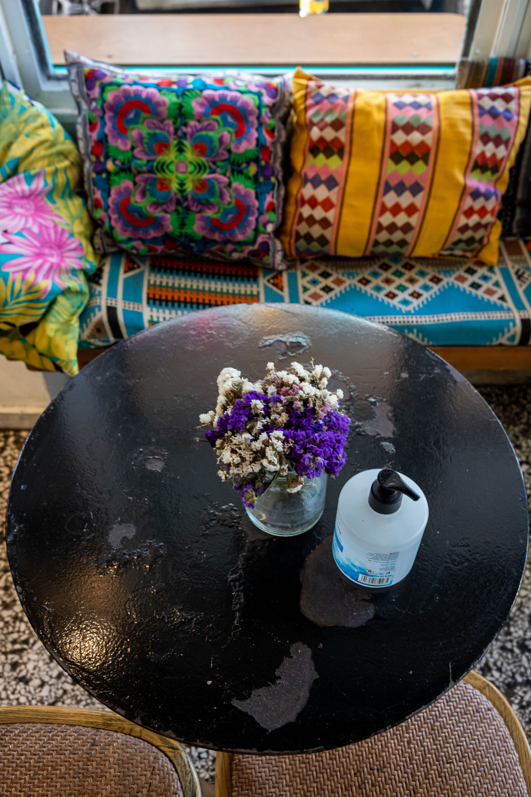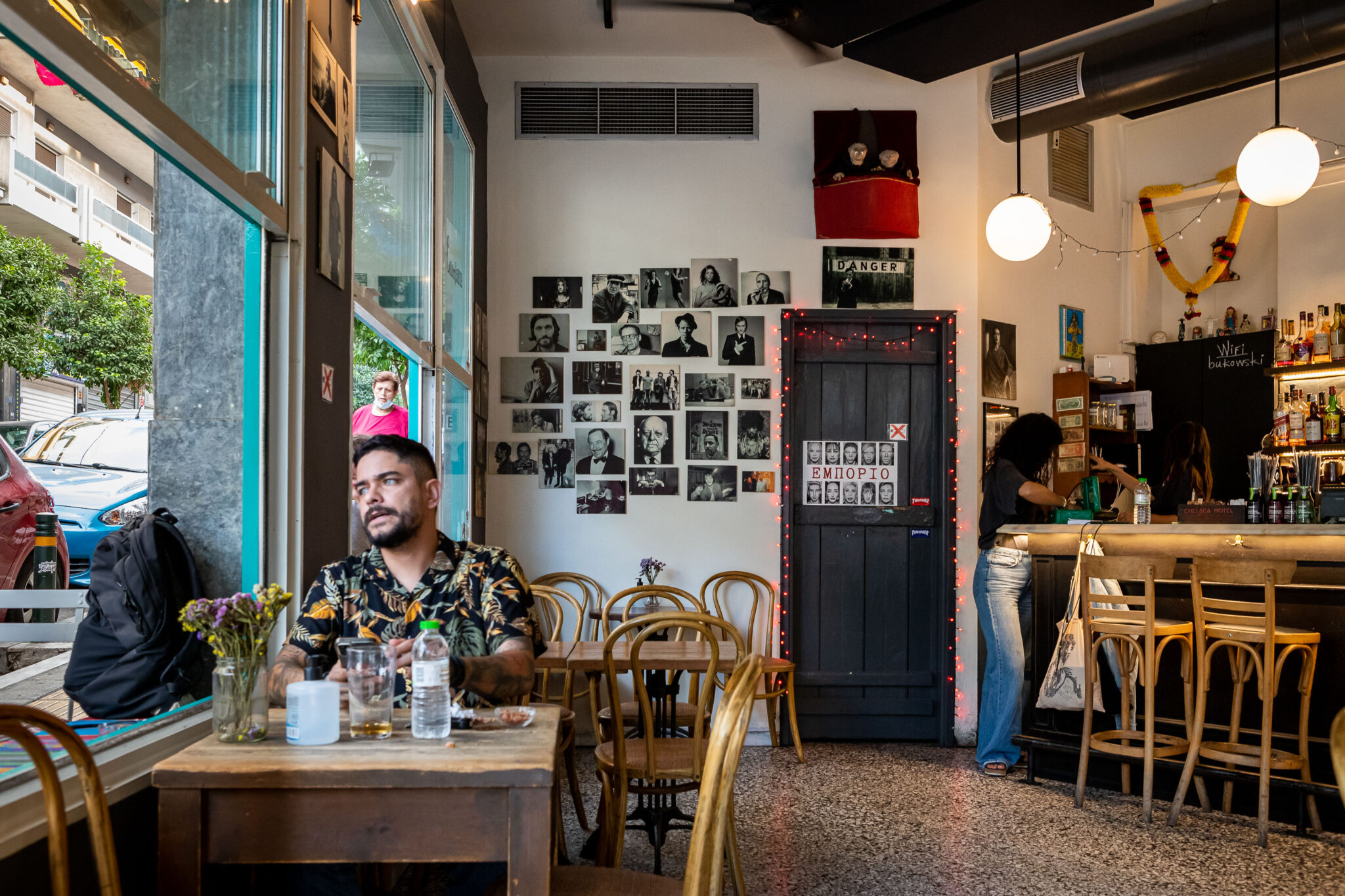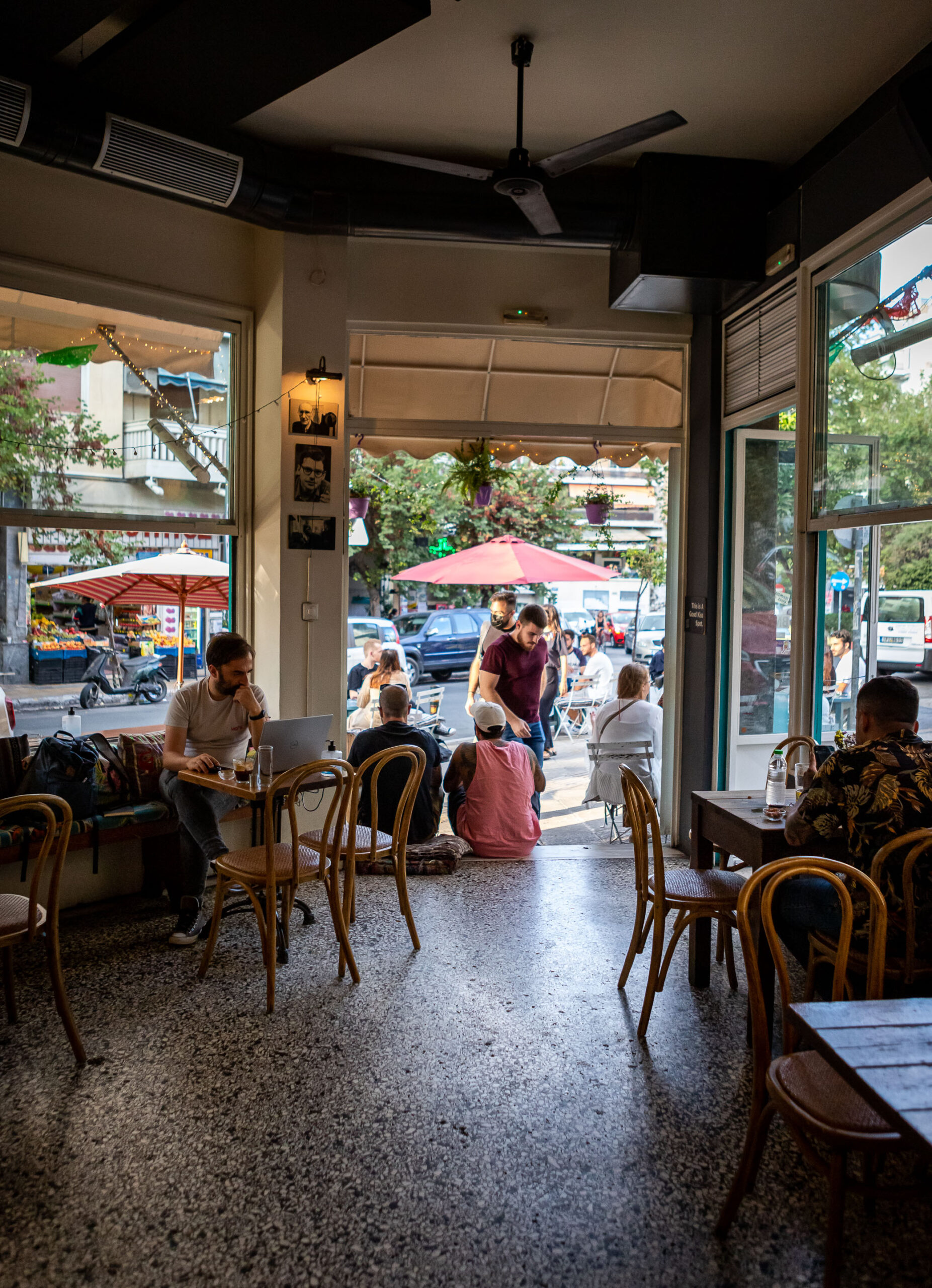 «Εγώ, ταξίδευα πολύ» αναφέρει η Εύα «και ήθελα το μαγαζί να θυμίζει λίγο Βερολίνο, Αργεντινή, Μεξικό. Φέραμε διάφορους αρχιτέκτονες οι οποίοι όμως μας πρότειναν κάτι πιο στημένο από αυτό που θέλαμε. Οπότε αποφασίσαμε να το φτιάξουμε μόνοι μας για να βγει πιο αυθεντικό. Στην αρχή το διακοσμήσαμε με πράγματα που φέραμε από τα σπίτια μας: ριχτάρια, καναπέδες, καρέκλες. Την ημέρα που ανοίξαμε δεν είχαμε άλλα λεφτά, το φτιάχναμε για εφτά μήνες μέχρι που μείναμε. Είχαμε δουλέψει νύχτα και οι δύο αλλά δεν είχαμε ιδέα από διακόσμηση. Και το κάναμε ψάχνοντας όλη μέρα στο ίντερνετ και γυρνώντας σε όλα τα ωραία μαγαζιά που είχαν επιβιώσει από την κρίση, για να πάρουμε ιδέες». Η μεγαλύτερη πηγή έμπνευσης ήταν το Colibri και το Τρίγωνο. Τότε όλα τα παιδιά που εργάζονταν στο Colibri προέρχονταν από κοινότητες απεξάρτησης από τα ναρκωτικά, οπότε στο μαγαζί επικρατούσε ένα ξεχωριστό κλίμα για τα αθηναϊκά δεδομένα. «Θέλαμε να φτιάξουμε ένα μαγαζί όπου θα μπορούσες να έρθεις με τη φόρμα σου και να συνυπάρξεις με την καλοντυμένη κυρία από τα Βόρεια Προάστεια. Ένα mix and match στο Παγκράτι όπου θέλαμε να σερβίρουμε δέκα καφέδες και δύο μπύρες που να πίνουν τα δύο άτομα μετά το Colibri. Δεν το πίστευε κανείς ότι μπορούσε να στηθεί μαγαζί εκεί. Μας έλεγαν “παιδιά θα καταστραφείτε” Ανοίξαμε τέλη Ιουλίου χωρίς σόσιαλ στόμα με στόμα. Ανοίξαμε στις οκτώ. Οκτώ και πέντε είχε τα πρώτα δύο άτομα. Την ίδια μέρα είχαμε κόσμο μέχρι τις εφτά το πρωί. Και δεν φωνάξαμε κανένα φίλο μας» καταλήγει η Εύα.