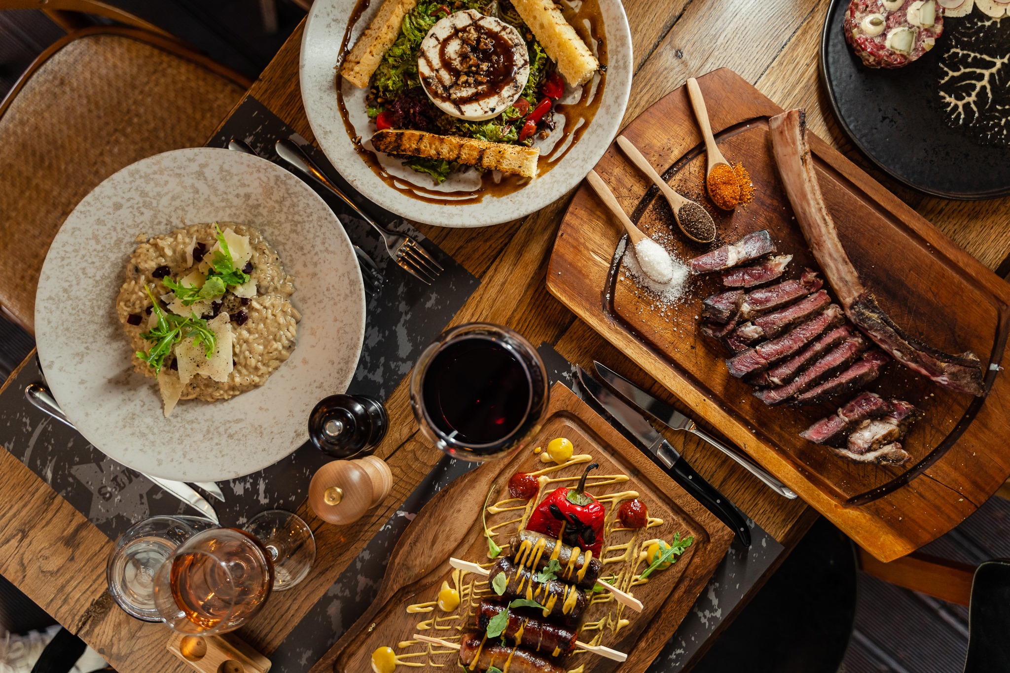 Στη Λεωφόρο Μαραθώνος, η δημοσιογράφος Χριστίνα Λαμπίρη και ο σύζυγός της, Θανάσης Αδαμόπουλος, δημιούργησαν ένα steakhouse με ταυτότητα. Το Meet the Stars κινείται στον χώρο της premium κρεατοφαγίας, διατηρώντας παράλληλα την οικειότητα της ελληνικής φιλοξενίας. Με το που περνάς την είσοδο, το βλέμμα σταματά στο εντυπωσιακό ψυγείο ωρίμασης που δεσπόζει στη σάλα, γεμάτο επιλεγμένες κοπές που περιμένουν να φτάσουν στο πιάτο σας. Το μενού περιλαμβάνει Tomahawk, T-bone και άλλες απαιτητικές κοπές, ψημένες με ακρίβεια. Εκεί όπου το εστιατόριο διαφοροποιείται είναι στη λεπτομέρεια. Γραφήματα και επεξηγήσεις αποτυπώνουν την προέλευση κάθε κοπής και τον ιδανικό τρόπο ψησίματος, μετατρέποντας την εμπειρία σε μια σύντομη αλλά ουσιαστική εισαγωγή στον κόσμο του κρέατος. Και όταν ολοκληρωθεί το κυρίως μέρος, το σουφλέ σοκολάτας έρχεται να κλείσει τη βραδιά ιδανικά.