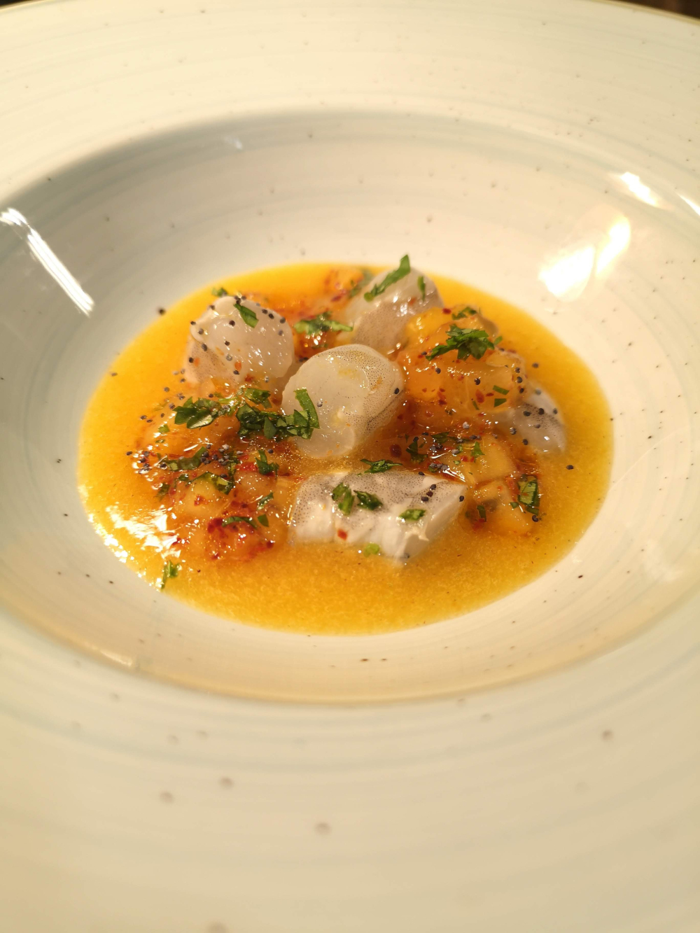Μετά το τέλος του γεύματος η συζήτηση περιστρέφεται γύρω από την μέχρι τώρα πορεία του. «Κάπως τυχαία θα πω ότι έγιναν όλα. Πήρα μέρος σε ένα διαγωνισμό της Tate Modern, όπου θα έπρεπε να μαγειρέψουμε με θέμα το ψάρι. Το πιάτο που θα κέρδιζε, θα έμπαινε στο μενού του εστιατορίου». Όπως μας λέει, έφτιαξε μπαρμπούνι, με σιρόπι ούζου, φινόκιο και παξιμάδι με αγιολί και ελιές καλαμών. Κέρδισε. Το πιάτο ωστόσο δεν μπήκε ποτέ στο μενού. Λίγο τον ένοιαξε, καθώς του ήταν αρκετό ότι μπήκε στην επαγγελματική κουζίνα. «Φόρεσα τη στολή, κράτησα σούπερ μαχαίρι και ήμουν ανάμεσα στους επαγγελματίες σεφ. Ένιωσα περίπου όπως όταν πήρα άριστα στο μάστερ. Από τότε σκεφτόμουν πώς θα καταφέρω να μπω στο χώρο».