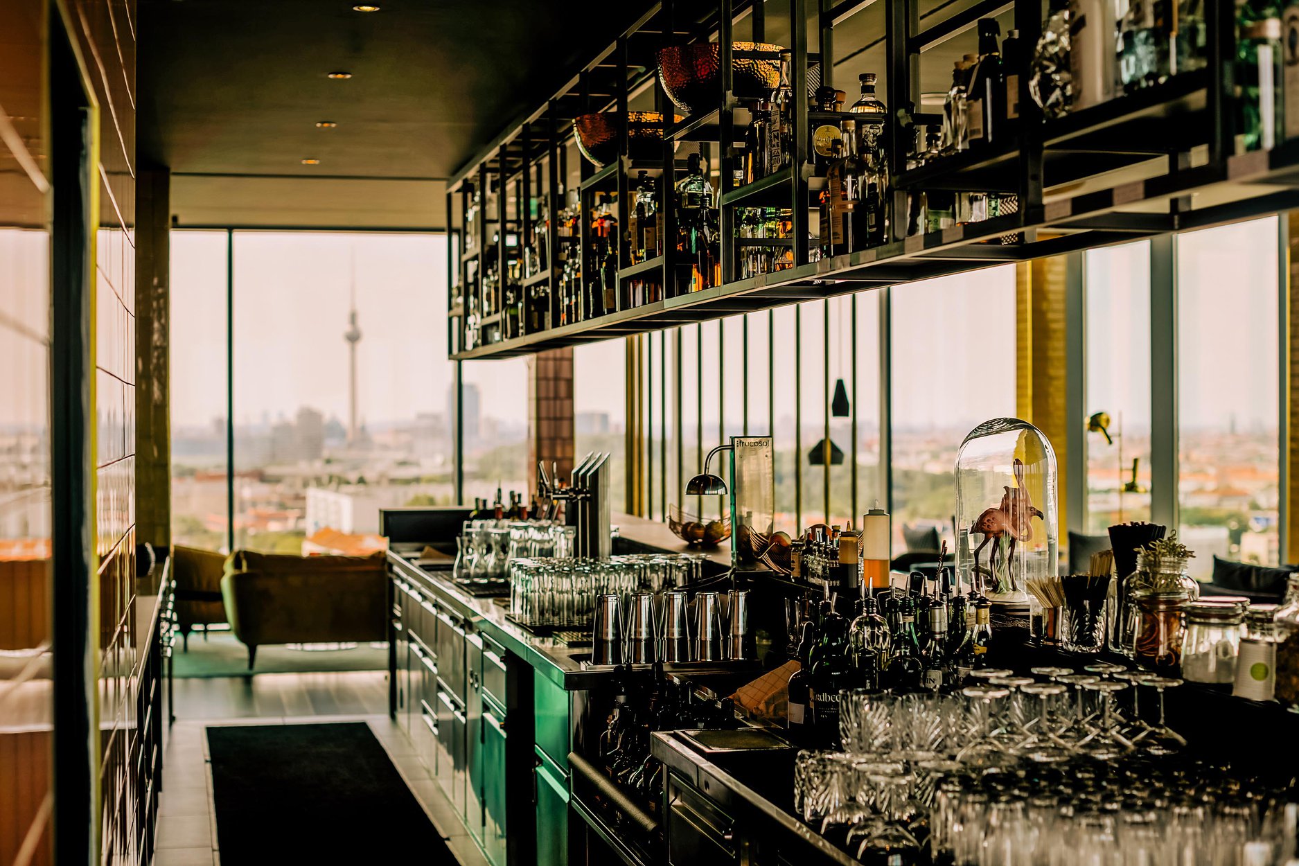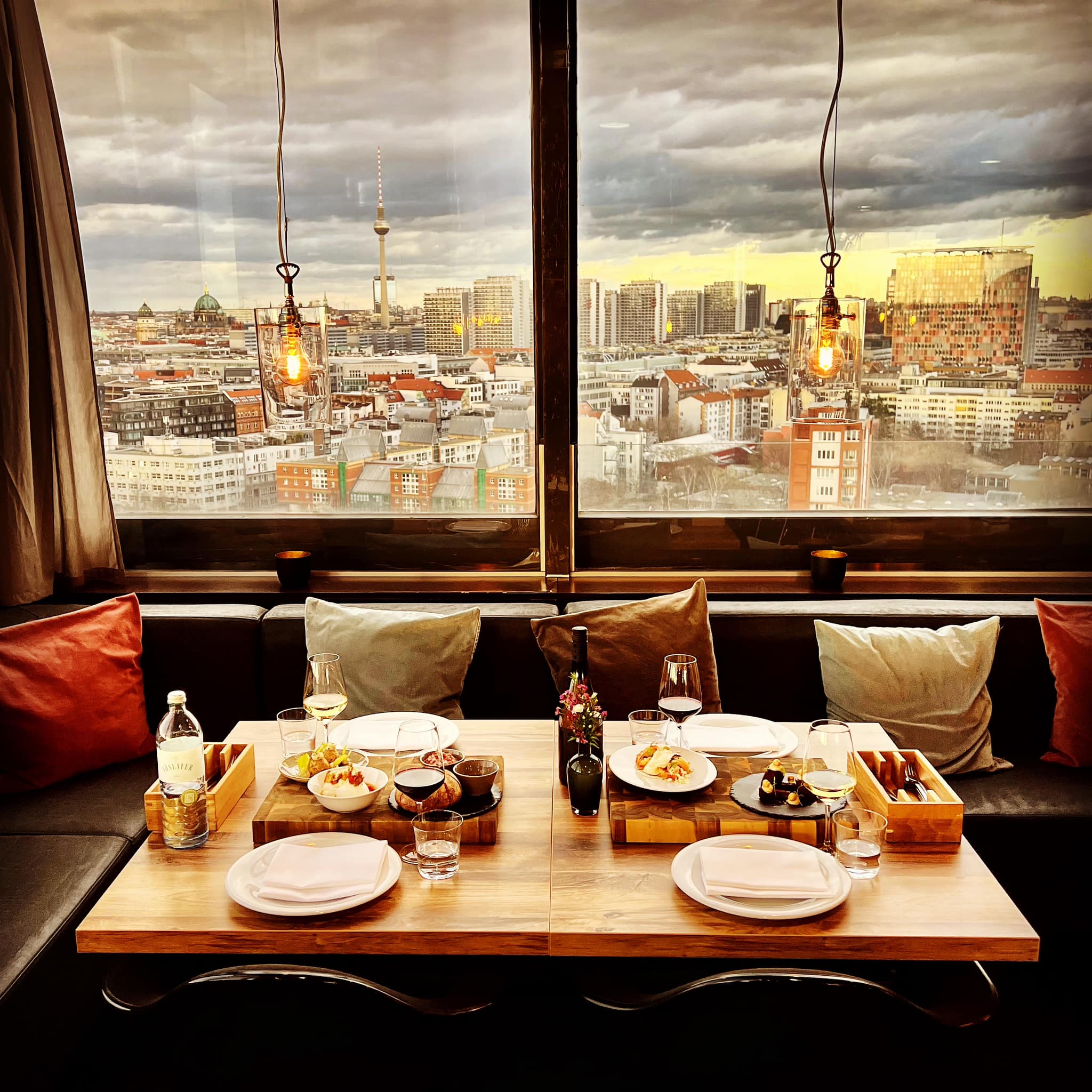 Στη θέση τους σήμερα, το Solar δείχνει σέξι, πολυτελές και εκλεκτικό, με σκούρους τόνους, μίνιμαλ αισθητική και δερμάτινα καθίσματα γύρω από τον κυκλικό χώρο όπου οι DJs συχνά μετατρέπουν το Solar σε club. Μόλις έναν όροφο πιο κάτω, στο ακόμη πιο κομψό και στιλάτο εστιατόριο που μοιράζεται την ίδια συναρπαστική θέα, από τα 70 μέτρα αυτή τη φορά, ο chef Jon Kremin παρουσιάζει ένα δημιουργικό μενού διεθνών γεύσεων, ταιριασμένων με τα ανάλογα κρασιά. Απολαύστε το δείπνο με την ησυχία σας πριν ανεβείτε στο Solar Sky Bar – εξάλλου είναι πολλοί αυτοί που δεν αφήνουν το λαμπερό χώρο του πριν δουν το ξημέρωμα στον ορίζοντα της γερμανικής πρωτεύουσας.