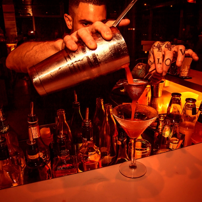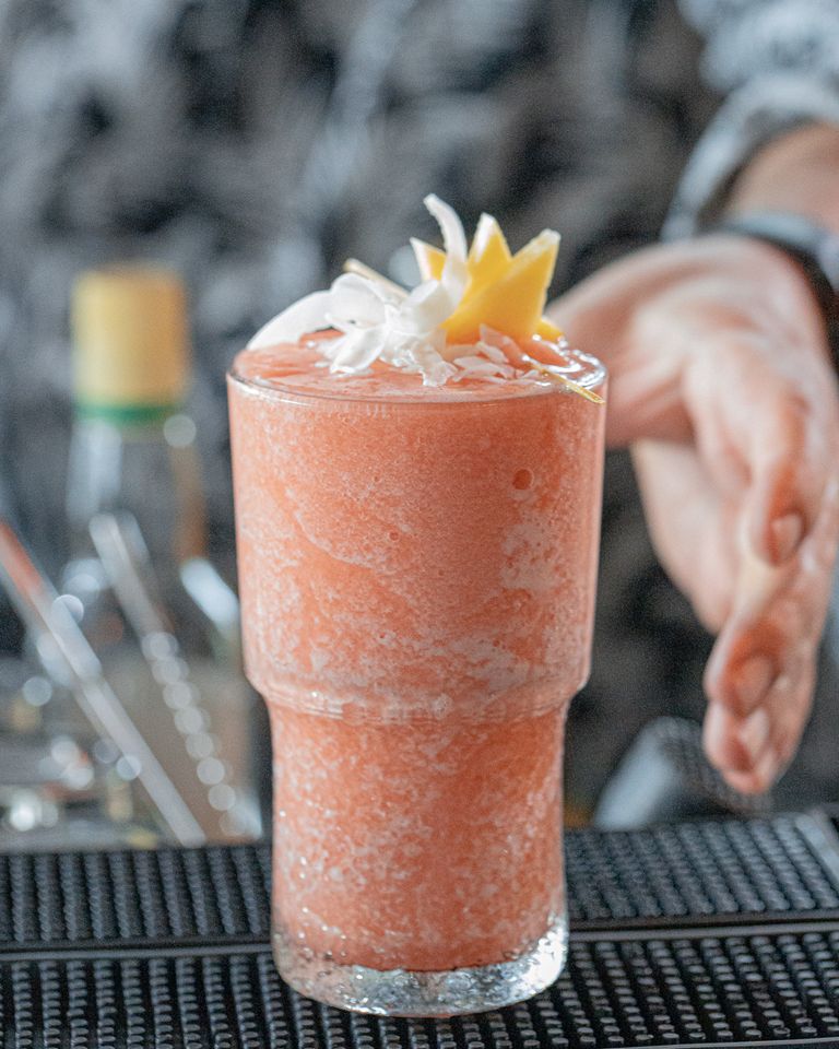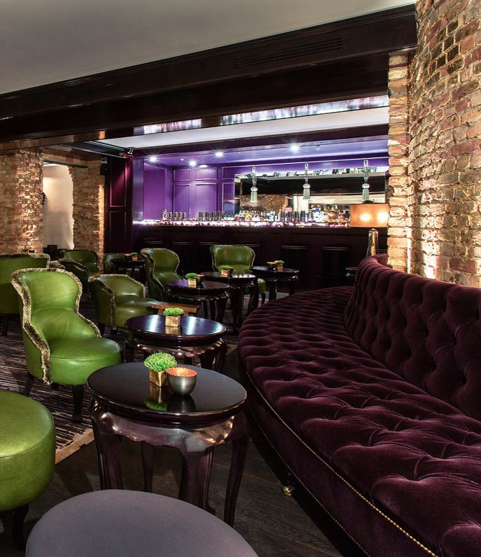 Τα εξαιρετικά cocktail φτιάχνονται στο καλυμμένο με ξύλο βελανιδιάς και μάρμαρο μπαρ που κάνει ωραία αντίθεση με το παιχνιδιάρικο ροζ βελούδο στα σκαμπό. Οι άνετες πολυθρόνες και οι περιμετρικοί καναπέδες, επίσης από βελούδο σε όλα τα χρώματα, περιβάλλονται από μια υπέροχη τροπική ταπετσαρία που σε κάνει να ξεχνάς τη γκριζάδα της πόλης.
