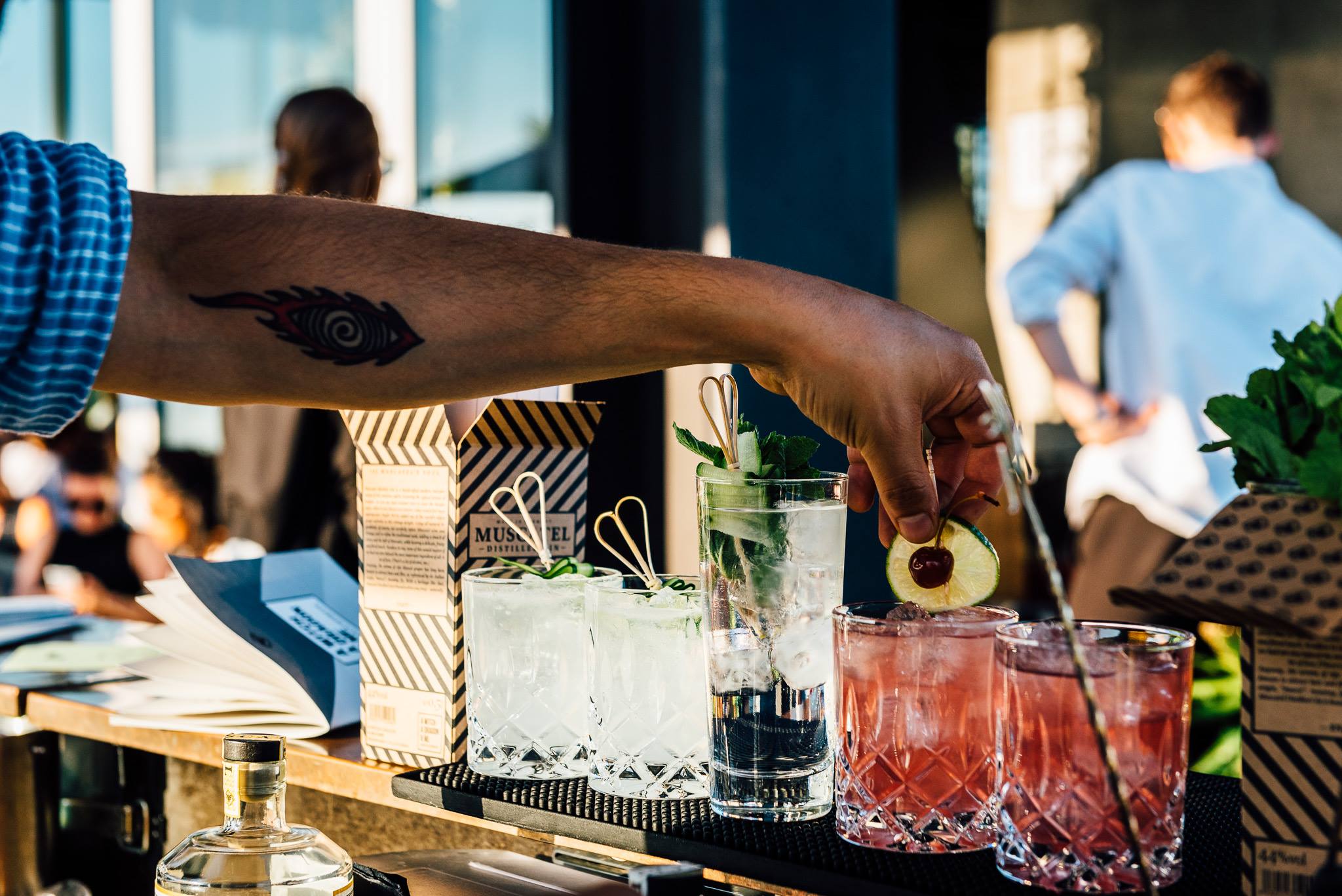 Από το απόγευμα, οι Gatsby του σήμερα πιάνουν θέση στους μεγάλους άνετους καναπέδες και τα lounge έπιπλα για να απολαύσουν το ηλιοβασίλεμα με ένα ποτήρι σαμπάνια ή κάποιο από τα κλασσικά cocktails που κυρίως αντλούν έμπνευση από την εποχή 1920-1950. Η στιλάτη ατμόσφαιρα και η μαγευτική θέα 270° είναι εγγυημένες καθημερινά, ενώ δεν λείπουν τακτικά οι βραδιές BBQ και τα πάρτι με guest διάσημους DJs κάθε Σάββατο.