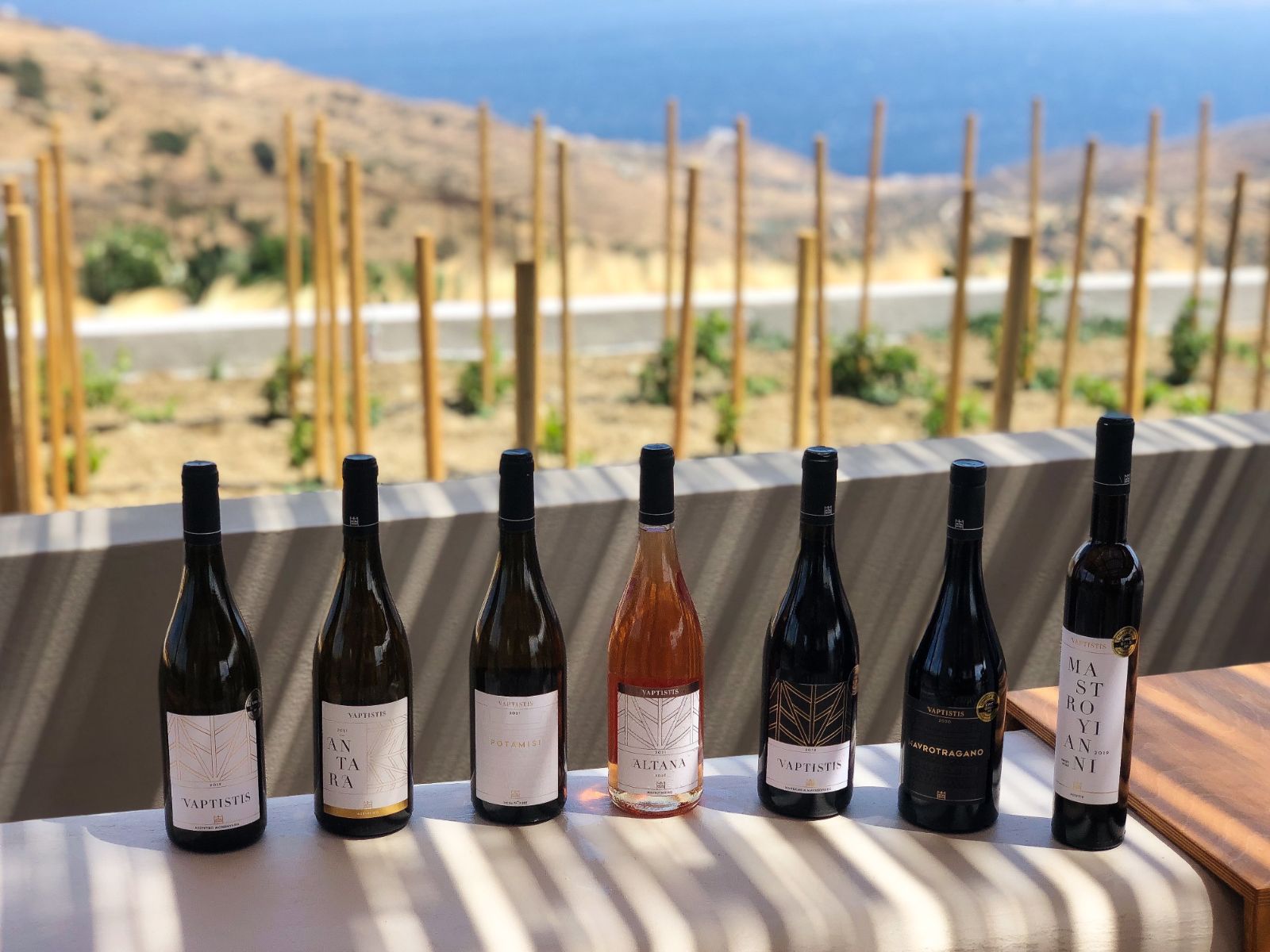 Ανάμεσα στις εξαιρετικές του ετικέτες βρίσκεται και το Potamisi, που δίνει βάση στις γηγενείς ποικιλίες του νησιού. Πρόκειται για ένα ελαφρώς τανικό και πικρό λευκό κρασί με βοτανικά στοιχεία και αρώματα τροπικών φρούτων, στην ωρίμανση του οποίου, πέρα από δεξαμενή, χρησιμοποιείται και αμφορέας, που του προσφέρει χαρακτηριστικά αλλά όχι αρώματα βαρελιού. Αξιόλογο και το ροζέ κρασί Altana που παράγεται από επεξεργασία του κόκκινου σταφυλιού Μαυροθήρικο ή Μαυροθήλυκο, όπως αλλιώς λέγεται. Η πλούσια αρωματική μύτη φρούτων και λουλουδιών και η πικάντικη, ελαφρώς λιπαρή γεύση του δημιουργούν μια όμορφη αντίθεση. Εξαίσιο, επίσης, και το γλυκό κρασί Mastroyianni από λευκό Ροδίτη. «Είναι μια ετικέτα αφιερωμένη στον πεθερό μου που δούλευε οικοδομή και τον φώναζα Μαστρογιάννη. Όταν ανοίξαμε το οινοποιείο ήρθε εδώ και δούλεψε περισσότερο από όλους» λέει χαμογελώντας ο Γιάννης. Ένα κρασί που έχει λάβει χρυσό μετάλλιο από το Decanter για τρία συνεχόμενα έτη.