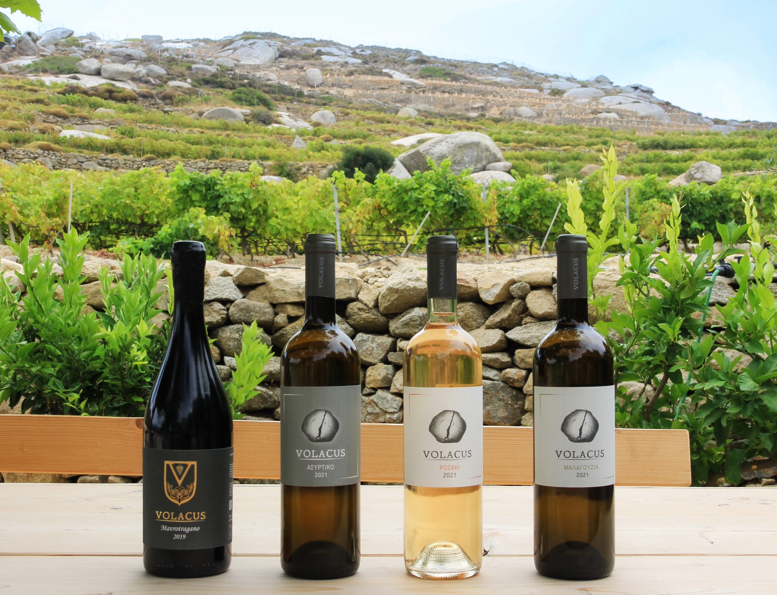 Σήμερα παράγει περίπου 12.000 φιάλες ετησίως. «Στόχος μας, σε πρώτη φάση, είναι να αυξήσουμε τις ποσότητές μας στις ήδη υπάρχουσες ετικέτες. Μετέπειτα σκοπεύουμε να ασχοληθούμε περαιτέρω με τις γηγενείς ποικιλίες, όπως το λευκό και το κόκκινο Ποταμίσι και το Κουμαριανό. Για τους λόγους αυτούς, έχουμε αγοράσει άλλα 120 στρέμματα από τα οποία σύντομα θα φυτέψουμε τα 40», λέει ο Μιχάλης. Από τις 4 ετικέτες ξεχωρίζει η Μαλαγουζιά, η πρώτη ποικιλία που εμφιάλωσε το οινοποιείο. Ένα κρασί που συνδυάζει έντεχνα το αρωματικό προφίλ της ποικιλίας και την έντονη ορυκτότητα που χαρακτηρίζει τα κυκλαδίτικα κρασιά. Στη μύτη προσφέρει πανέμορφα αρώματα, με αυτά του βερίκοκου, του γκρέιπφρουτ και της πράσινης πιπεριάς να κυριαρχούν, ενώ στο στόμα χαρίζει μια τραγανή μεταλλικότητα. Ιδιαίτερα γευστικό και το Ροζακί, μια αυτόριζη τοπική ποικιλία που προσφέρει ένα απαλού χρώματος ροζέ κρασί, με μέτριο σώμα και ελαφριά αρώματα από ροδάκινο και άσπρα άνθη. Στις τελευταίες προσθήκες του οινοποιείου, αφού κυκλοφόρησε φέτος για πρώτη χρονιά, το Μαυροτράγανο σοδειάς 2019 είναι ένα κρασί με έντονα αρώματα μαύρων φρούτων και μπαχαρικών αλλά και διακριτικά καπνιστά στοιχεία. Ωριμάζει για δύο χρόνια μέσα σε γαλλικά δρύινα βαρέλια δεύτερης χρήσης, γεγονός που συμβάλει σημαντικά στη δημιουργία του ξεκάθαρα πλούσιου χαρακτήρα του. Πρόκειται για ένα κρασί που θα περιμένουμε να δούμε την εξέλιξη του στο χρόνο, μετά από παλαίωση στη φιάλη. Από το Μάιο μέχρι τις αρχές Σεπτέμβρη, το Volacus καλεί τους φίλους του κρασιού να περιηγηθούν στους αμπελώνες του, να δούνε το παλιό πατητήρι, το αλώνι και την αγροικία και να δοκιμάσουν τα κρασιά του μέσα σε ένα πραγματικά ειδυλλιακό τοπίο.