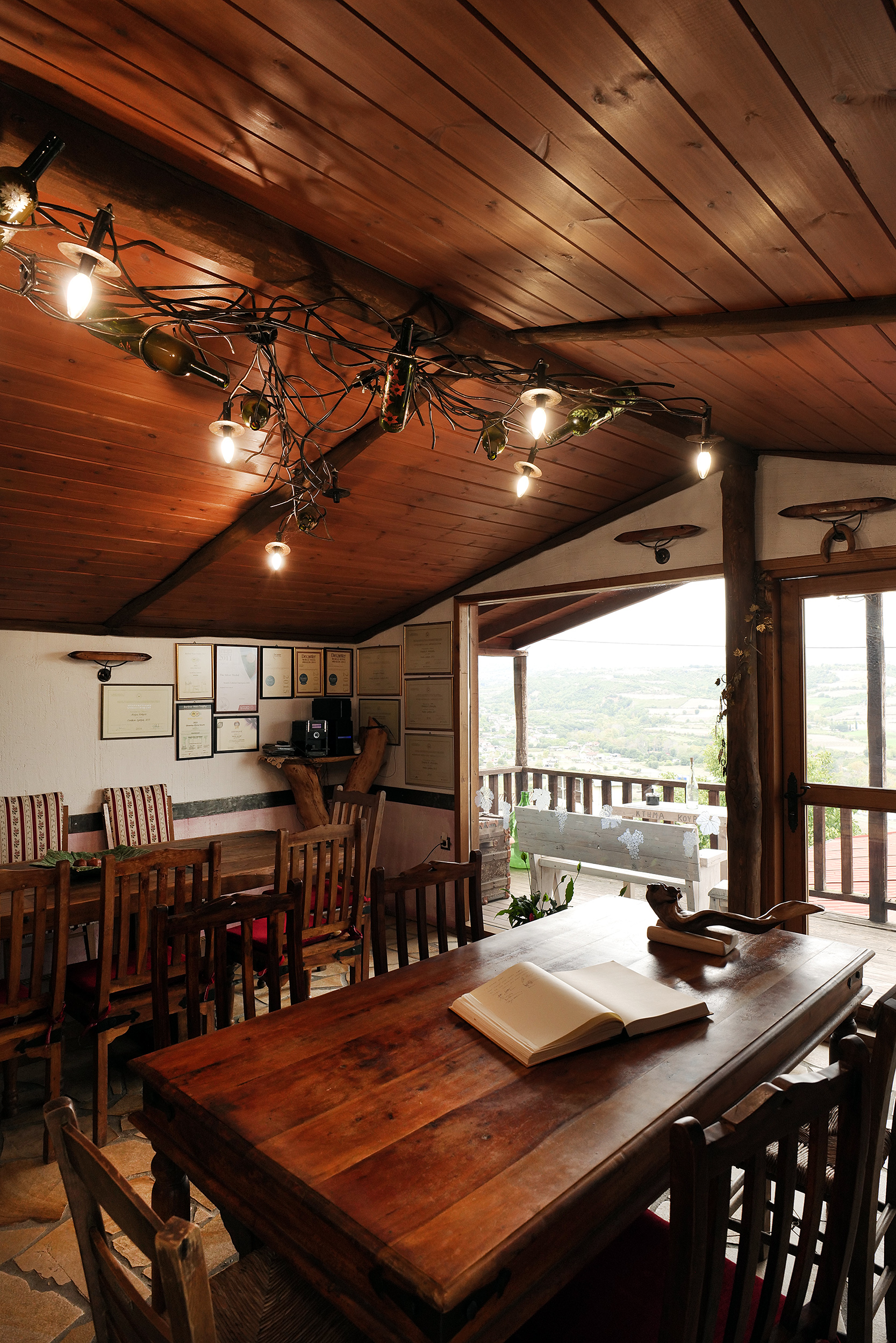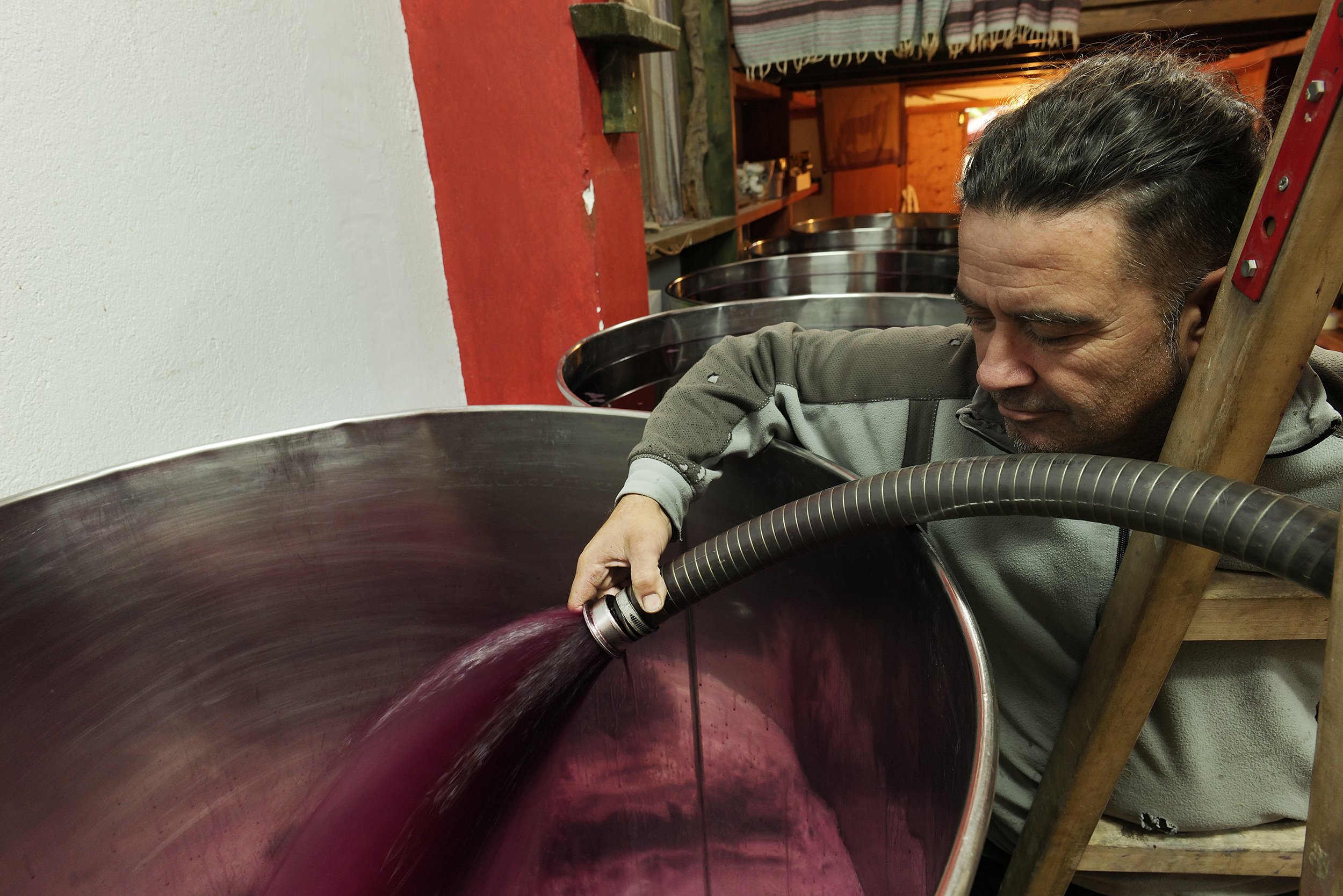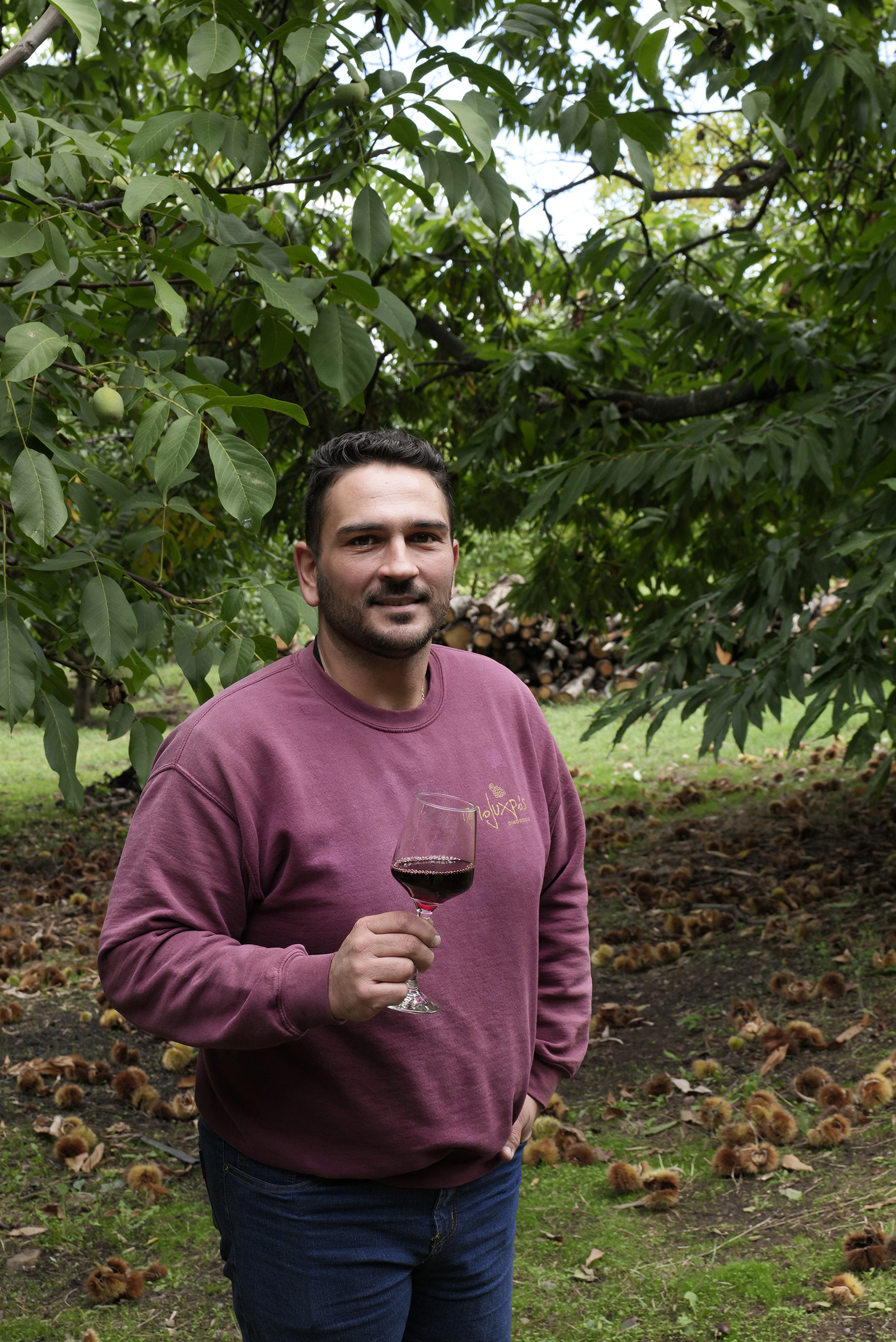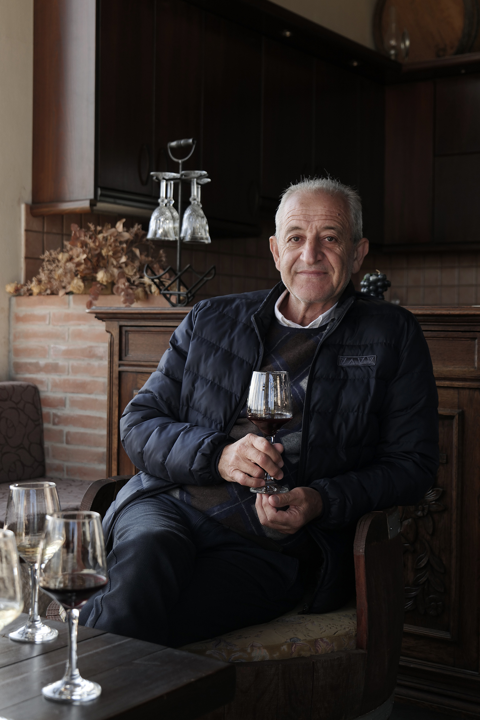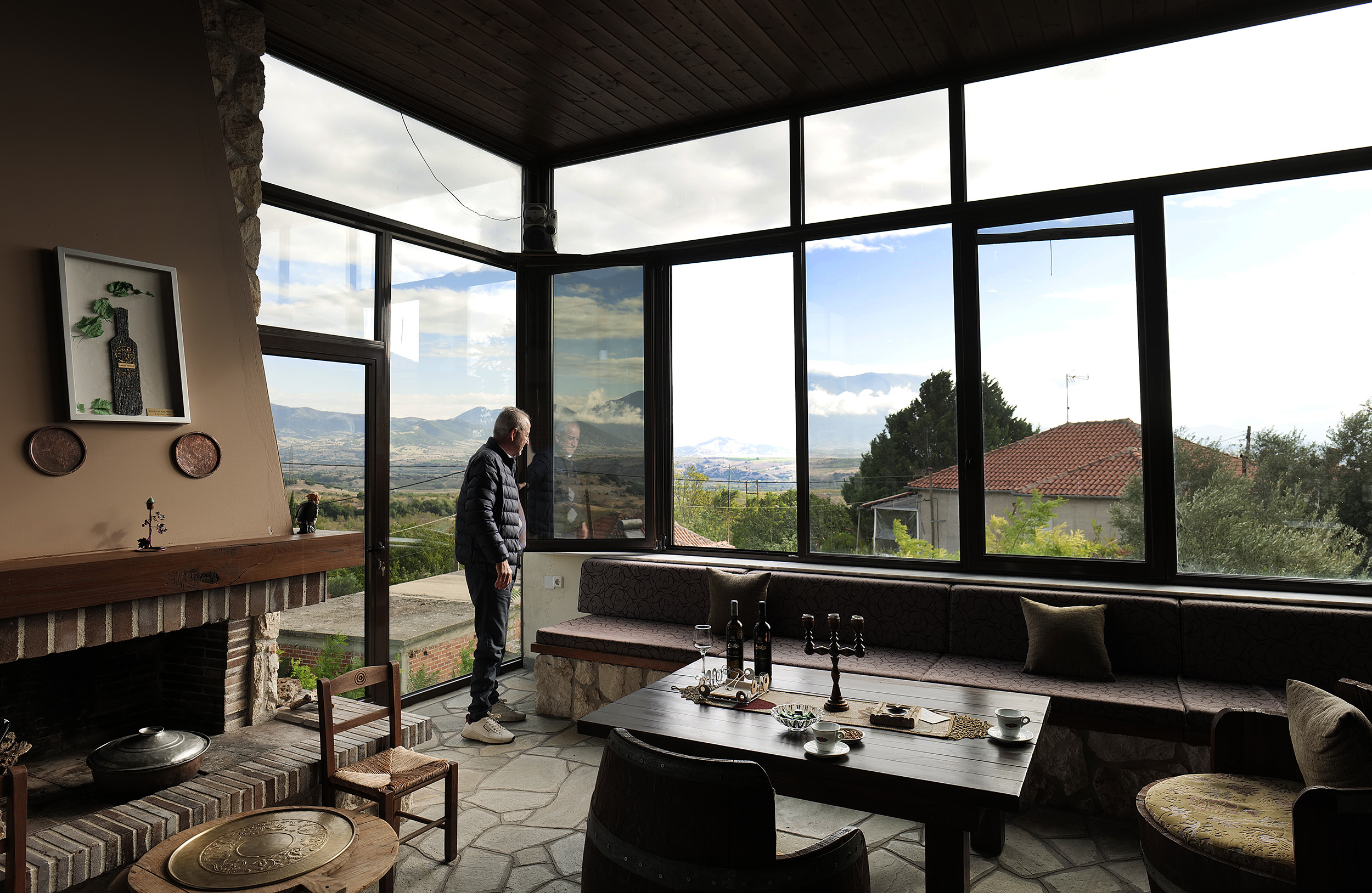 Παρότι νωρίς μέσα στην ημέρα, αμέσως μετά τις πρώτες γουλιές του ελληνικού καφέ, του ζητώ να δοκιμάσω τα κρασιά του, καθώς καθόμαστε απέναντι. Μου εξιστορεί ότι, από το 1983 μέχρι το 1990 ασχολούνταν με τις καλλιέργειες του πατέρα του, τα αμύγδαλα, τα καρύδια και λίγα σιτάρια. Έβαλε τα πρώτα αμπέλια το 1995, σε πέντε στρέμματα, δέκα διαφορετικές ποικιλίες για να δει ποια αγαπούσε περισσότερο ο τόπος, εδώ στα 700 μέτρα υψόμετρο και έδαφος αμμοπηλώδες με πέτρα πολλή. Τα πρώτα πέντε χρόνια παρατηρούσε και ενημερωνόταν διαρκώς μέχρι το 2000 όπου έκανε την κίνηση του ανοίγματος του οινοποιείου. Τα πέντε στρέμματα έγιναν πια πενήντα, με ποικιλίες merlot, cabernet, syrah και λημνιώνα να συνθέτουν τις εξαιρετικές ετικέτες του οινοποιείου, είτε ως blend είτε μονοποικιλιακά, πάντα καλλιεργώντας βιολογικά. Η θέα του βουνού στο βάθος μου αποσπά στιγμιαία την προσοχή για να με επαναφέρει ο Σάκης στην ιστορία του με ένα τσούγκρισμα των ποτηριών όπου πίνουμε τον ερυθρό «Ευβίοτο». Ο Σάκης Μηνάς σπούδασε αμπελουργία – οινολογία στο δημόσιο ΙΕΚ Λάρισας, αφού είχε ανοίξει το οινοποιείο και συνέχισε την εκπαίδευσή του στην Αθήνα, σε σχολή γευσιγνωσίας για ένα χρόνο και μετά στο ΑΠΘ, στο τμήμα δια βίου μάθησης ένα χρόνο αμπελουργία και ένα χρόνο οινολογία. Και αφού πήρε φόρα, έκανε και ένα πέρασμα, όπως το λέει ο ίδιος, για ένα χρόνο από ένα οινοποιείο στο Μπορντό, όπου έμαθε να φτιάχνει τα κόκκινα κρασιά. Μοιάζει όμως, ακόμη και χωρίς να το αναφέρει ότι η έννοια της «δια βίου μάθησης» είναι γραμμένη στο DNA του, μοιρασμένη με τον ενθουσιασμό που εκπέμπει ο ίδιος. Σαν σκέψη, σαν κουλτούρα, σαν τρόπο ζωής, έχει την καλλιέργεια χωρίς φάρμακα, χωρίς λιπάσματα και φυσική λίπανση με δικό του κομπόστ. Αποχαιρετώντας με, τοποθετεί ο ίδιος στο πίσω κάθισμα ένα μικρό δώρο για την επίσκεψή μου εδώ, συμπληρώνοντας την κουβέντα με την πληροφορία ότι ο ίδιος είναι ο πρόεδρος των βιοκαλλιεργητών Θεσσαλίας.