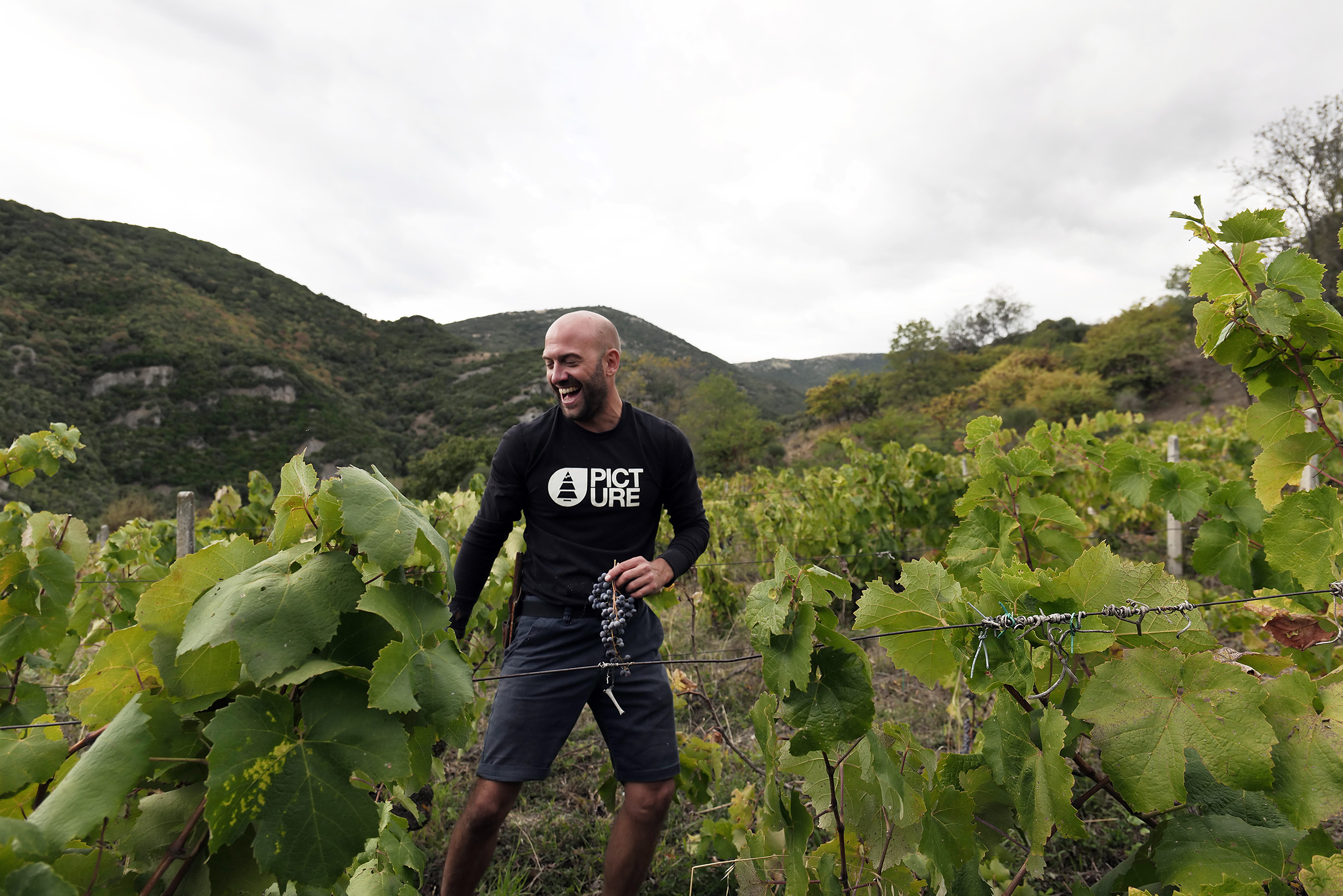 Η γνωριμία μου με τον Ιάσωνα Λίγα, το οινοποιείο του, τα κρασιά του, τους φίλους του και τη φιλοσοφία του, ήταν από την πρώτη στιγμή μια διαδικασία θετικής ενέργειας, φυσιολογικής αυτόματης συμπάθειας και περιπέτειας. Έχοντας φτάσει στην περιοχή της Κρανιάς Ολύμπου, στην αμπελουργική ζώνη της Ραψάνης, περίπου μιάμιση ώρα νωρίτερα από το ραντεβού μας, αναζήτησα το αμπελοτόπι όπου βρίσκονταν σε διαδικασία τρύγου, ο ίδιος ο Ιάσωνας και φίλοι του από την υπόλοιπη Ελλάδα καθώς και από τη νότια Γαλλία. Το σημείο Τσοκάτος, όπου βρίσκεται ο συγκεκριμένος μπαχτσές, εμφανίστηκε ξαφνικά, σε μια απότομη στροφή του βατού χωματόδρομου τον οποίο ακολούθησα για περίπου ενάμιση χιλιόμετρο. Η ομάδα εργάζεται ήσυχα, τρυγά με προσοχή τα τσαμπιά από τη μικτή καλλιέργεια των ποικιλιών Σταυρωτό, Ξινόμαυρο και Κρασάτο, ποικιλίες τις οποίες ο ίδιος ο Ιάσωνας προσπαθεί να διασώσει, όπως λέει. Σε υψόμετρα από 300 έως 630 μέτρα, σε εδάφη επικλινή, σε πέτρα σχίστη, σε αμπελοτόπια όπου η εργασία γίνεται χειρονακτικά, αφού δεν μπορούν να έρθουν μηχανήματα, σε 60 διάσπαρτα στρέμματα, καλλιεργούνται βιοδυναμικά οι συγκεκριμένες ποικιλίες. Ο τρόπος της πέρμα κουλτούρας, τον οποίο υποστηρίζει, δεν εννοεί βιολογική ούτε συμβατική καλλιέργεια. Ο Ιάσωνας έχει τα δικά του ψεκάσματα, από πρόπολη, φύκια, αιθέρια έλαια, πετρώματα (ζεόλιθους), αλλά δουλεύει πολύ και με τις φάσεις της σελήνης, από τα κλαδέματα, την οινοποίηση, ακόμη και τις μεταφορές του προϊόντος. Γνωρίζοντας, σιγά – σιγά και τα υπόλοιπα μέλη της ομάδας, μπαίνω στη διαδικασία, χωρίς δεύτερη σκέψη, να βοηθήσω στο κουβάλημα των καλαθιών με τον πολύτιμο καρπό, αφού έχει φτάσει το μικρό φορτηγό για να μεταφέρει τον τρύγο της ημέρας στο οινοποιείο. Στα 36 του χρόνια σήμερα, ο Ιάσωνας Λίγας κλείνει ήδη 5 χρόνια στο συγκεκριμένο οινοποιείο, το οποίο στεγάζεται στο παλιό σχολείο, κτίσματος του 1905 και αρχηγείου της Αντίστασης της περιοχής, στο κέντρο του αμφιθεατρικού πετρόκτιστου χωριού.