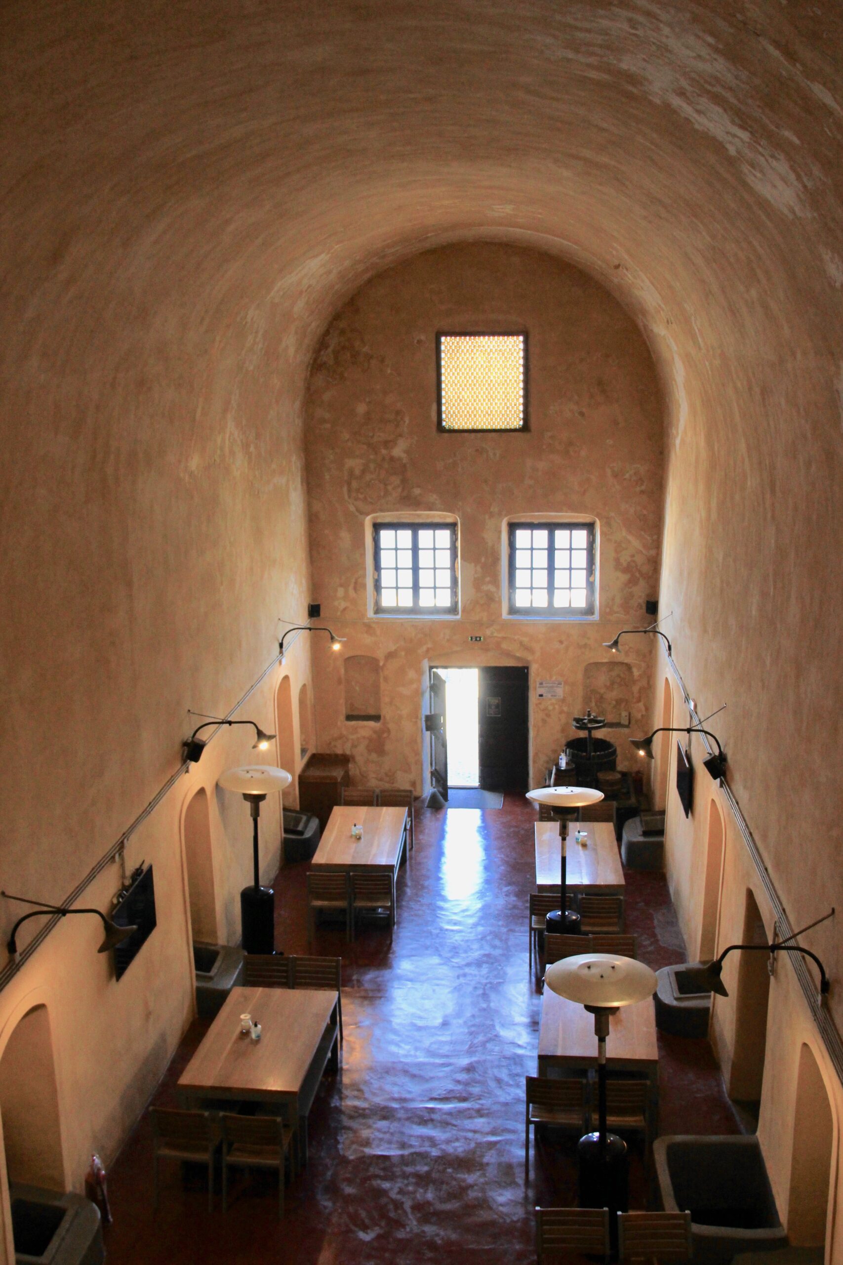 Η έλλειψη ηλεκτρισμού την εποχή εκείνη, ώθησε την οικογένεια Βενετσάνου να χρησιμοποιήσει το νόμο της βαρύτητας για την οινοποίηση και την μεταφορά του κρασιού στο λιμάνι, όπου το κρασί φορτώνονταν σε πλοία και ταξίδευε σε μέρη μακριά από το νησί. Κατασκευάστηκε, έτσι, σε τέσσερα επίπεδα (ορόφους), με δεξαμενές που επικοινωνούσαν μέσω ανοιγμάτων, επιτρέποντας έτσι στο κάθε επίπεδο να παίζει το δικό του, ξεχωριστό ρόλο στην διαδικασία οινοποίησης.