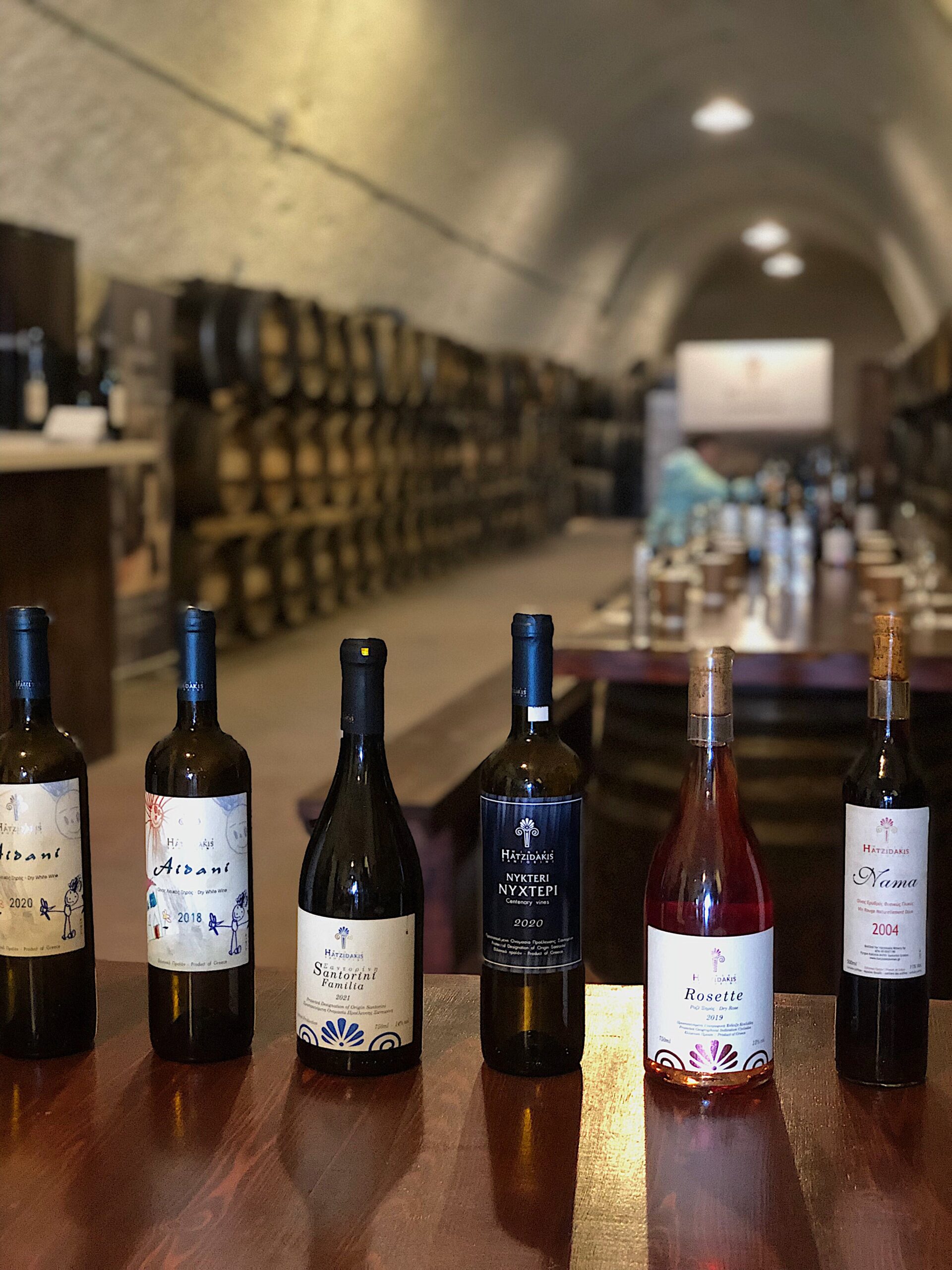 Τα υψηλής ποιότητας σταφύλια των Cuvée και του Vinsanto βοηθούν στο να επιτευχθεί η επιθυμητή απόδοση στις ξηρές οινοποιήσεις καθώς και στην παλαίωση. Η χρήση γαλλικού δρύινου βαρελιού για μεγάλο μέρος της διαδικασίας οινοποίησης του Cuvée Evdemon και του Cuvée Nychteri δίνει σε αυτά τα κρασιά ένα πολύ ωραίο όγκο στο στόμα αλλά και διακριτικό χαρακτήρα στο ποτήρι. Το εξαίσιο Vinsanto του κτήματος, τόσο το First Release όσο και το Late Release, παράγεται από 80% Ασύρτικο, 10% Αθήρι και 10% Αηδάνι. Η καθυστέρηση του τρύγου, το λιάσιμο των σταφυλιών κάτω από τον ήλιο και η πολύχρονη διαδικασία οινοποίησης, δίνουν στο Vinsanto απίθανο, καραμελέ χρώμα, γεμάτο σώμα, εξαίσια και πολύπλοκα αρώματα και μεστή, αλλά συνάμα ντελικάτη, γεύση.