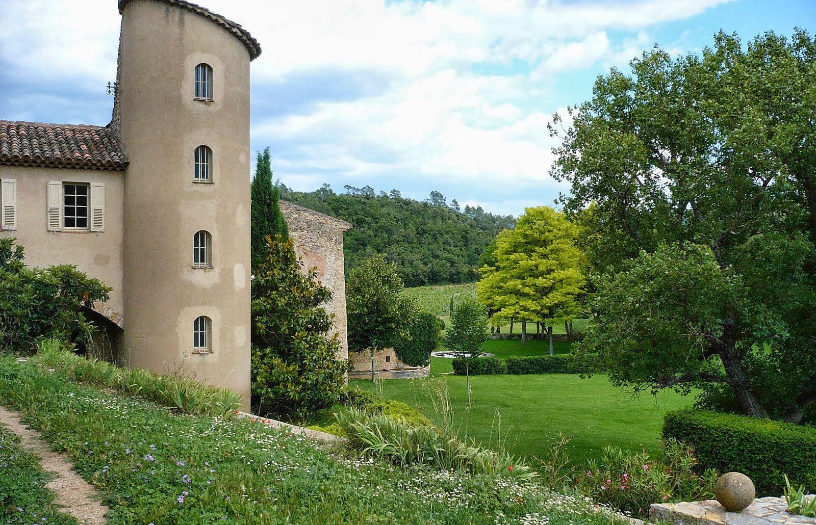 Ωστόσο, είναι εκείνη που έφερε, όπως μαθαίνουμε λόγω καταγωγής, για πρώτη φορά τον Μπραντ Πιτ στην περιοχή μαζί με τα παιδιά τους. Δεν είναι τυχαίο ότι παντρεύτηκαν στο όμορφο παρεκκλήσι που υπάρχει στο κάστρο, το οποίο μας δείχνει ο Τομά Περίν, διηγούμενος την ιστορία. Περνάμε από τις τεράστιες λίμνες με τους κύκνους και τις πάπιες, τις οποίες περιβάλλει πυκνή βλάστηση, και θαυμάζουμε κάθε λεπτομέρεια που μοιάζει βγαλμένη από πίνακα του Μονέ: μεσογειακά φυτά, δάση με πεύκα, αρχαία υδραγωγεία, σιντριβάνια διαμορφώνουν ένα μοναδικό ιμπρεσιονιστικό τοπίο, που ξεκινά από τα υλικά της φύσης για να φτάσει στον ουρανίσκο με αυτή τη λευκή, ανοιχτόχρωμη γεύση ενός κρασιού -σήμα κατατεθέν της περιοχής της Προβηγκίας. Ακόμα και οι πεζούλες, που έχουν διαμορφωθεί ειδικά για να προστατεύουν καλύτερα το κρασί, όπως και οι πετρόκτιστοι τάφροι που παραπέμπουν στις δικές μας ξηρολιθιές, είναι χτισμένοι στο χέρι -όπως στο χέρι, όπως πληροφορούμαστε, γίνεται και ο τρύγος, αφού τα πάντα εδώ είναι χειροποίητα.