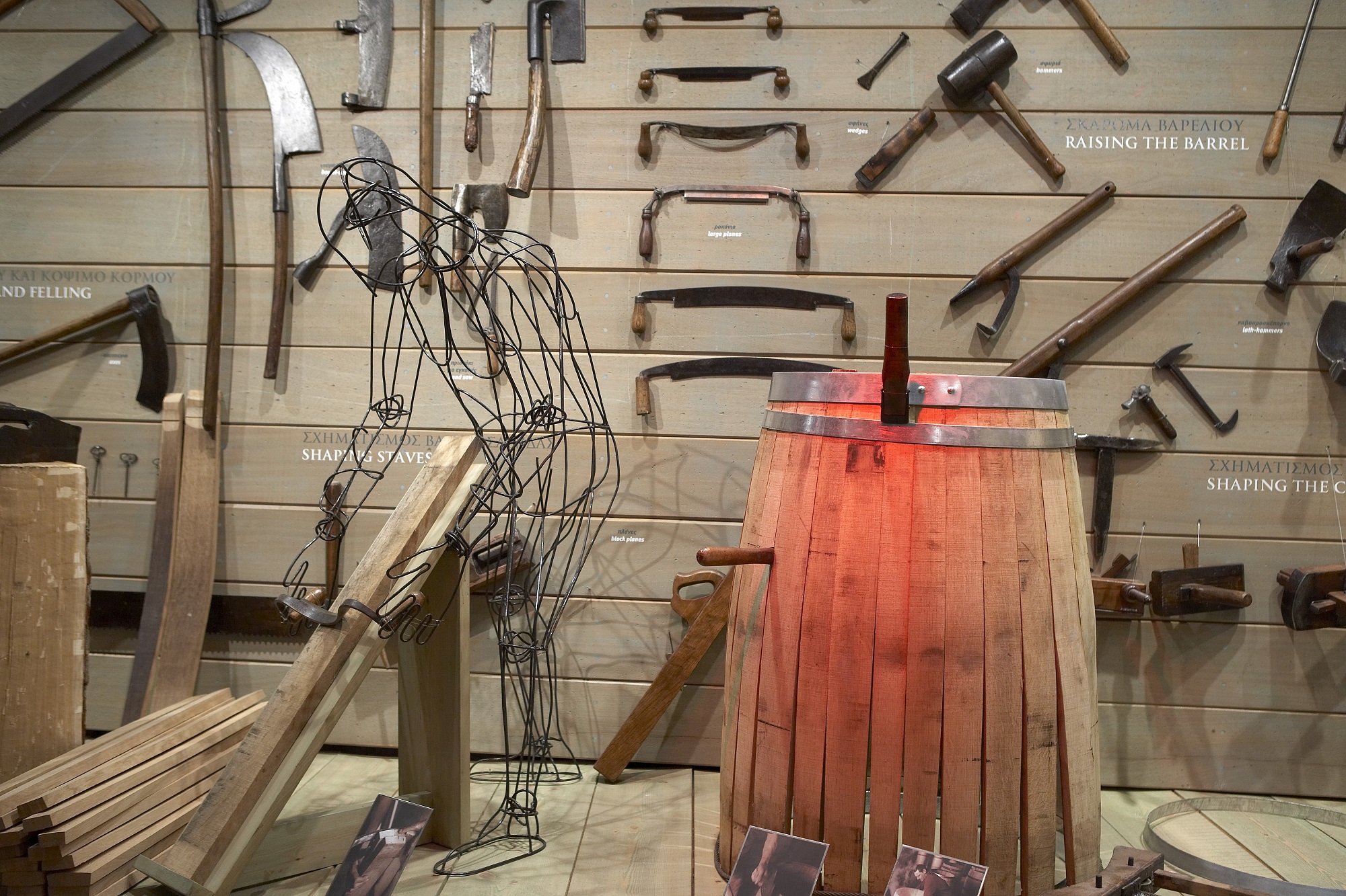 Από εκεί και πέρα υπάρχουν διάφορες ακόμα ενότητες καθώς διασχίζεις το μουσείο, όπως λ.χ. οι «Λέξεις», οι οποίες αναφέρονται στο αμπελο-οινικό γλωσσάρι, η «Μικρή Ιστορία του κρασιού», το «Αμπέλι», η «Οινοποίηση», το «Βαρέλι» ή η «Ωρίμανση». Σε αυτήν παρουσιάζονται όλα τα εργαλεία και τα σκεύη που χρησιμοποιούνται για την καλλιέργεια στο αμπέλι και τη μετέπειτα παραγωγή του κρασιού από τους καρπούς του.