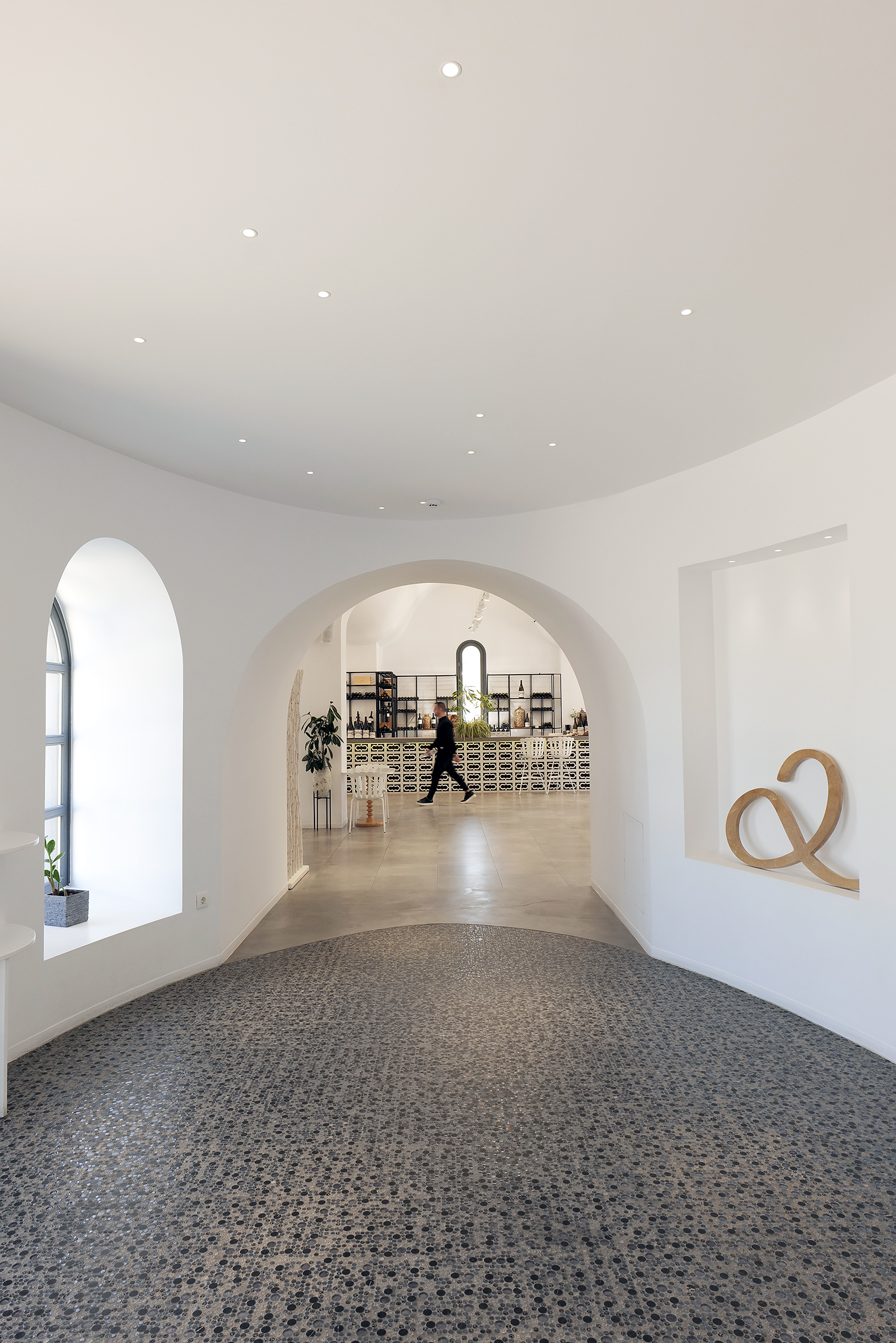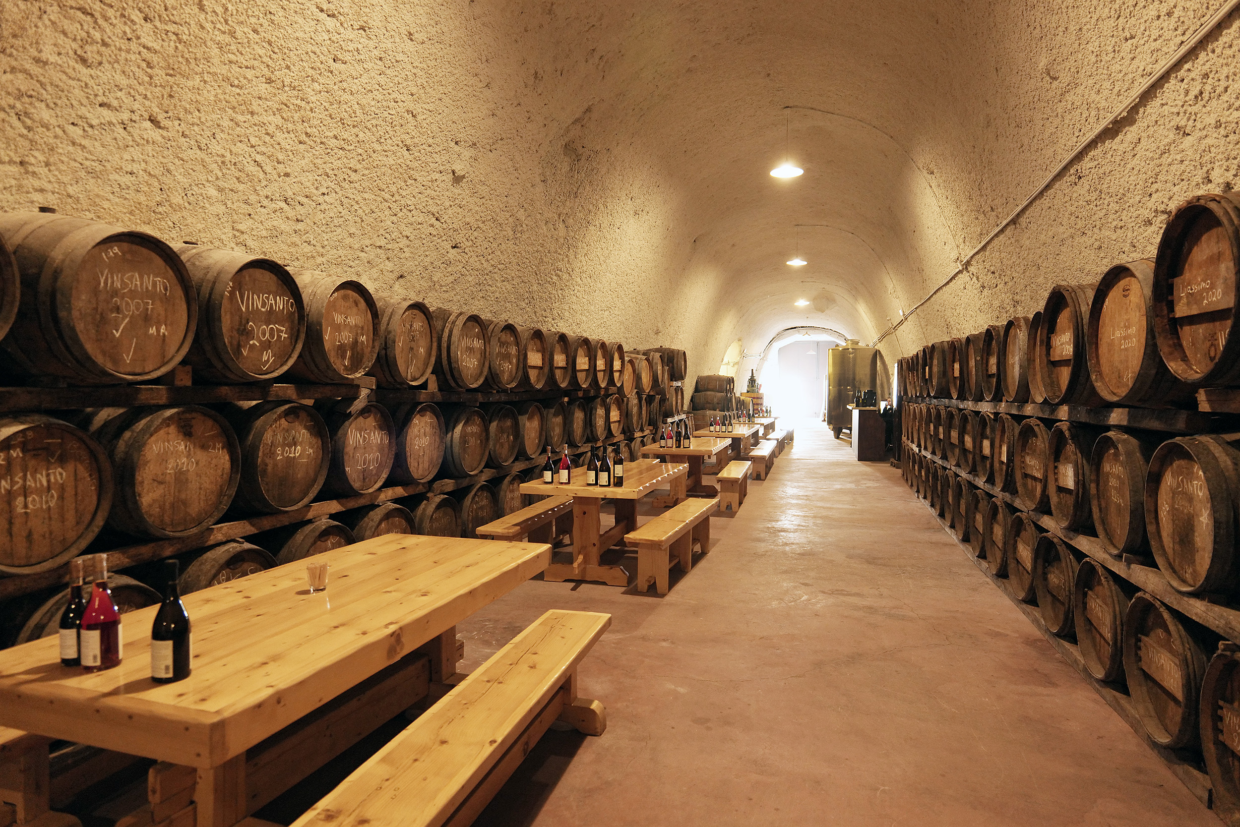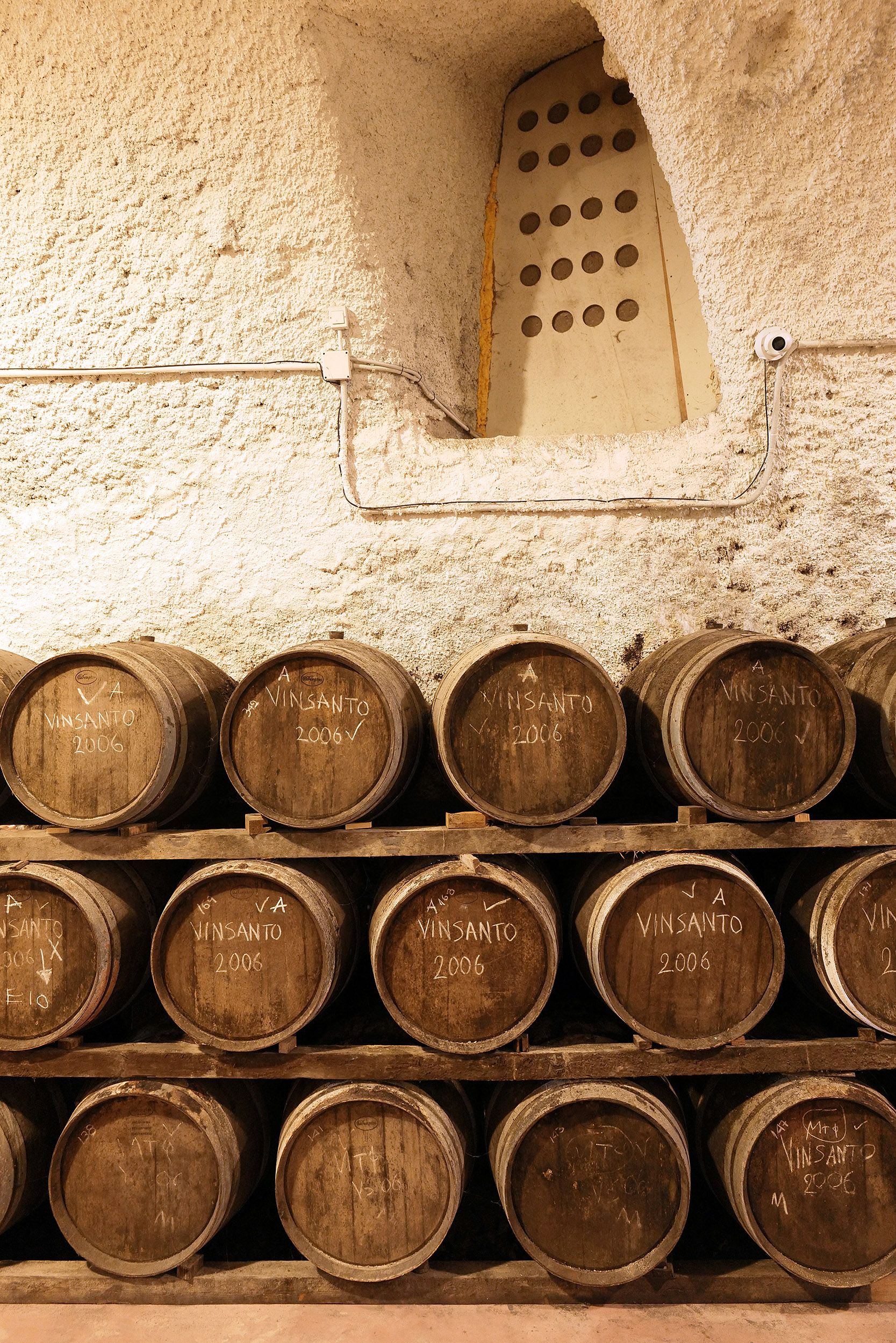 Είναι σίγουρα ένα από τα ομορφότερα οινοποιεία. Το σημείο που έχει χτιστεί, το 1947, στην καλντέρα στην ευρύτερη περιοχή του Μεγαλοχωρίου, προκαλεί δέος. Άμεσα. Η ξενάγηση από τον εξαιρετικό Πέτρο Βαμβακούση, μάνατζερ του οινοποιείου και απίστευτο γνώστη της οινικής πραγματικότητας της Σαντορίνης, ξεκινά και εξελίσσεται όπως χτίστηκε. Από πάνω προς τα κάτω. Το πρώτο βιομηχανικού τύπου οινοποιείο του νησιού, φανερώνει αμέσως κατά την είσοδο στον πρώτο όροφο, τον ψηλότερο δηλαδή, στοιχεία του παραδοσιακού τρόπου χτισίματος στο νησί, τα «σταυροθολάρια», ορατό ξεκάθαρα στην οροφή. Είναι ο ίδιος τρόπος χτισίματος με την τεχνική που χρησιμοποιείται στα πέτρινα γεφύρια. Ο μάστορας Τζώρτζης Σαλίβερος ή «Μπατζάνης» είναι ο υπεύθυνος για την αισθητική ομορφιά και λειτουργικότητα του οινοποιείου καθώς και κάποιων ακόμη αρχιτεκτονικών κοσμημάτων στο νησί.
