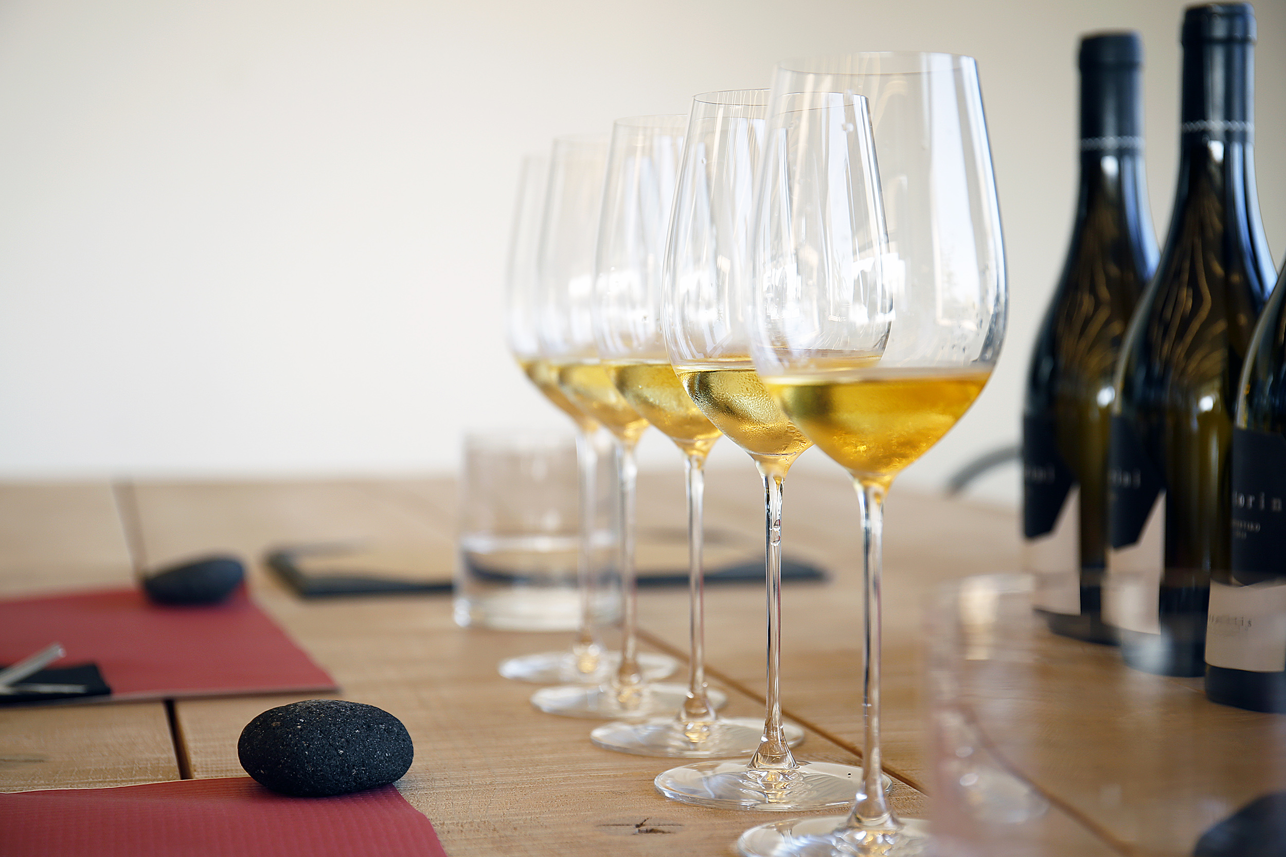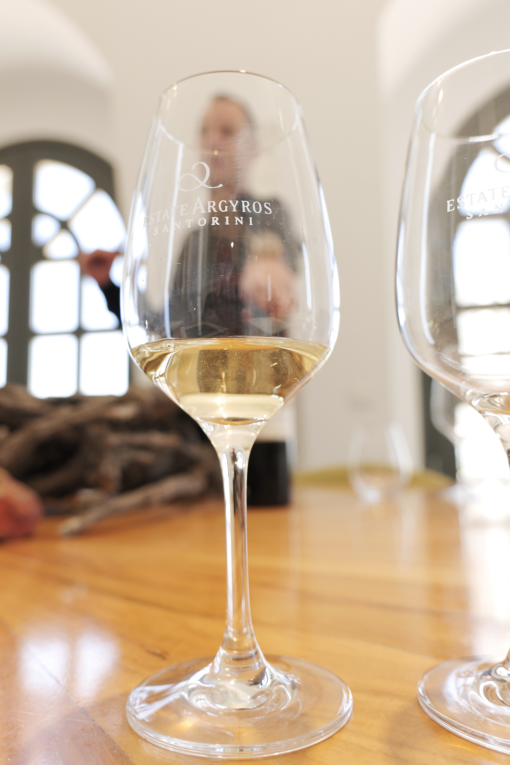 Βγαίνοντας στο σκληρό και τόσο χαρακτηριστικό κυκλαδίτικο φως από το στενό απόκοσμο σχεδόν τούνελ για να ζήσουμε τη μαγεία της γευστικής δοκιμής, μέχρι να συνηθίσουν τα μάτια, η συζήτηση περιστρέφεται γύρω από το κρασί στο νησί, γενικότερα. Η άψογη παρουσίαση των κρασιών του οινοποιείου, συνοδεύεται από σκέψεις και προβληματισμούς αναφορικά στο παρόν και το μέλλον της αμπελουργίας και της οινοποίησης στη Σαντορίνη. Η έλλειψη νερού λόγω της κλιματικής αλλαγής, η μείωση της «ανεδοσιάς», του φαινομένου της φυσικής υγρασίας χάριν του ηφαιστείου, η αντίληψη από κάποιους ότι η γη είναι περισσότερο οικόπεδο και λιγότερο χωράφι, καθώς και η έλλειψη νέων ανθρώπων στην ενασχόληση με την αμπελουργία, οδηγούν σε μια κατάσταση η οποία χρήζει παραγωγή ιδεών και άμεσων λύσεων.