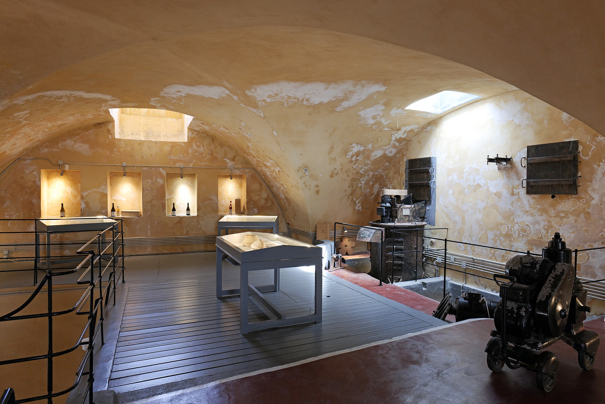 Το μουσειακό κομμάτι προβάλλει με γούστο την ιστορία της οικογένειας Βενετσάνου, τα χρόνια στην Αίγυπτο, τις πρώτες ετικέτες, τις χρωματικές επιλογές των χώρων. Το κτίσμα στο εσωτερικό του είναι δροσερό, φωτίζεται από τον ήλιο καθώς το δυνατό του φως εισχωρεί επιλεκτικά και με γούστο από καλά σχεδιασμένες εισόδους. Ενωμένο με τη μορφολογία της καλντέρας, το οινοποιείο είναι ένας ευχάριστος αλλά εντελώς λειτουργικός λαβύρινθος. Οι 100 τόνων δεξαμενές, σκαμμένες μέσα στην ηφαιστειακή τέφρα με μια ειδική επίστρωση για να μην απορροφάται το κρασί από το χώμα, φτιάχτηκαν σε σχήμα αβγού, πρωτοποριακή ιδέα για εκείνη την εποχή αφού οι σύγχρονες τσιμεντένιες δεξαμενές έχουν ακριβώς αυτό το σχήμα. Οι δεξαμενές δεν είχαν ανθρωποθυρίδα, οπότε οι εργάτες έμπαιναν, εργάζονταν και ξαναέβγαιναν από επάνω, προσδίδοντας μια πιο ανθρώπινη αίσθηση.