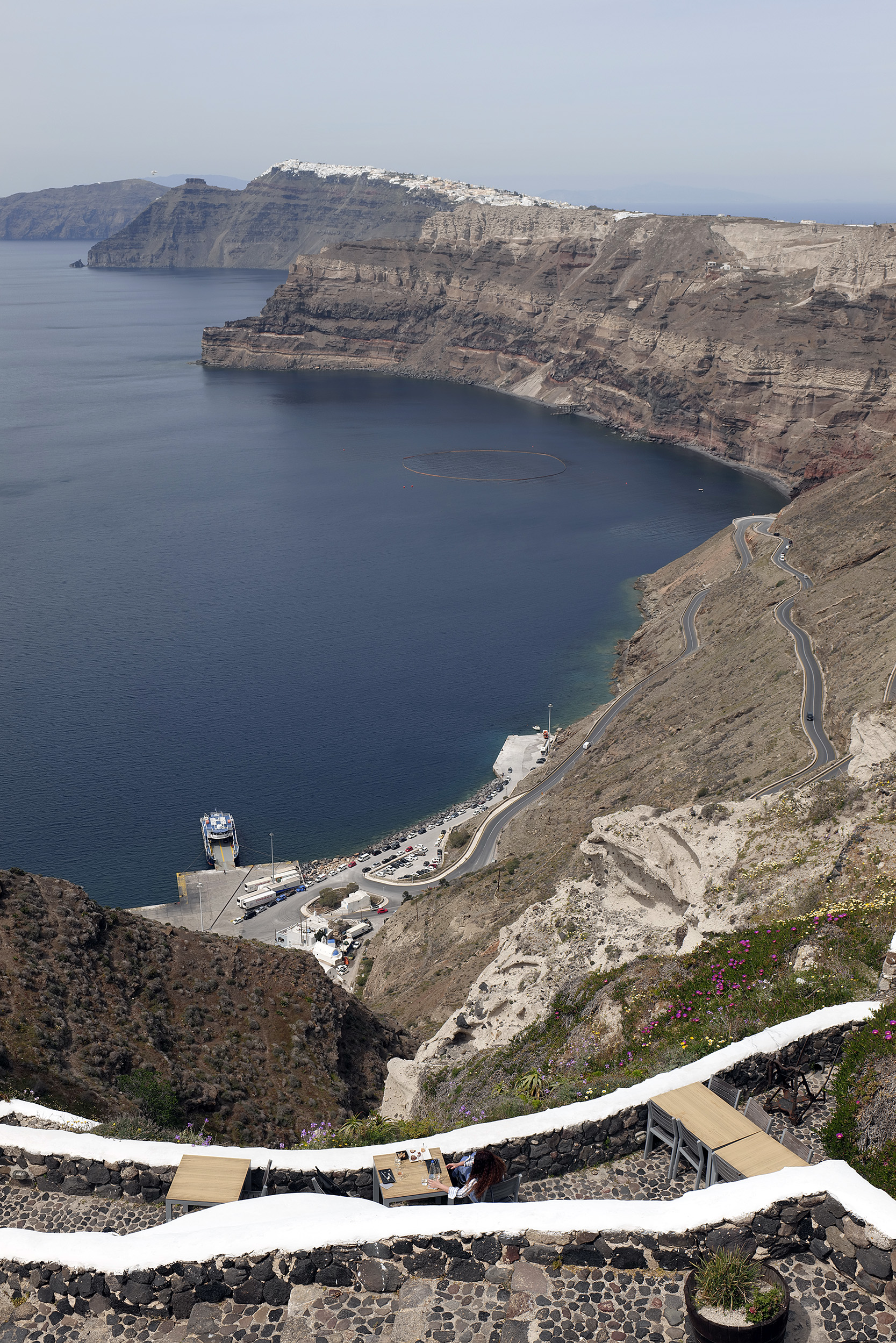 Μυθικός προορισμός. Τόπος άγριος, εκρηκτικός, δονούμενος συχνά από γεωλογικές αλλά και ανθρώπινες δραστηριότητες. Ένα μπέρδεμα οικιστικής ανάπτυξης, παραδοσιακής αρχιτεκτονικής, μεγάλων εκτάσεων αμπελιών σε φόντο γκρίζο, ανάμεσα σε δρόμους, χωριά που μοιάζουν να ενώνονται, σιγά σιγά, μαύρα βανάκια με τζάμια φιμέ, αεροπλάνα που έρχονται και φεύγουν ασταμάτητα και όλα αυτά σε έναν χωμάτινο συνδυασμό γκρεμού, ηφαιστείου, μαύρων και μπλε θαλασσών, Θήρας, Θηρασιάς, Παλαιάς και Νέας Καμένης. Ένα από τα διασημότερα προϊόντα του κόσμου παράγεται εδώ, το θρυλικό σαντορινιό κρασί.