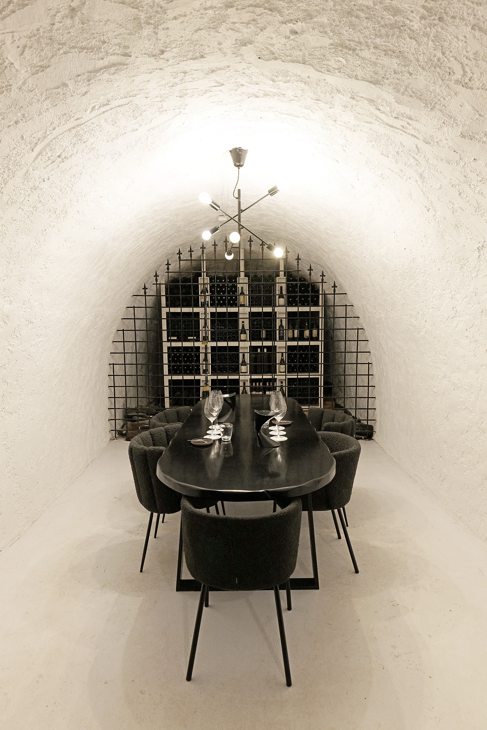 Καθώς συνεχίζεται η ξενάγηση από την εξειδικευμένη τεχνολόγο τροφίμων Μαρία Γαλαίου, νιώθω να βρίσκομαι σε μια ευλαβική, σχεδόν θρησκευτική συνθήκη αντιμετώπισης της παραγωγής του οίνου. Κάτι στην ατμόσφαιρα, από τον ήπιο τόνο της φωνής της Μαρίας, σε συνδυασμό με το πάθος των λόγων της αναφορικά στην επιχείρηση που εργάζεται, το δυνατό φως που εισβάλλει στο «τούνελ» με τα βαρέλια και τα μοναστηριακά τραπέζια για τους επισκέπτες, λίγο η συγκεκριμένη θέση του ιδιαίτερου τραπεζιού της παρουσίασης, νιώθω σαν να υπάρχει παντού ένας αόρατος παρατηρητής της εύρυθμης λειτουργίας. Αλλά και της διατήρησης του οράματος των ιδρυτών.