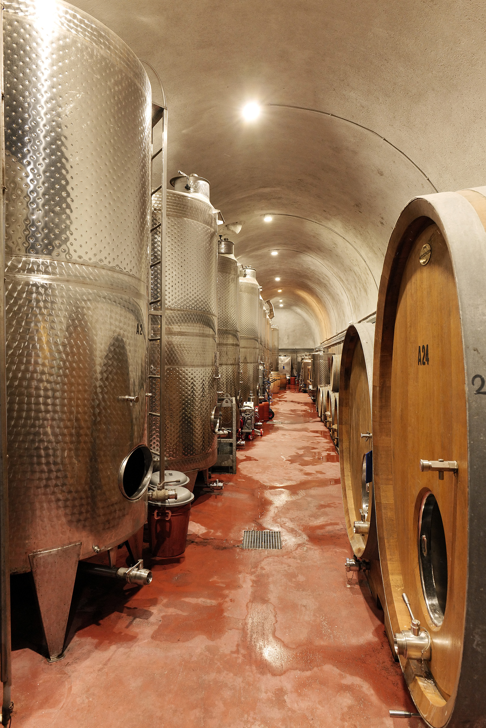 Η Κατερίνα προχωρά την ξενάγηση από όλους τους χώρους της βιομηχανικής παραγωγής με δυνατότητες εμφιάλωσης έως και ενός εκατομμυρίου φιαλών, ένα νούμερο, βέβαια, απρόσιτο στη σημερινή εποχή. Το οινοποιείο είναι βαρυτικό, όμοιο με τη λογική του Βενετσάνου, με τις διαδικασίες να ξεκινούν στην ταράτσα, στο επίπεδο του δρόμου και να καταλήγει το ταξίδι του πολύτιμου υγρού χαμηλά, στο στρατηγικό σημείο εγγύτητας στο λιμάνι από κάτω.