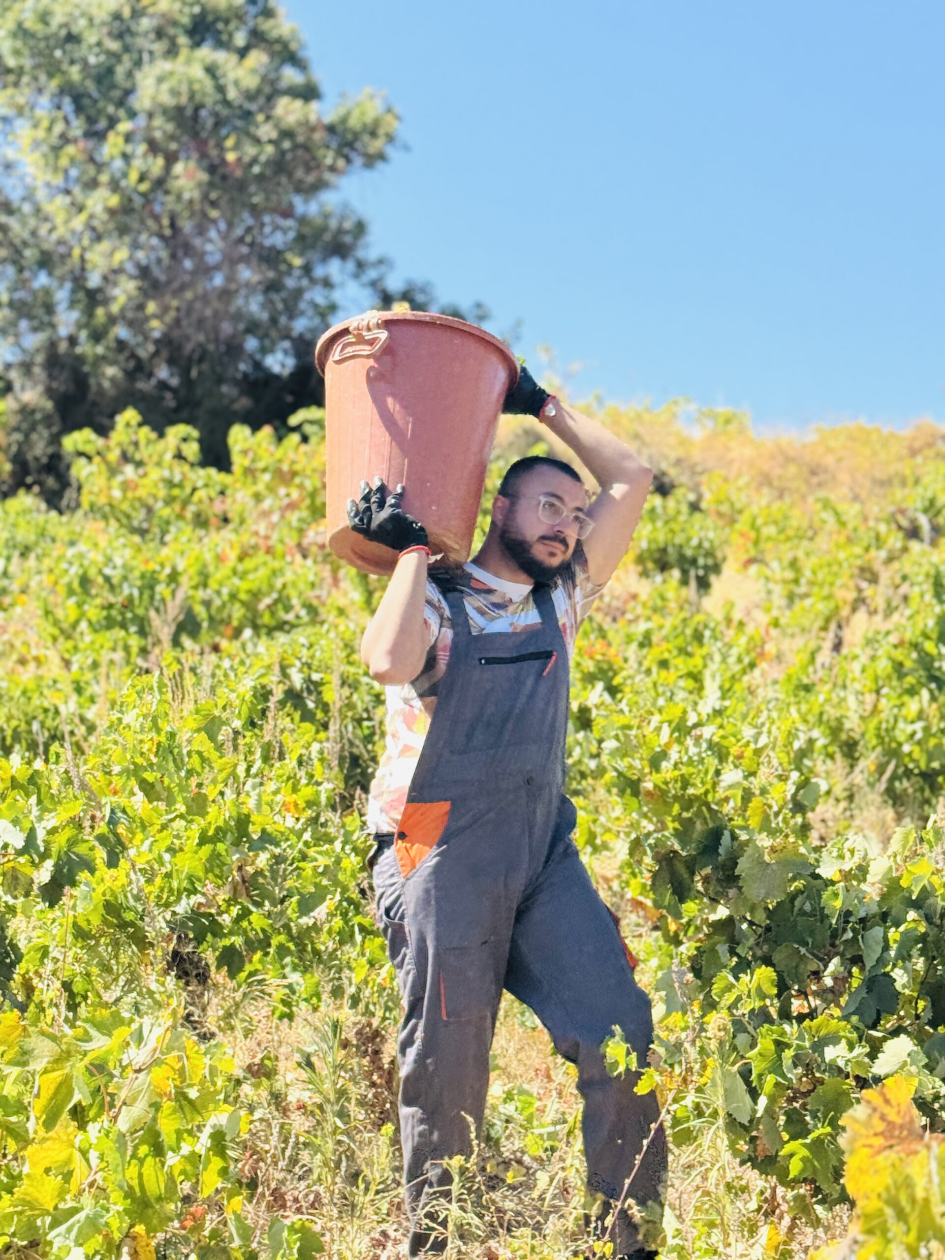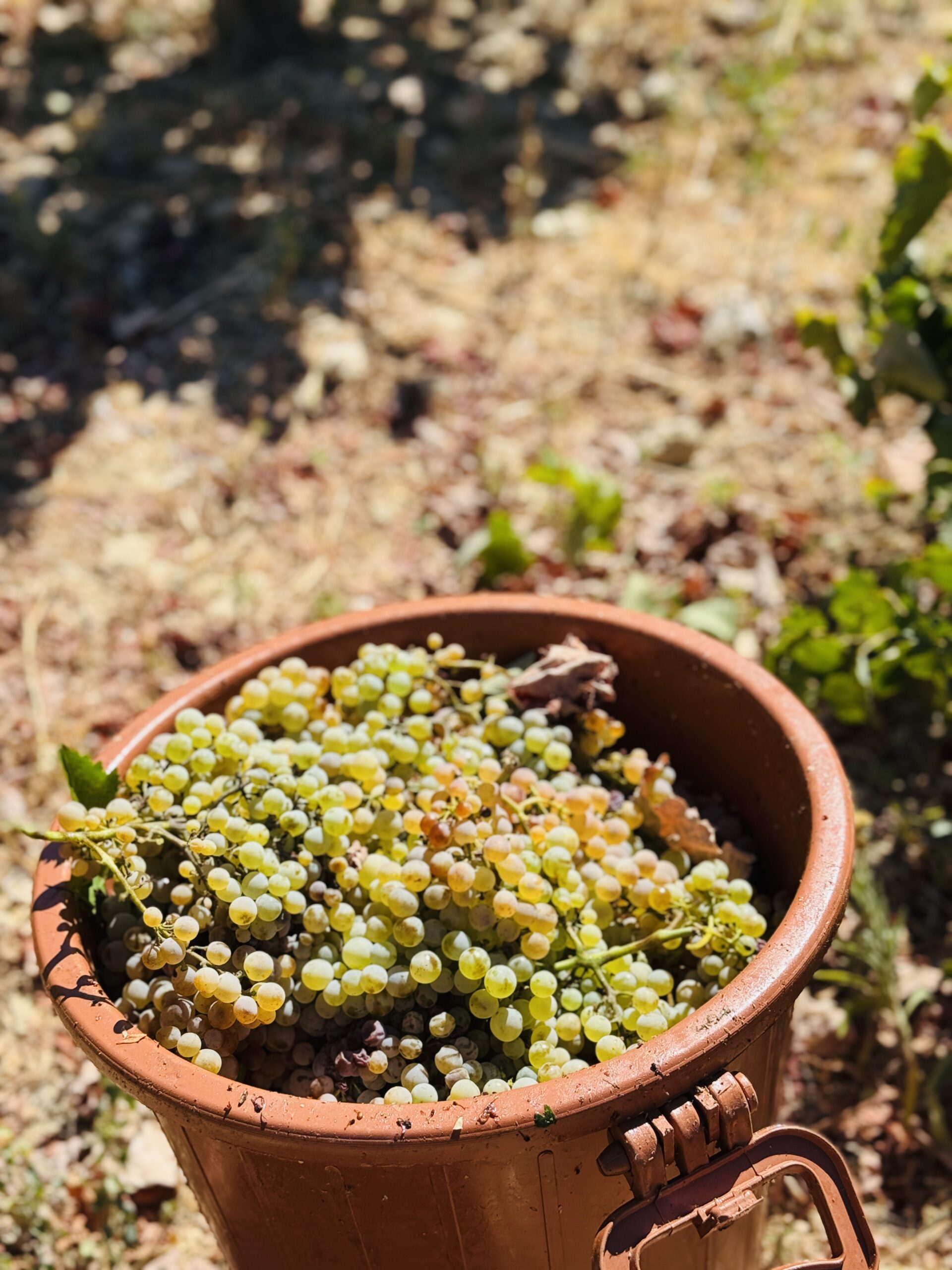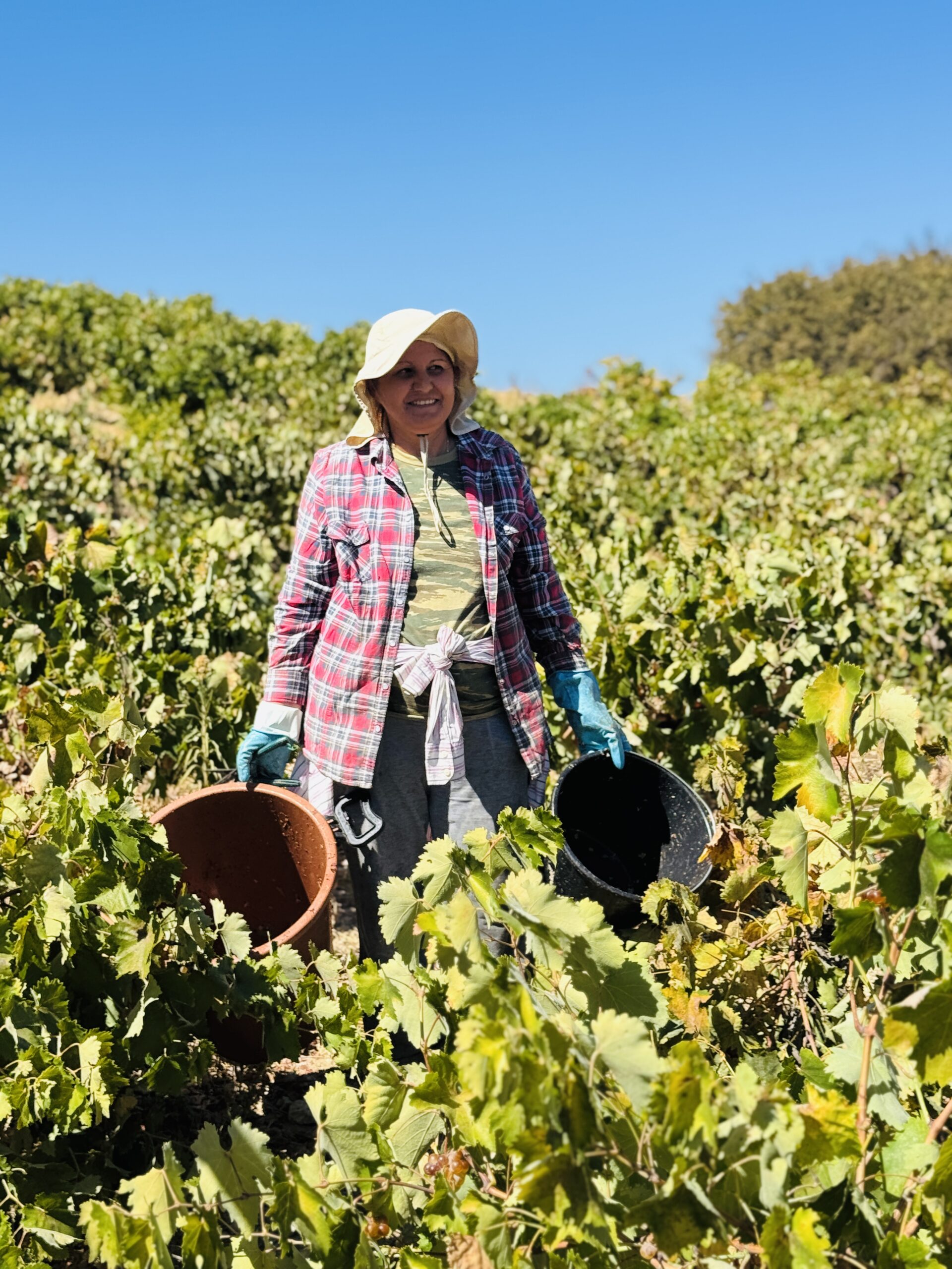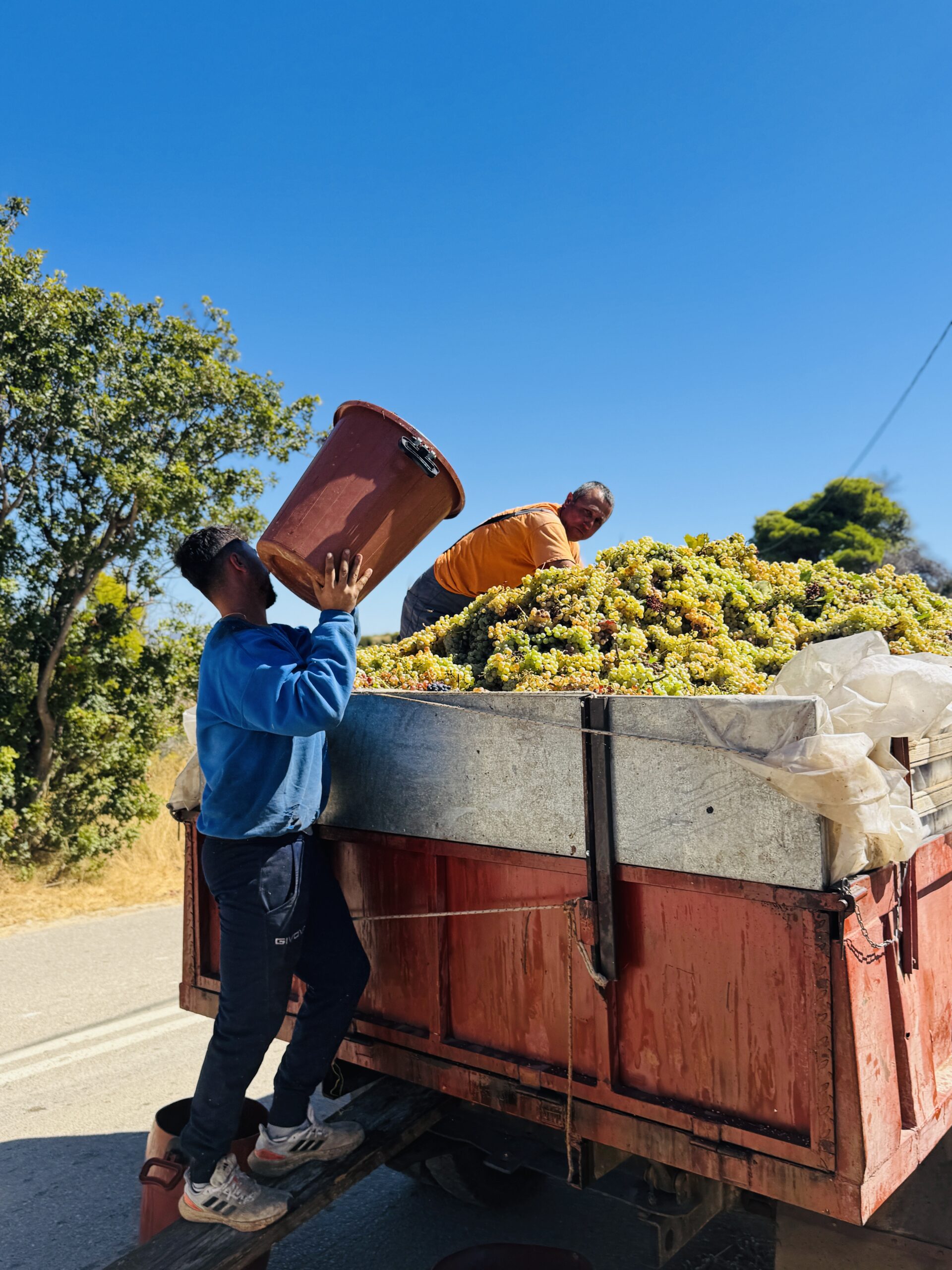 Μια κυρία με μαντίλα στο κεφάλι, για να προστατεύεται από τον ήλιο, μου προσφέρει ένα τσαμπί φρεσκοκομμένο σταφύλι. «Δοκιμάστε», λέει με ζεστό χαμόγελο. «Αυτό είναι το φετινό μας χρυσάφι». Η γεύση είναι απίστευτη, συμπυκνωμένη, γεμάτη ήλιο και ιστορία.