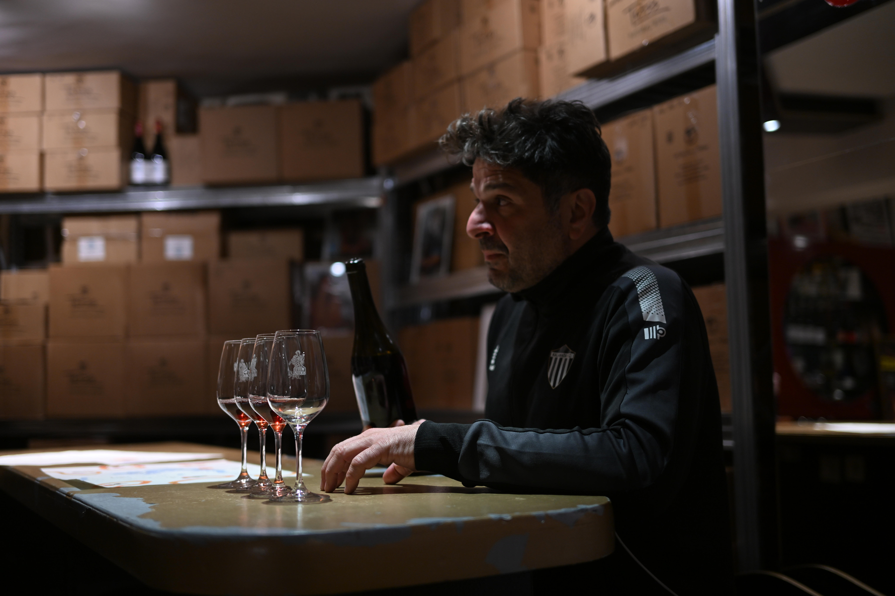 «Εδώ κάνουμε τις γευσιγνωσίες και τις παρουσιάσεις των οινοποιών», εξηγεί ο Πέρι, δείχνοντας το κεντρικό τραπέζι. «Αυτό που με ενδιαφέρει είναι να δημιουργήσω μια εμπειρία γύρω από το κρασί, όχι απλά να πουλήσω φιάλες. Θέλω οι άνθρωποι να καταλάβουν την ιστορία πίσω από κάθε μπουκάλι, τον μόχθο του αμπελουργού, τις ιδιαιτερότητες της κάθε χρονιάς».