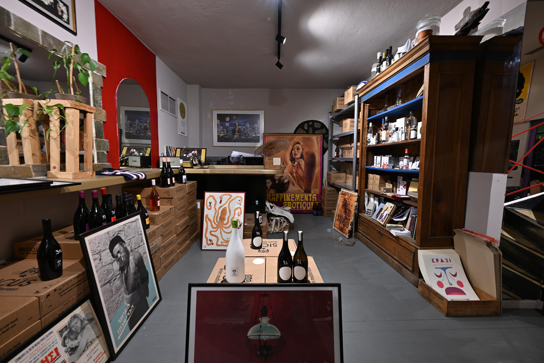«Ο καταναλωτής σήμερα είναι πιο ενημερωμένος, πιο απαιτητικός», παρατηρεί. «Αναζητά την αυθεντικότητα, και αυτό είναι κάτι που προσπαθούμε πάντα να προσφέρουμε -κρασιά με ταυτότητα, με προσωπικότητα, που αφηγούνται την ιστορία του τόπου τους». Γύρω μας, κούτες κρασιών και επιλεγμένες φιάλες συνυπάρχουν αρμονικά με τα διακοσμητικά στοιχεία. Δεν υπάρχει τίποτα περιττό ή επιτηδευμένο -κάθε στοιχείο του χώρου εξυπηρετεί έναν σκοπό, είτε λειτουργικό είτε αισθητικό. Είναι ένας χώρος που αντανακλά την προσωπικότητα του δημιουργού του: ουσιαστικός, χωρίς επιτήδευση, με βάθος και χαρακτήρα.