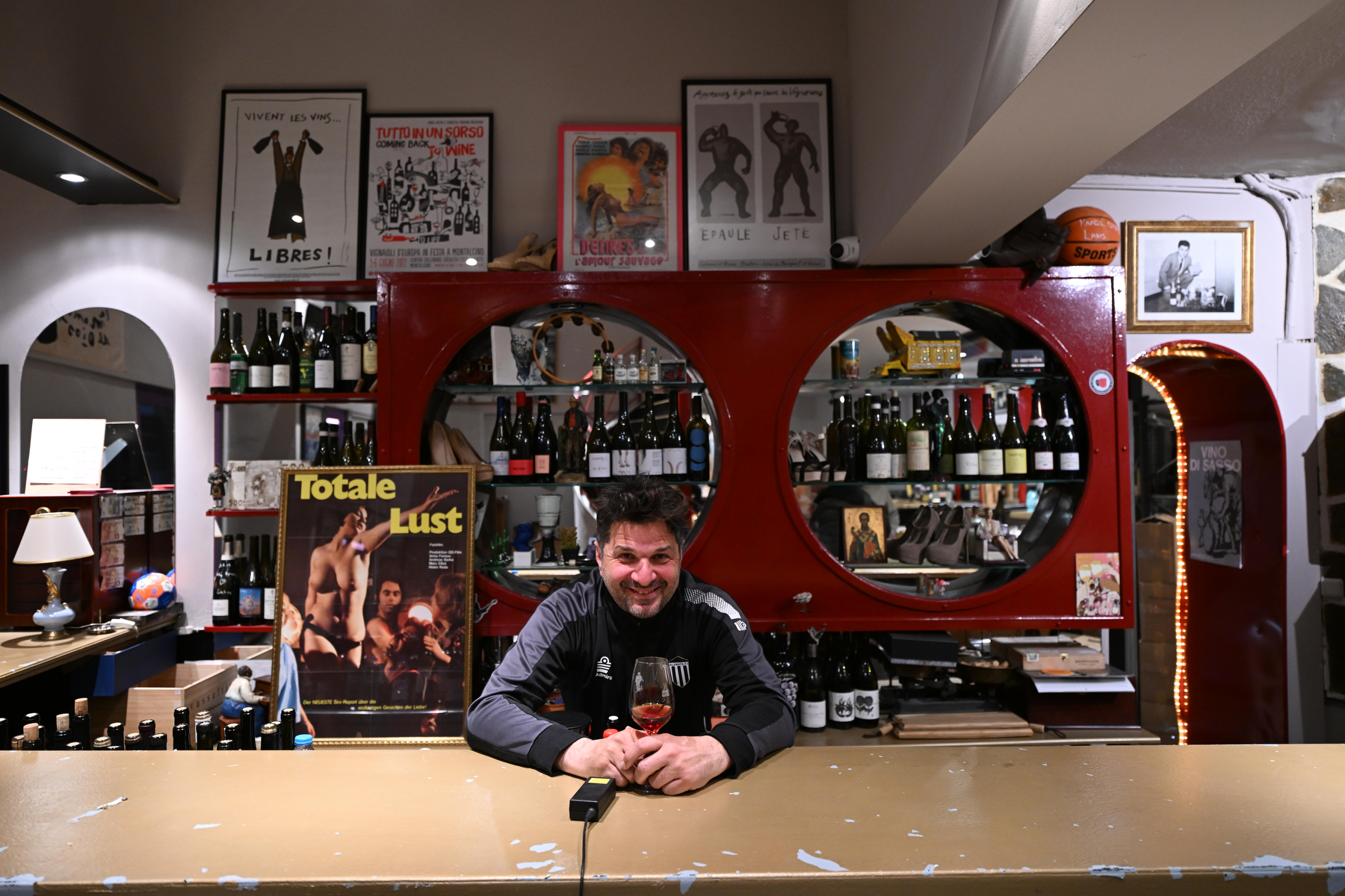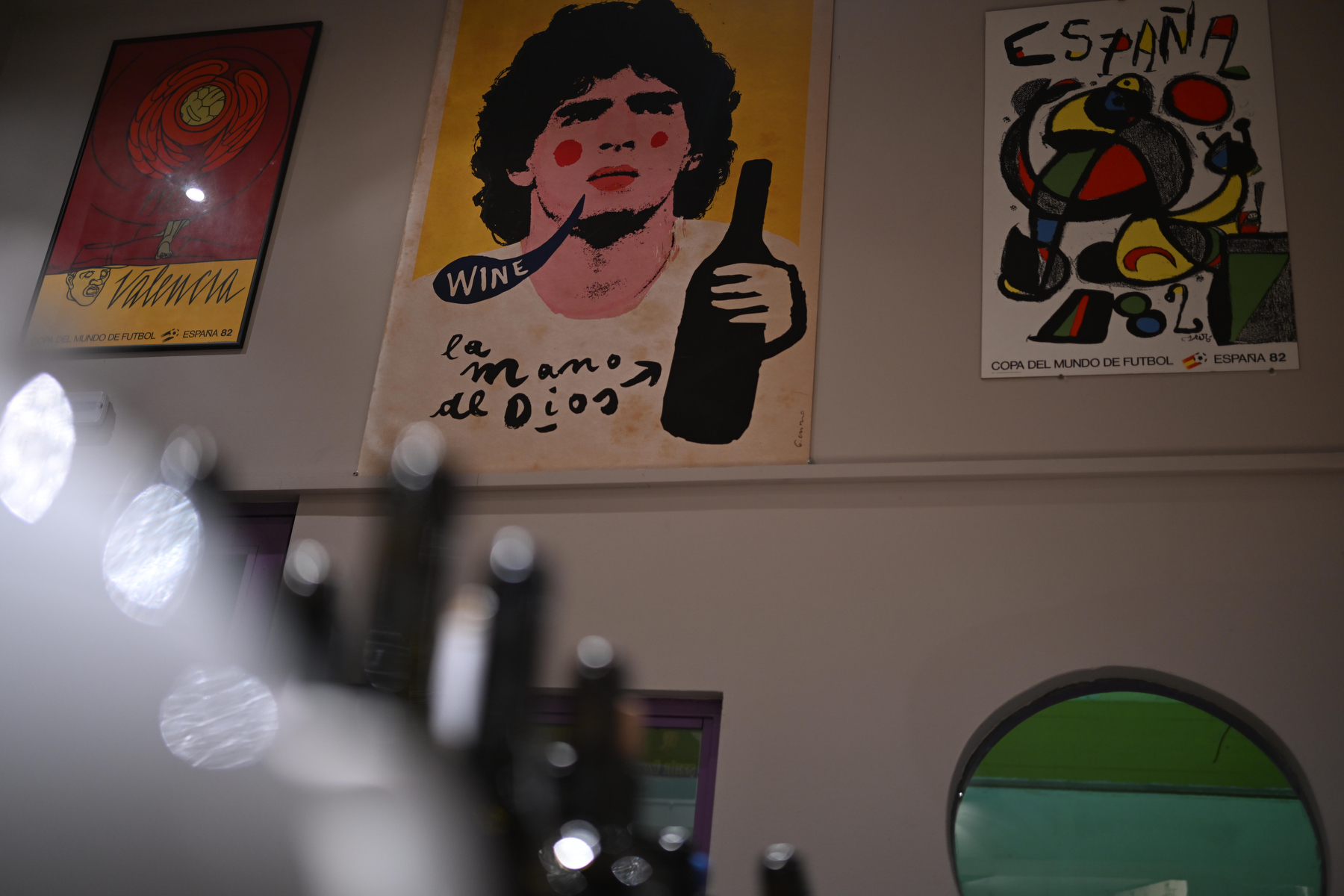 Το βλέμμα αιχμαλωτίζει μια τεράστια αφίσα του Μαραντόνα σε κεντρικό σημείο του τοίχου. «Ήρωας», σχολιάζει ο Πέρι με ένα μειδίαμα όταν με βλέπει να την παρατηρώ. Γύρω της, άλλες αφίσες συνδέουν τον χώρο με διαφορετικές εποχές -παλαιά φεστιβάλ κρασιού, συναυλίες, καλλιτεχνικές εκδηλώσεις- κάθε μία με τη δική της ιστορία, δημιουργώντας μια αίσθηση συνέχειας, μια γέφυρα ανάμεσα στο παρελθόν και το παρόν.
